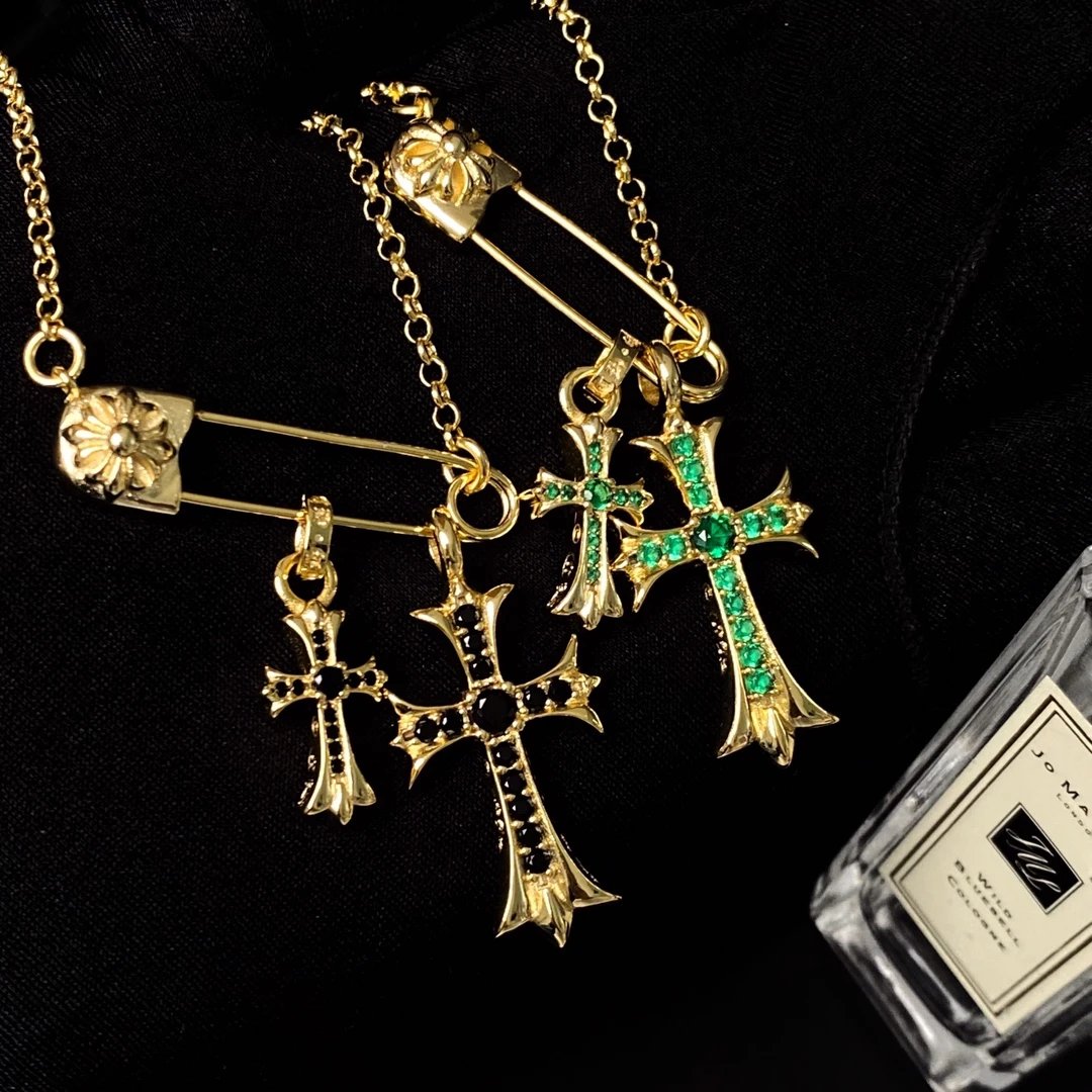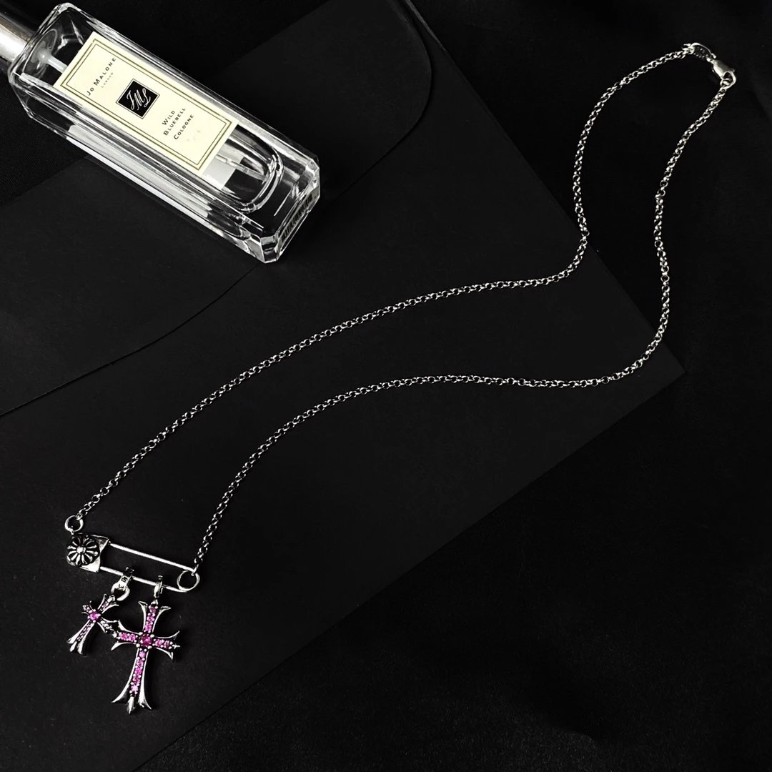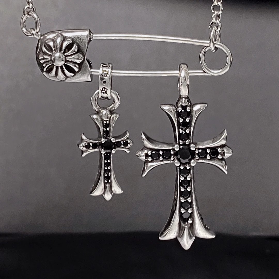 Chrome Hearts New Pin Full Diamond Cross Necklace is a stylish accessory.