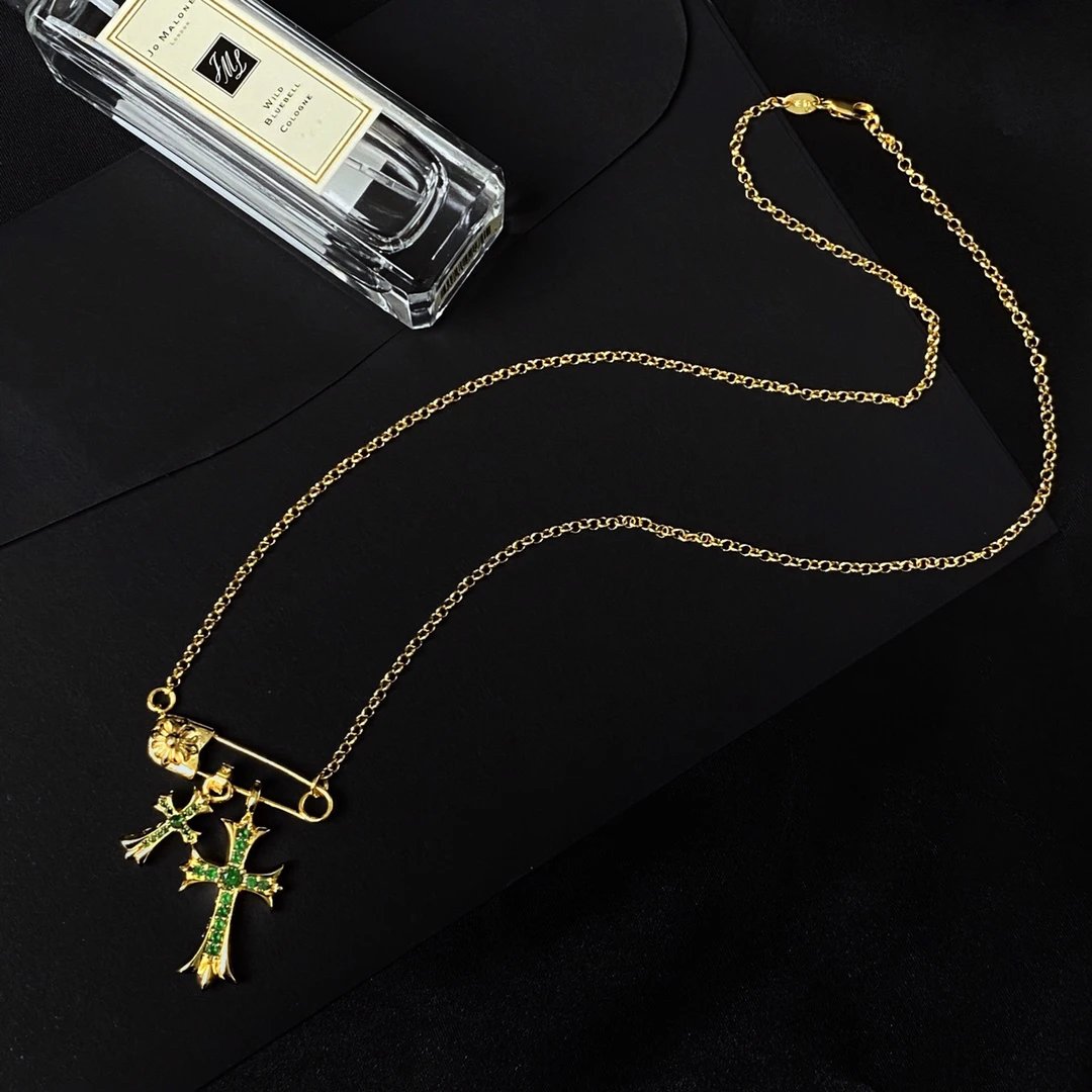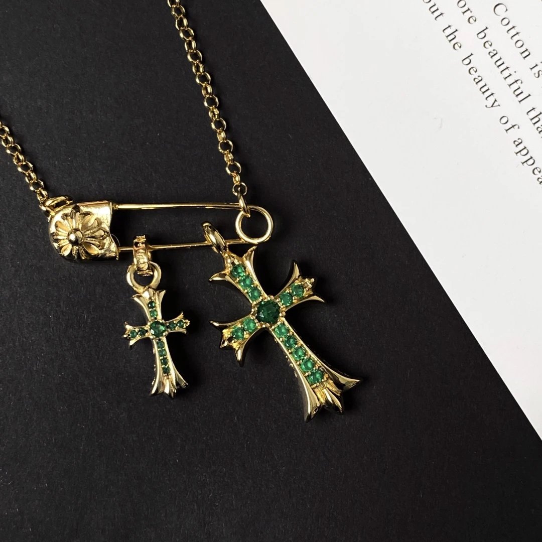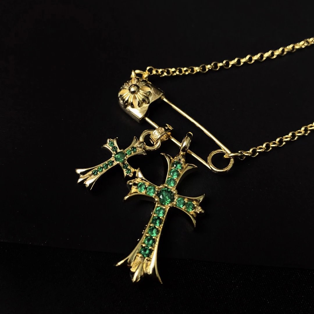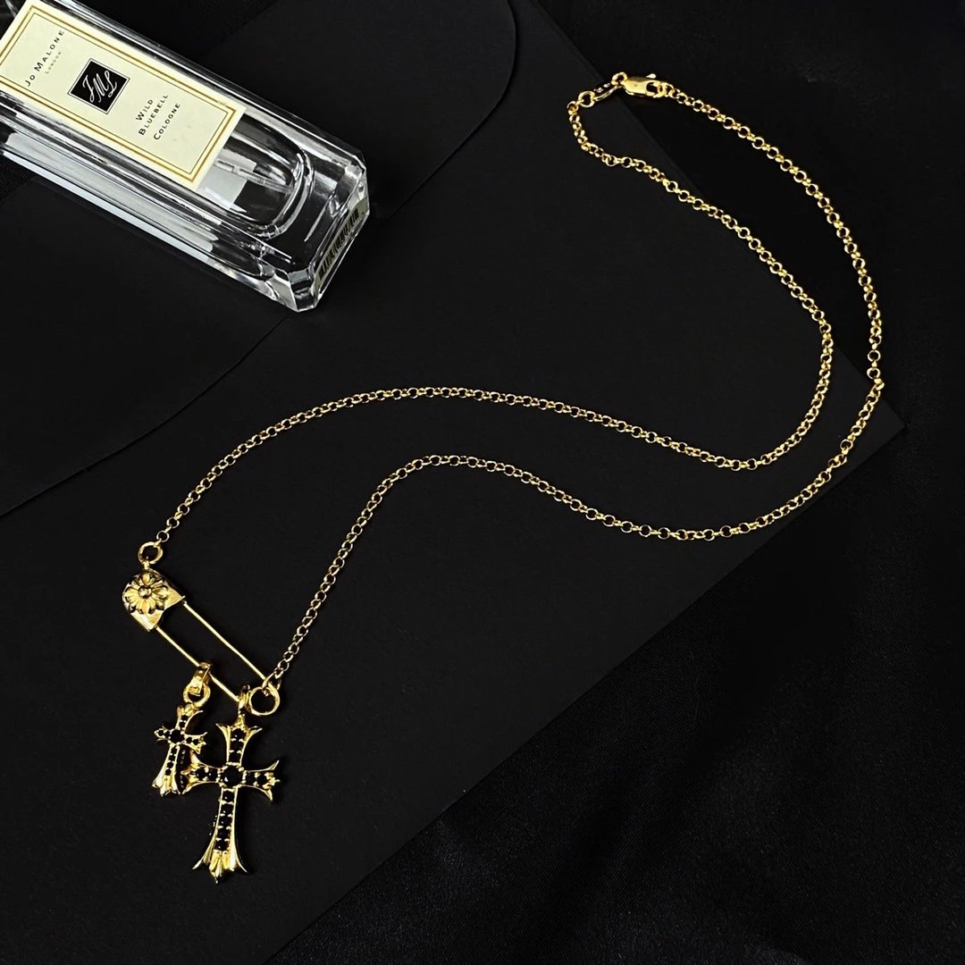 Chrome Hearts New Pin Full Diamond Cross Necklace is a stylish accessory.