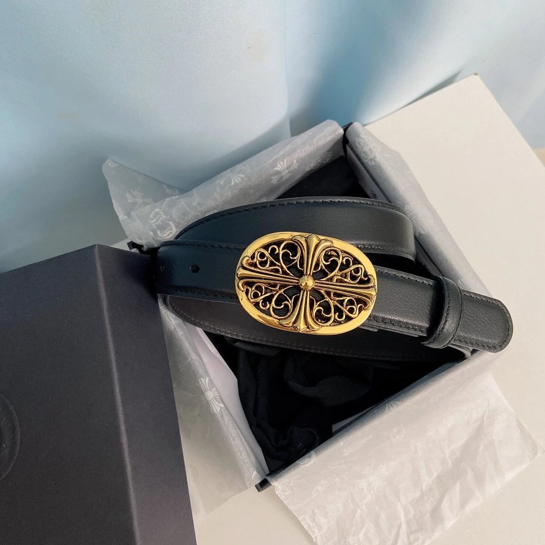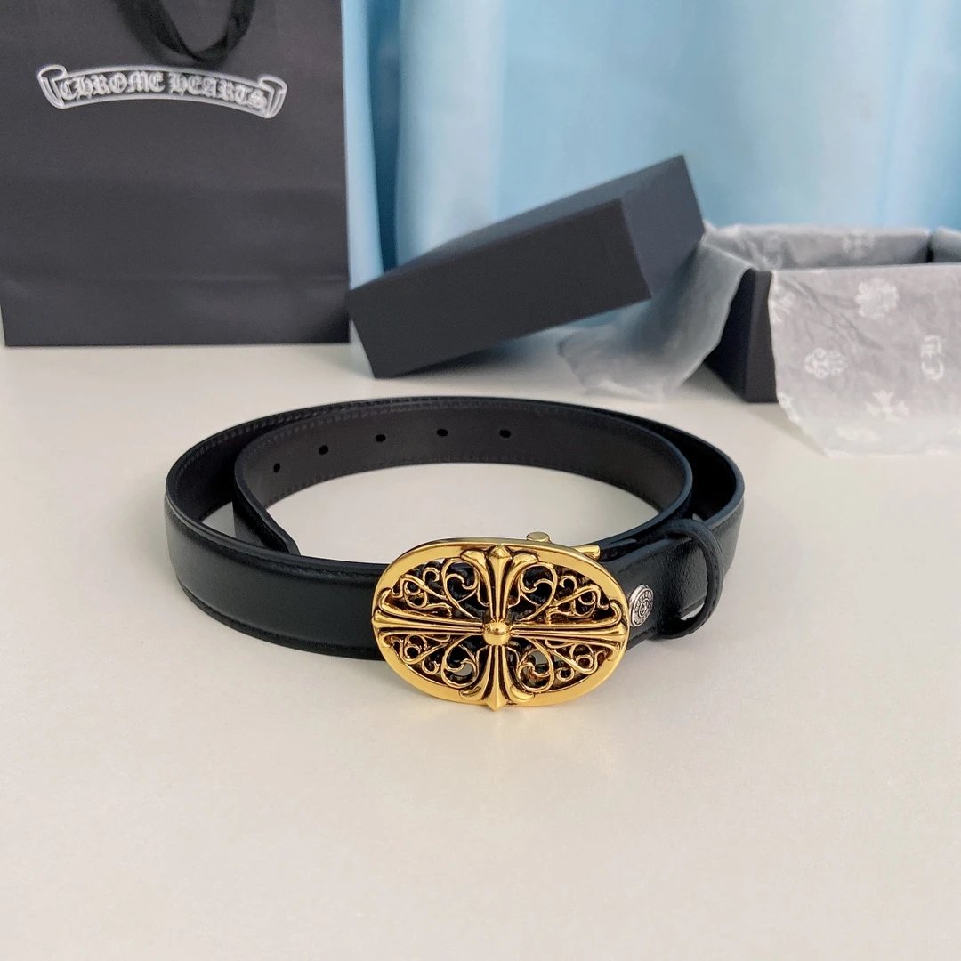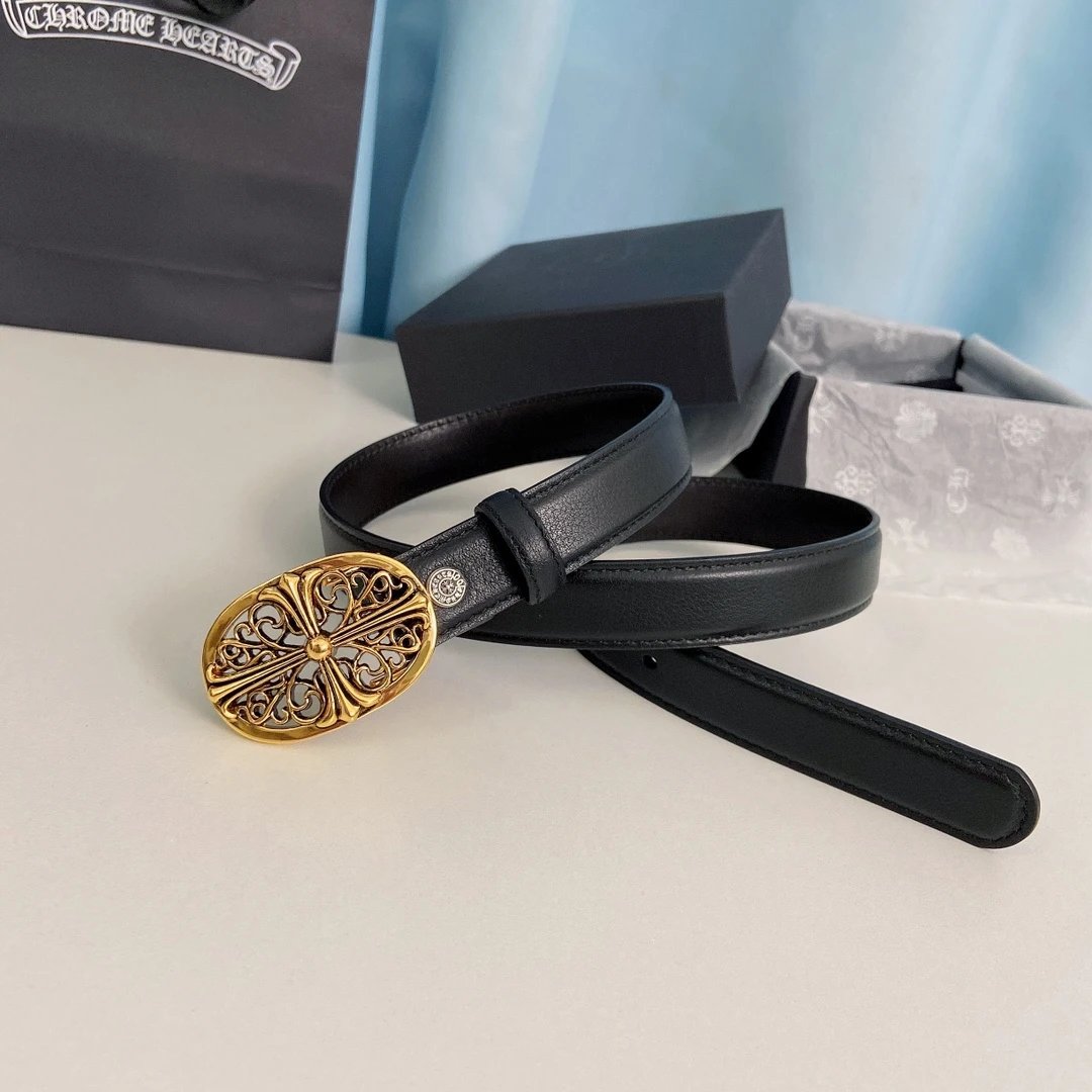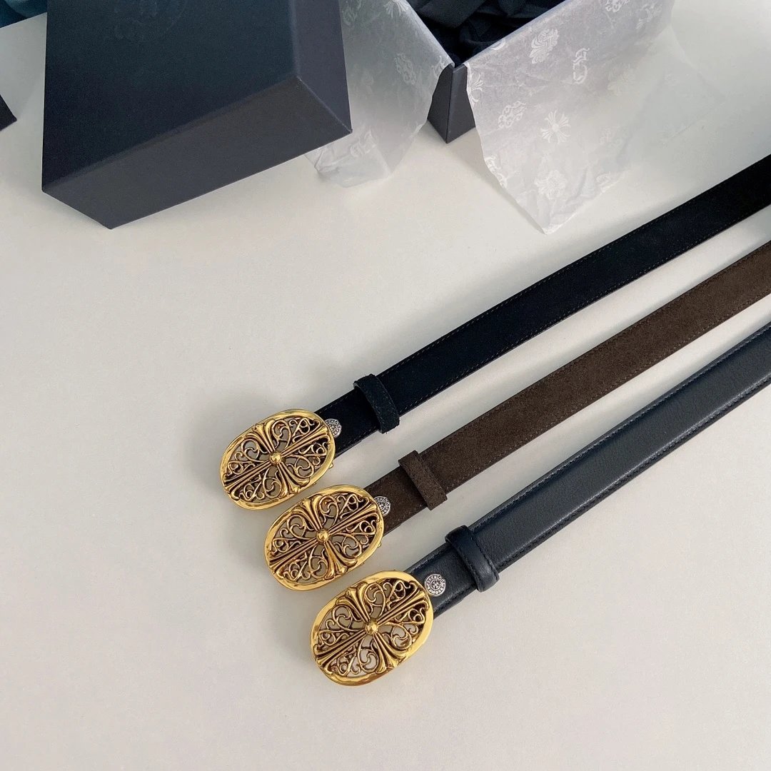 Chrome Hearts Mini Guardian Belt features removable brass-plated gold hardware & original oil wax top layer cowhide (2.5cm width).
