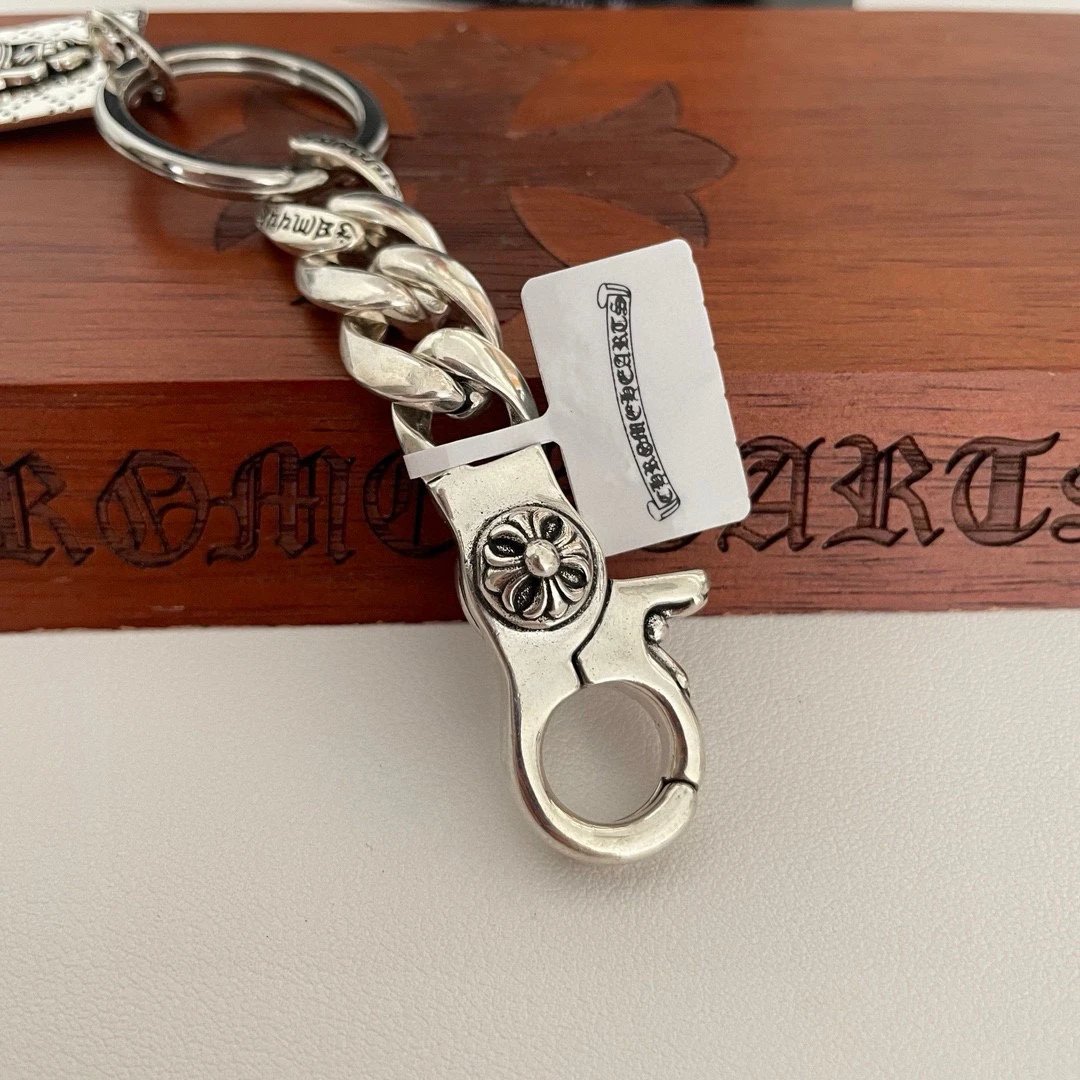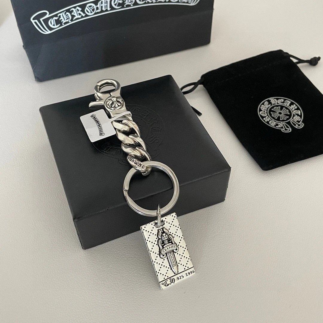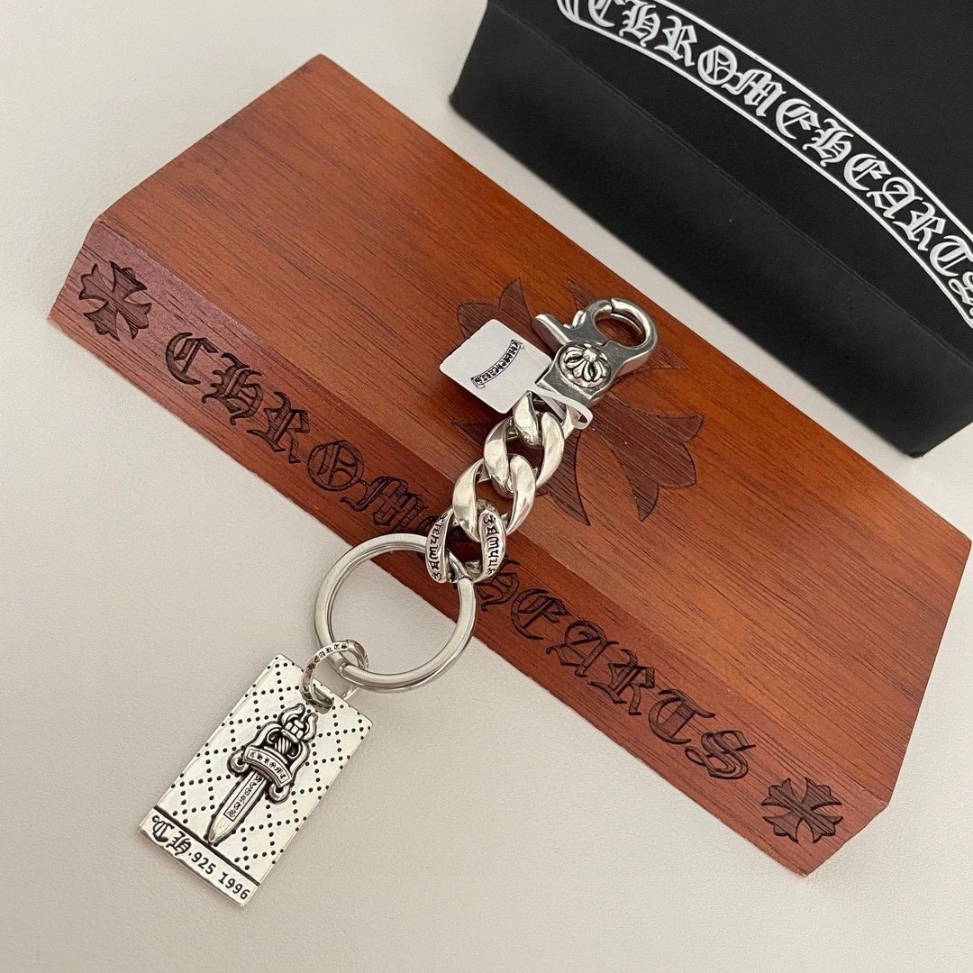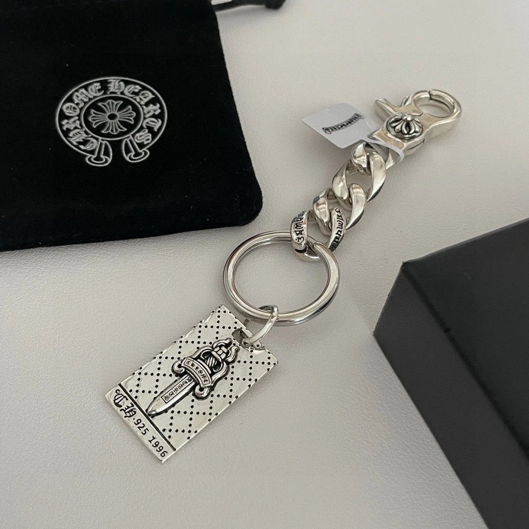 Chrome Hearts Classic Retro Sword Pendant Keychain has unique concave-convex pattern with cross & scout flower elements.