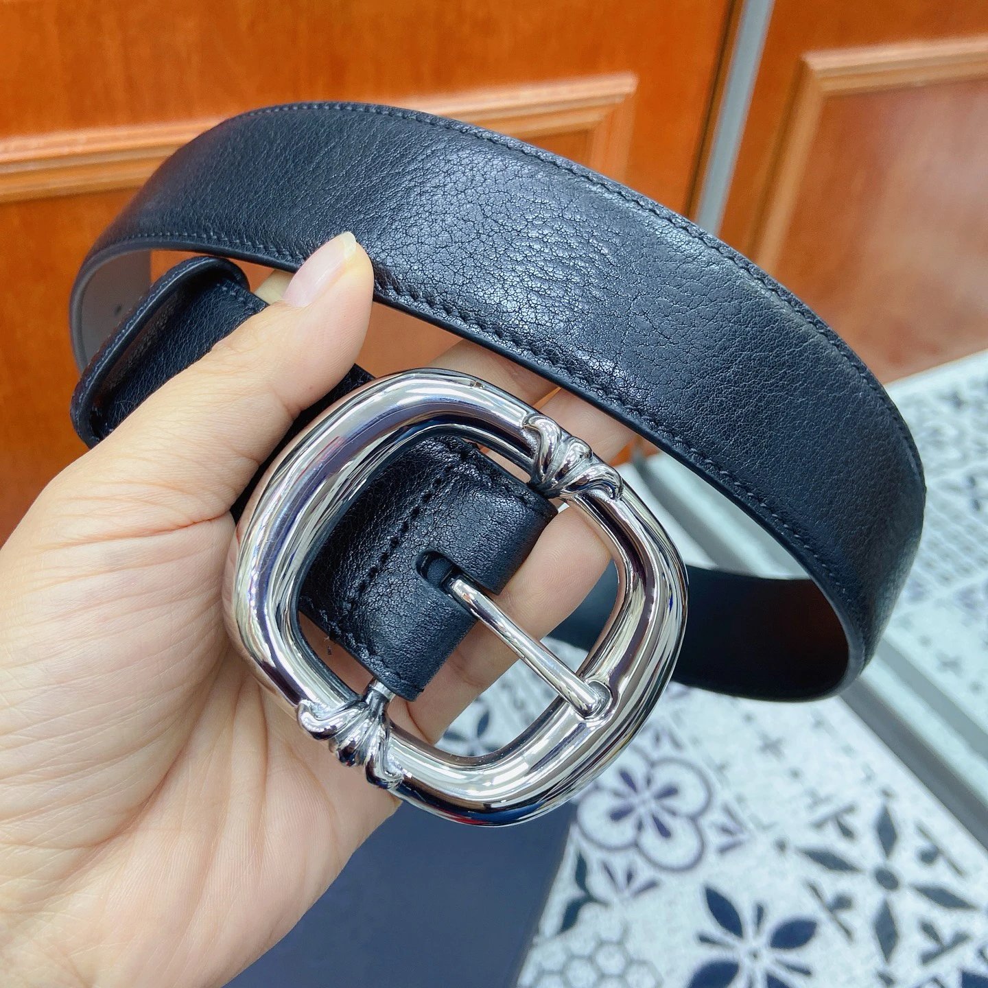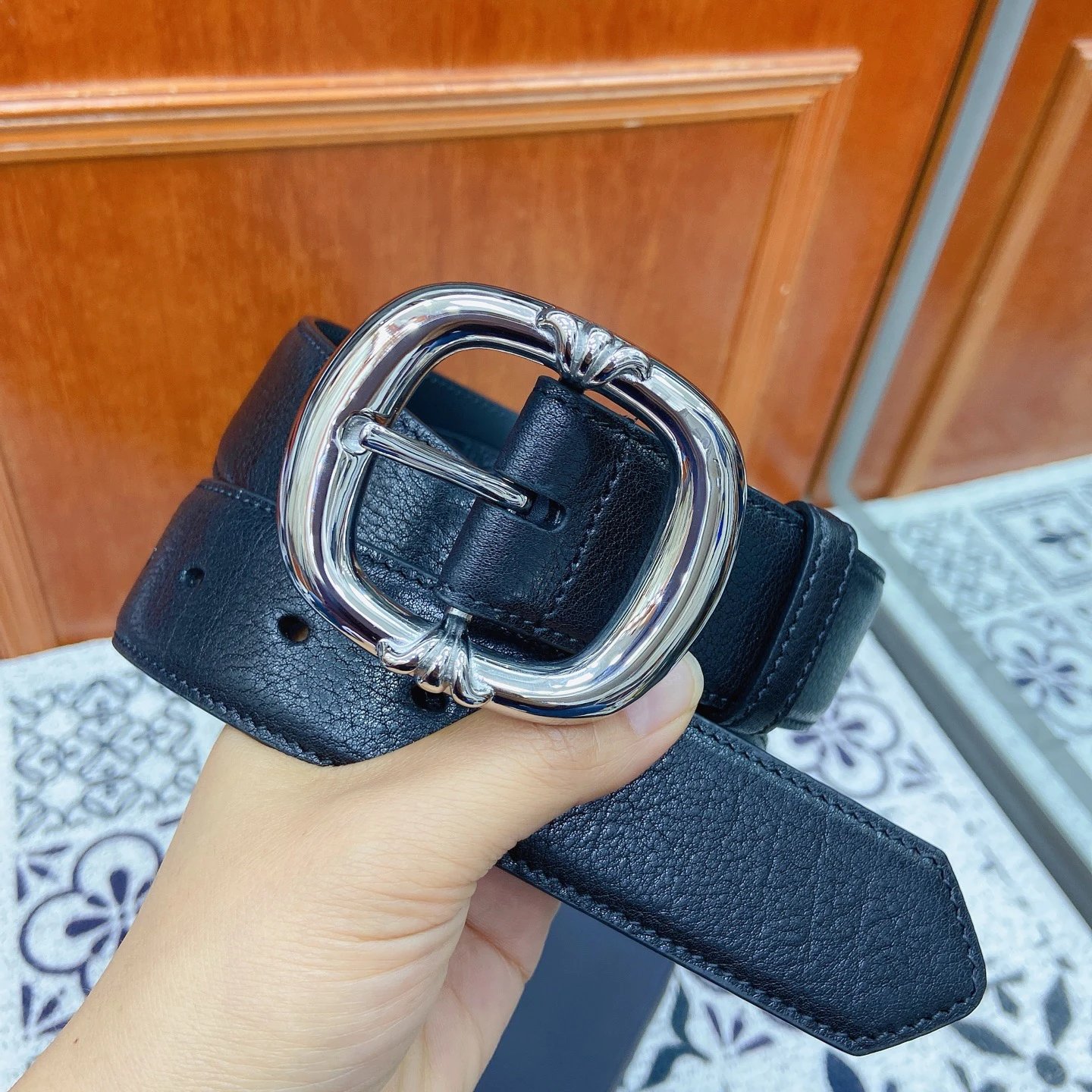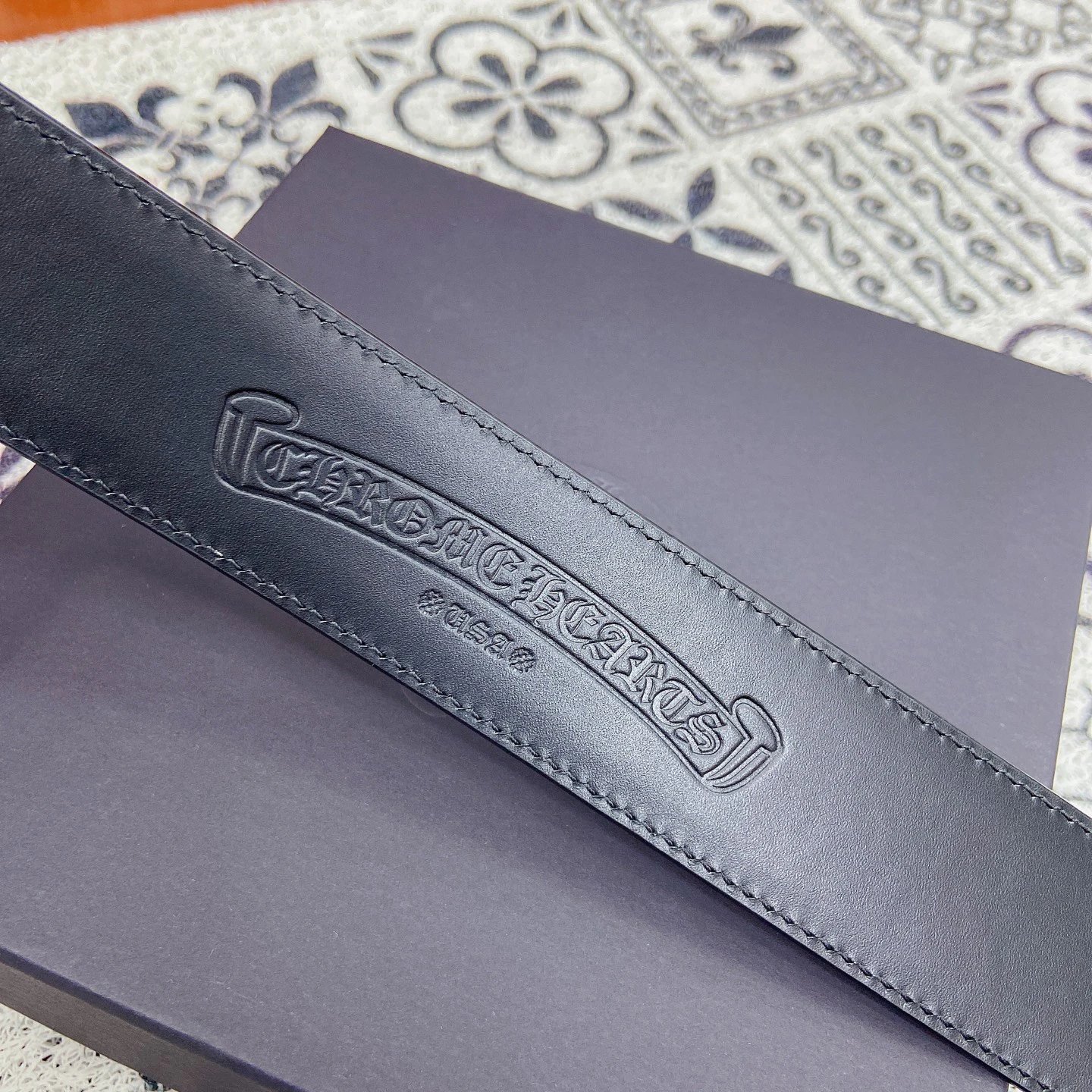 Chrome Hearts Scout Flower Square Pin Buckle Belt uses polished stainless steel hardware and imported genuine leather.