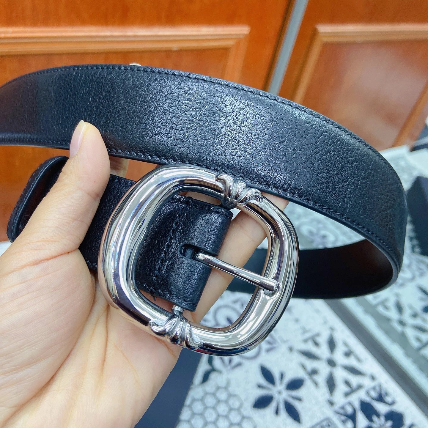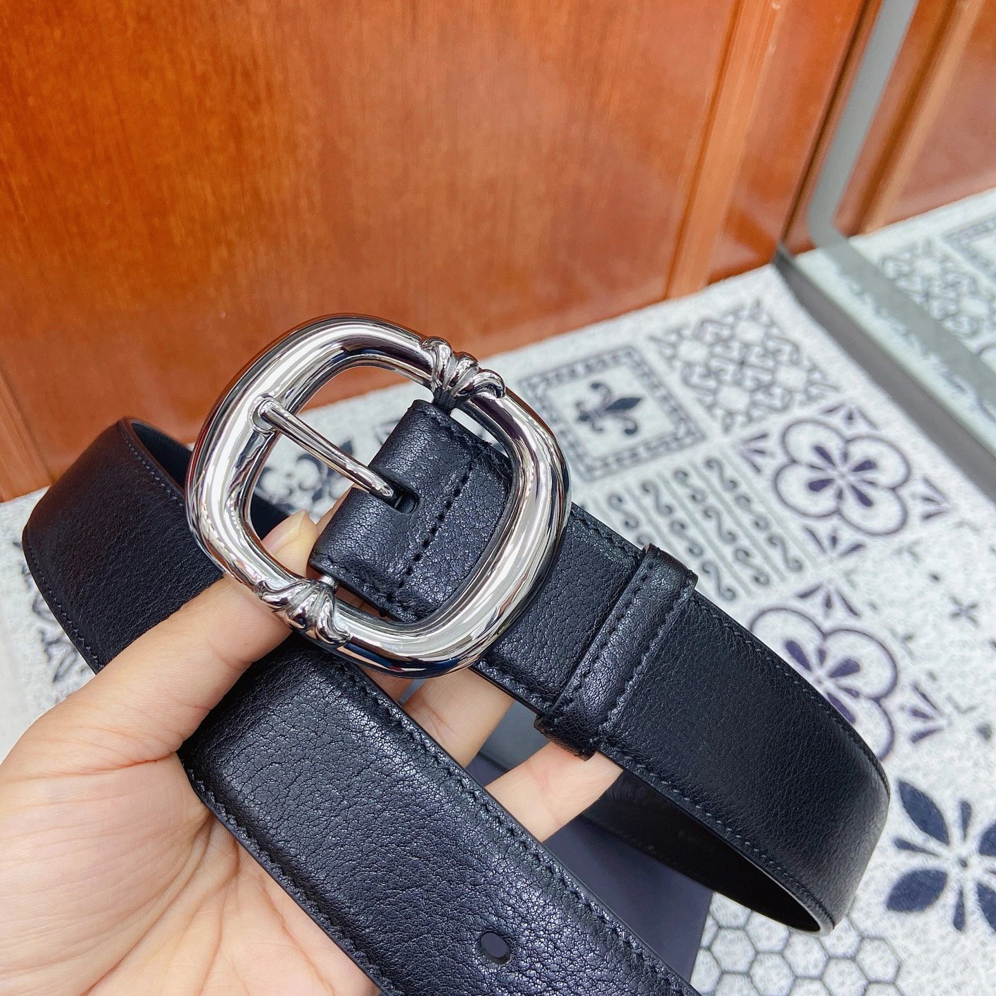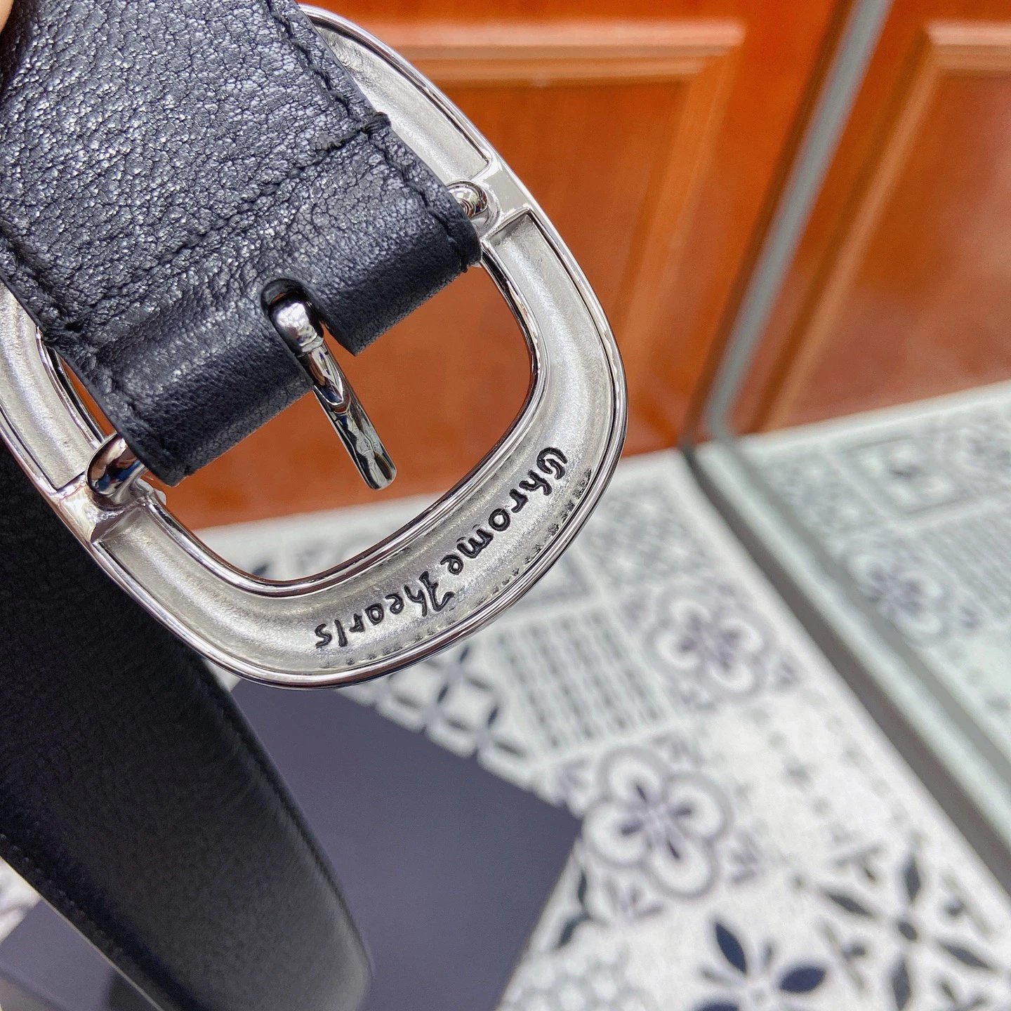 Chrome Hearts Scout Flower Square Pin Buckle Belt uses polished stainless steel hardware and imported genuine leather.