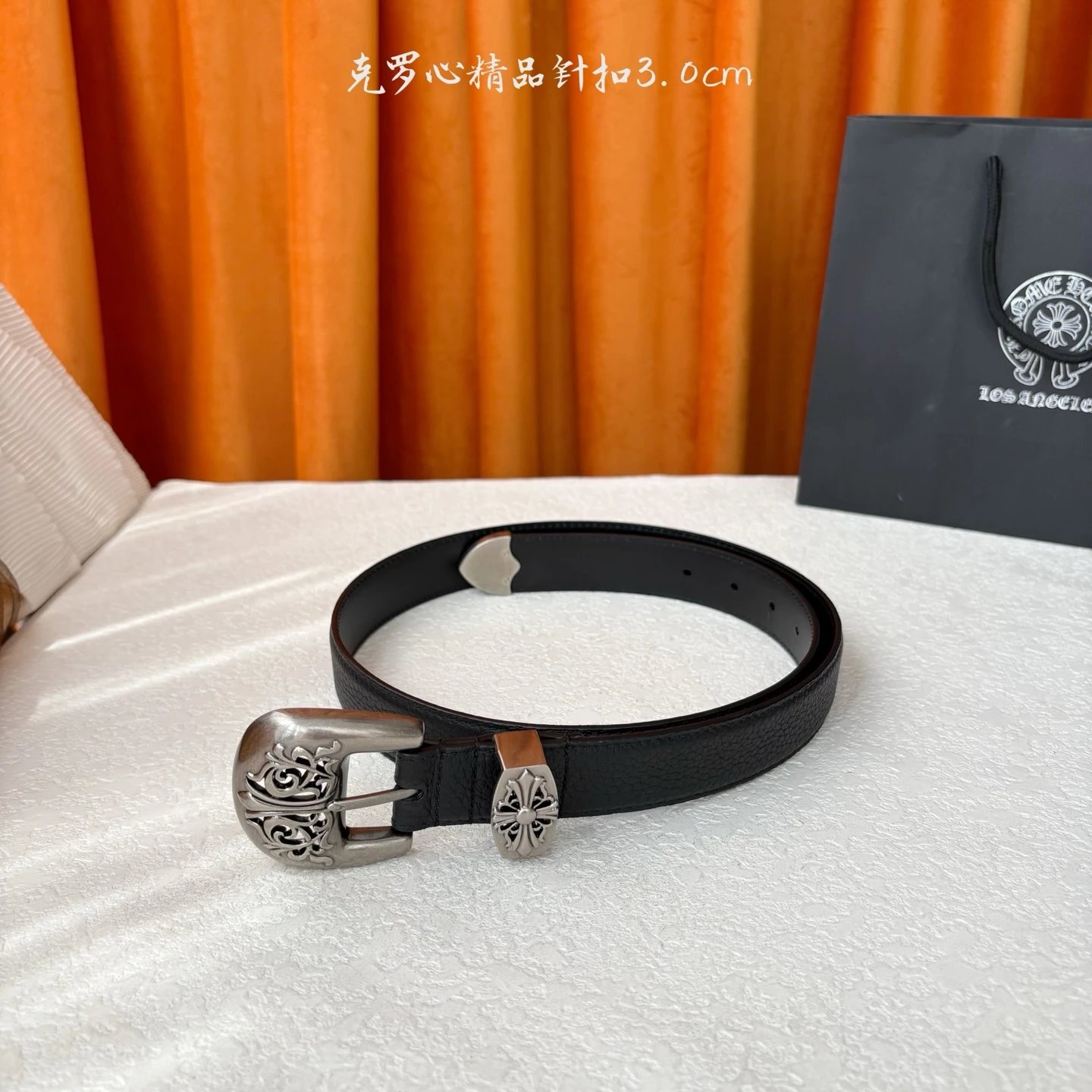Chrome Hearts Cat Claw Buckle Belt features vintage silver hardware and full grain leather.