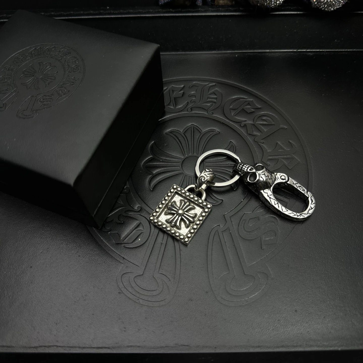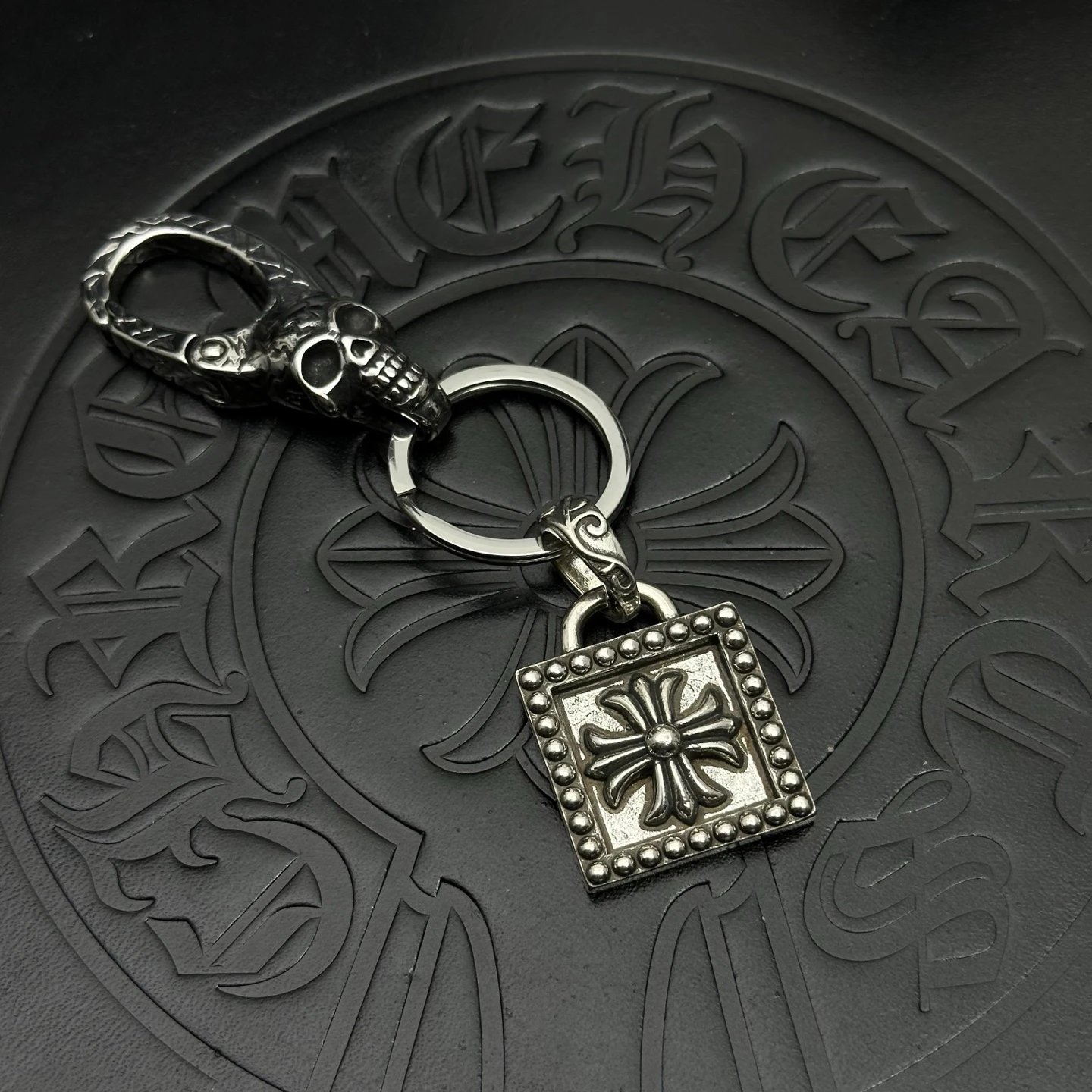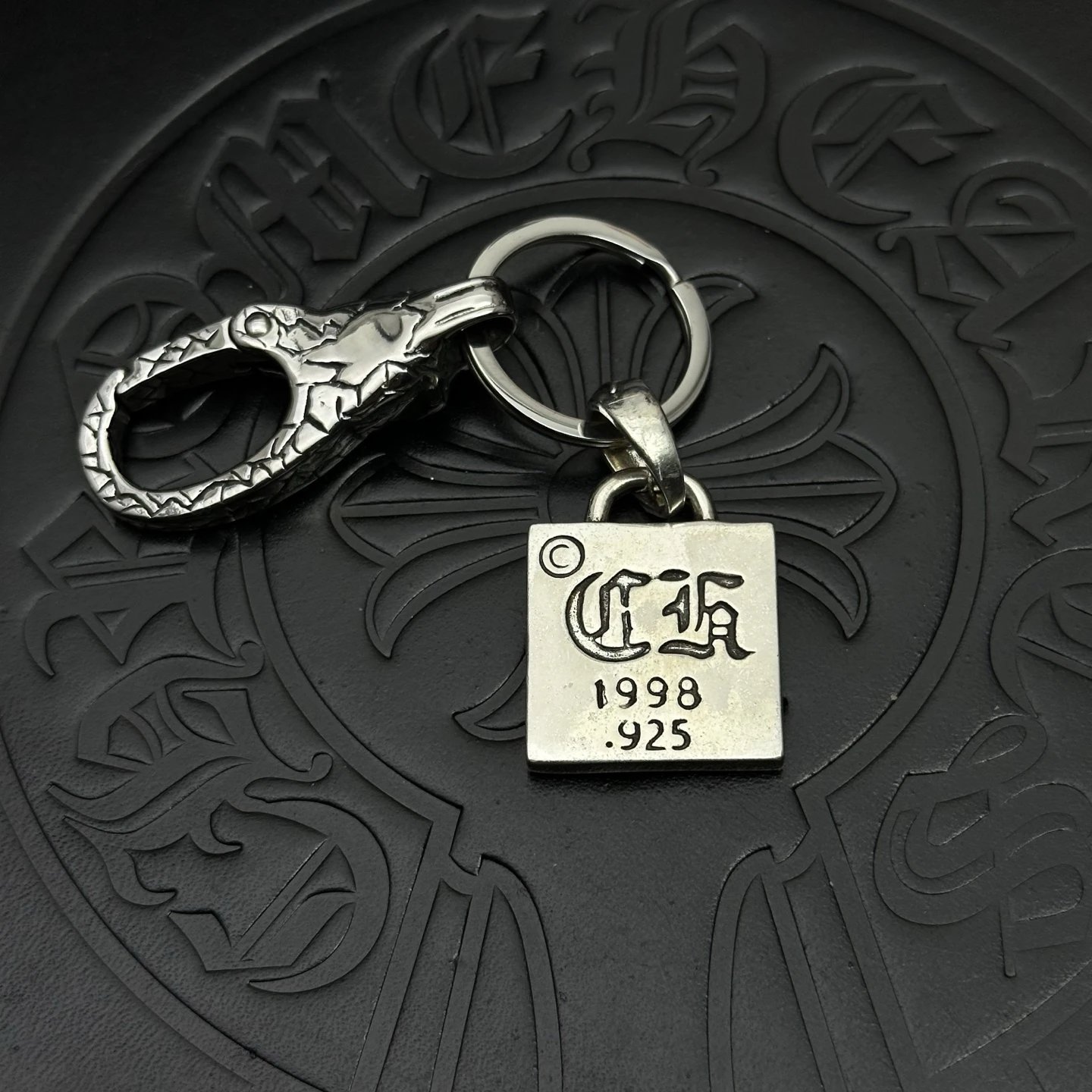 Chrome Hearts 925 Silver Keychain: Handcrafted with oxidized finish for unique texture, exquisite workmanship.