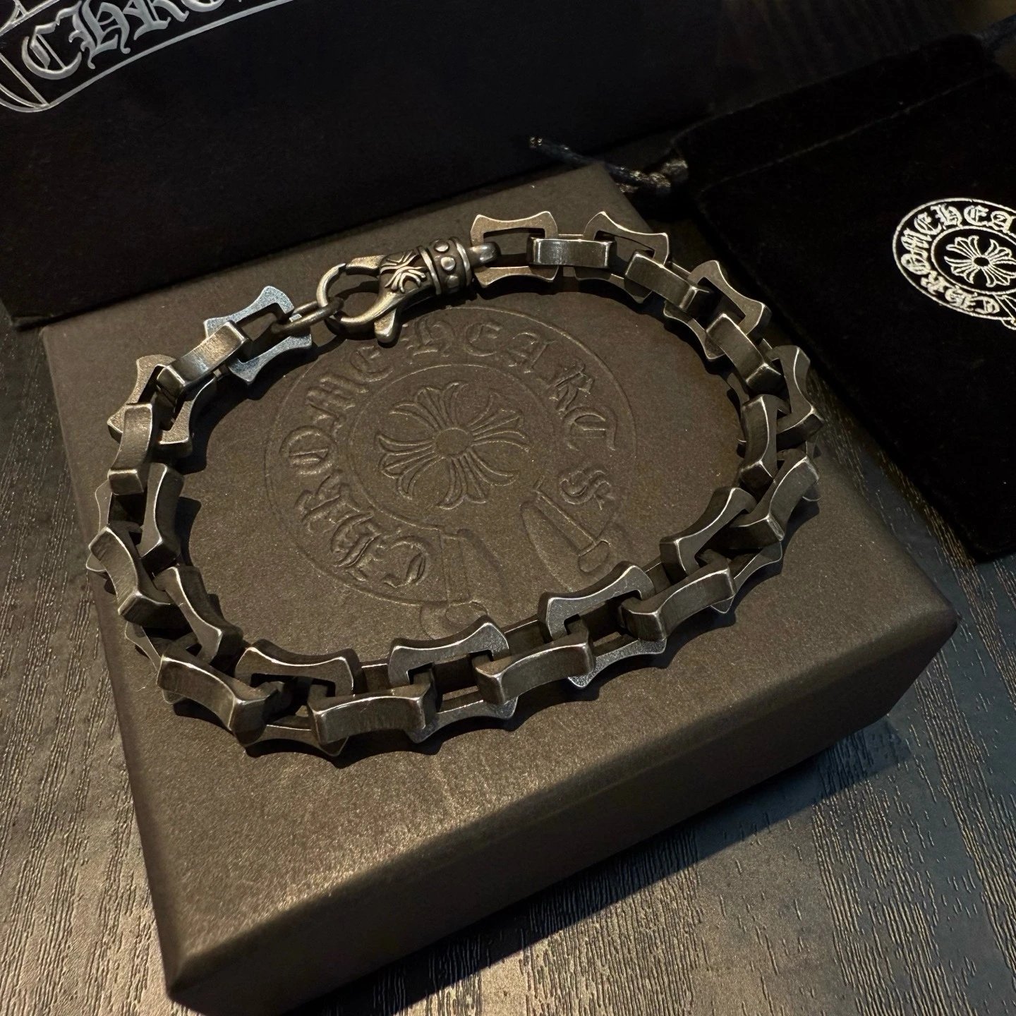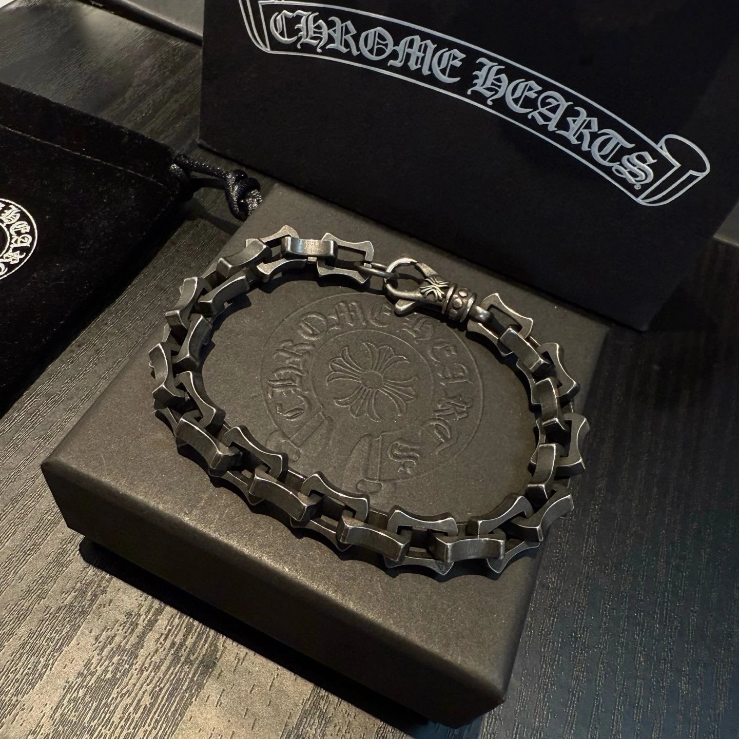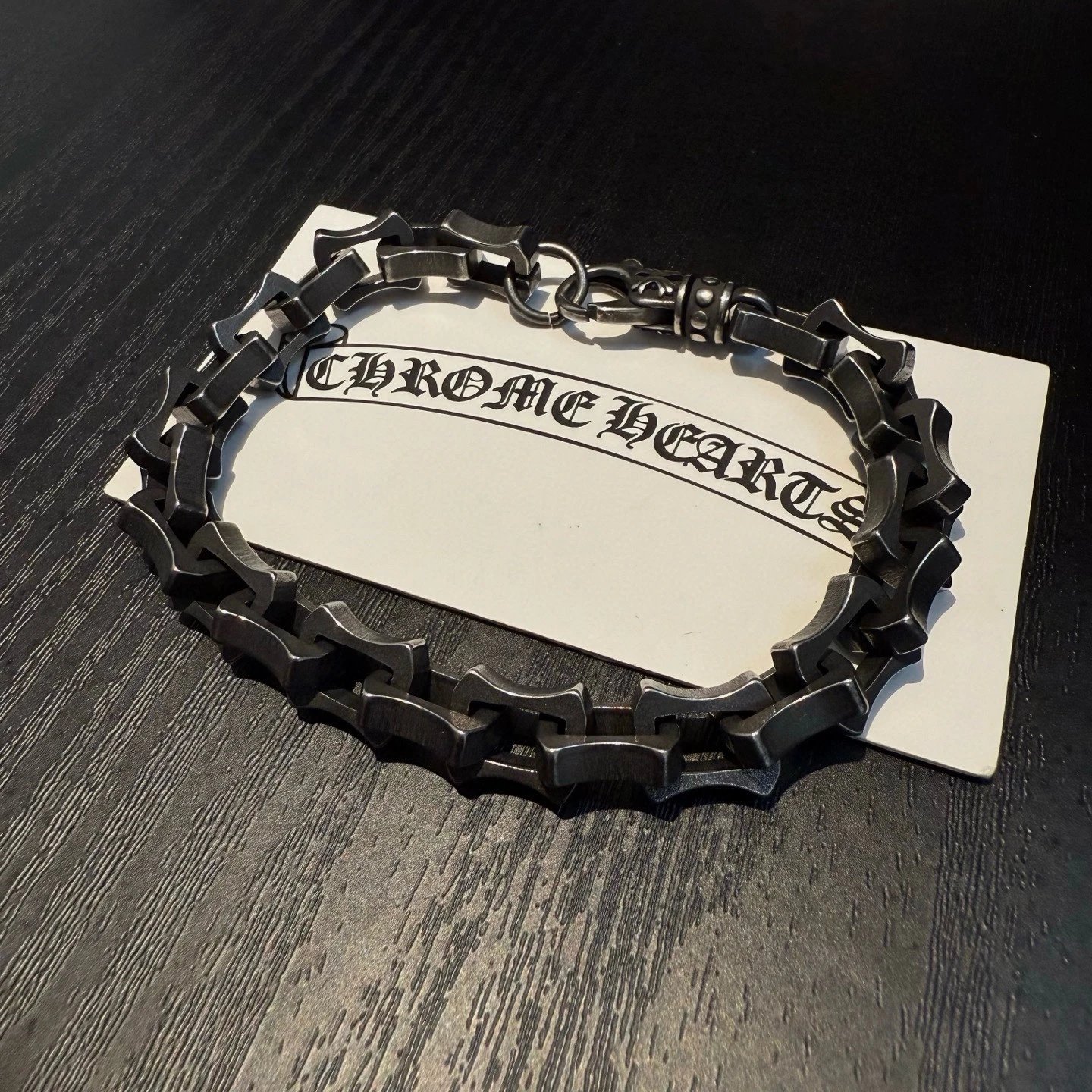 Chrome Hearts Vintage Distressed Bracelet features textured patterns with cross & scout flower motifs for lasting appeal.