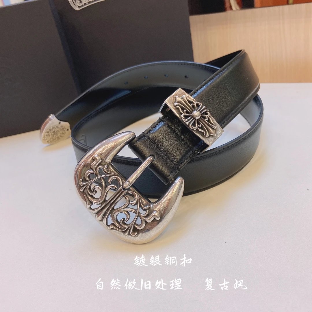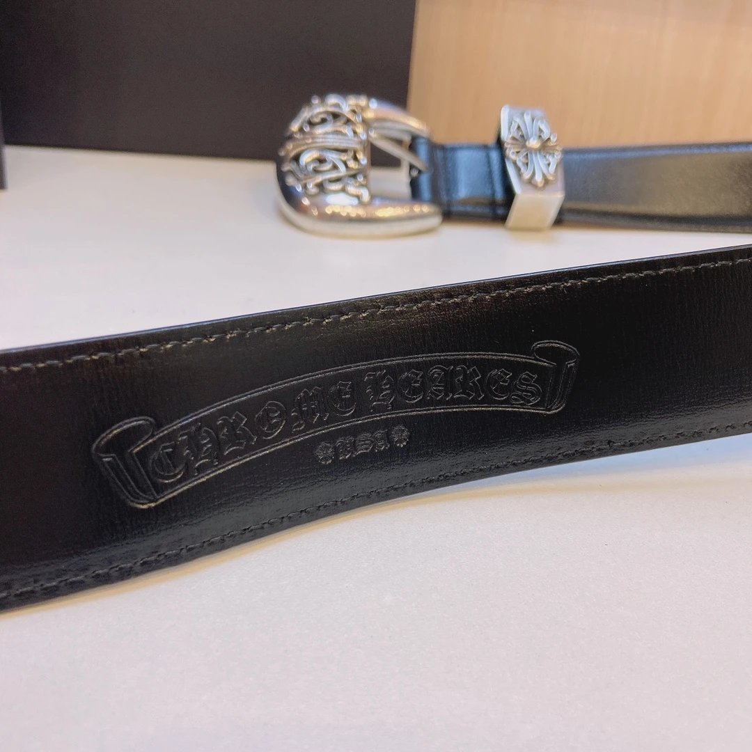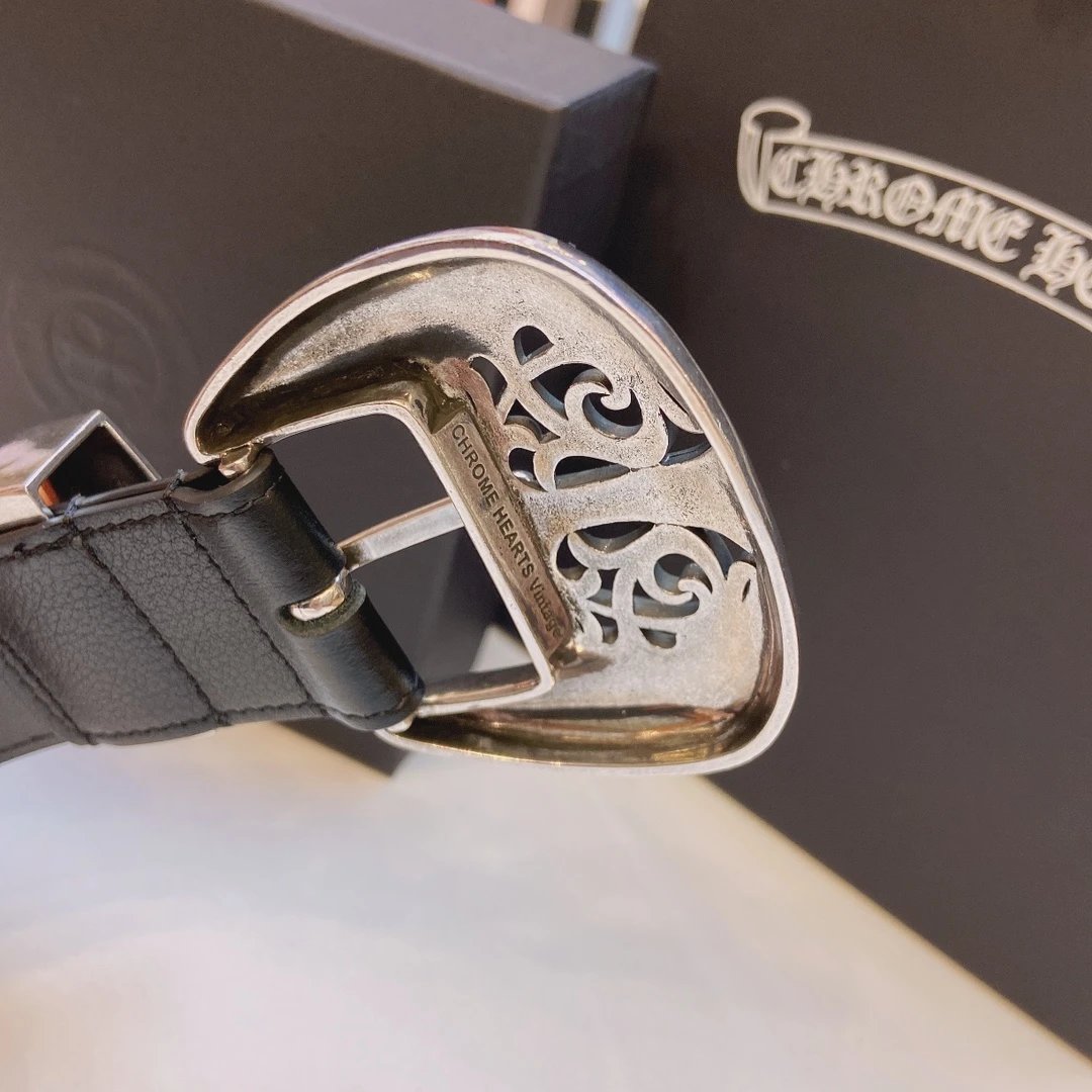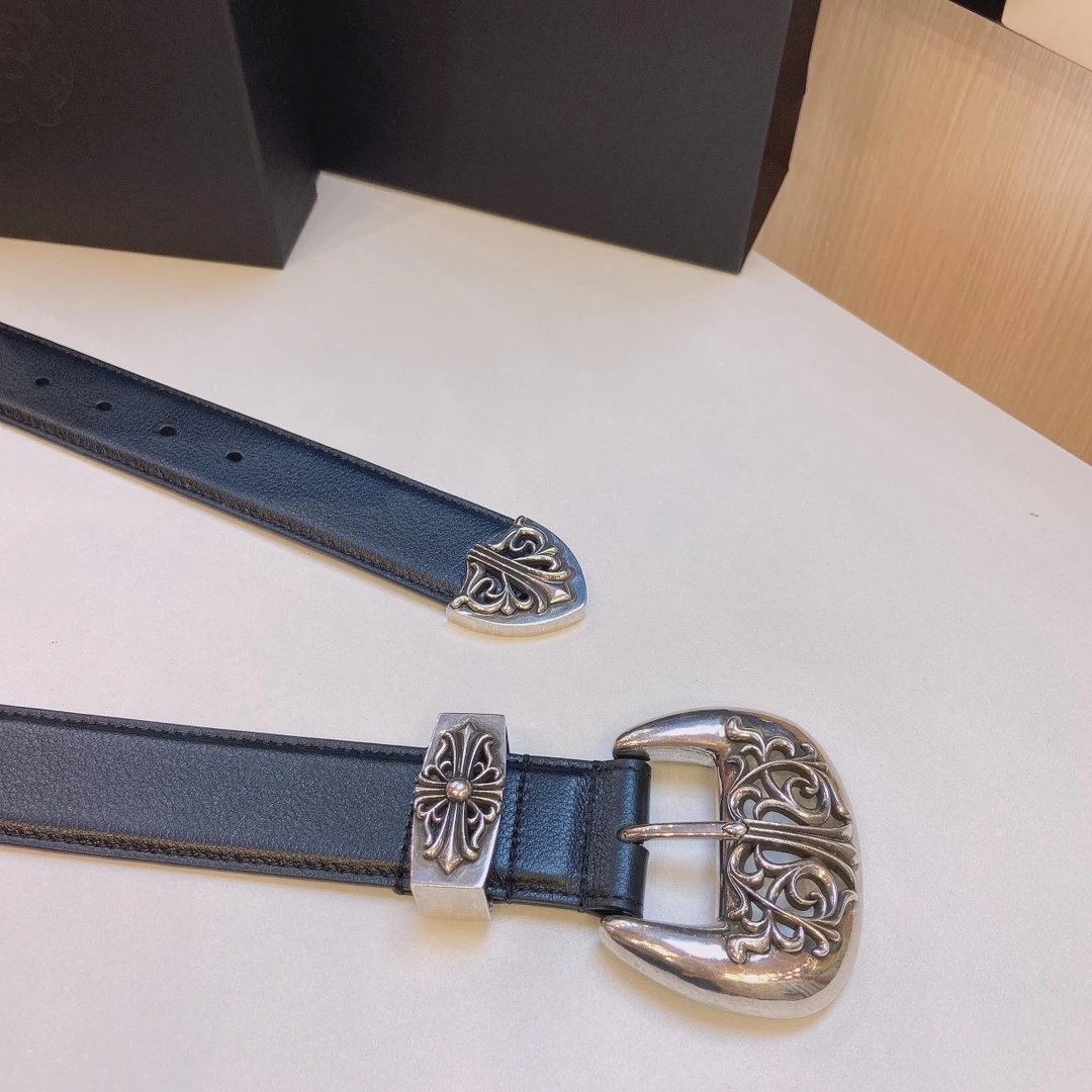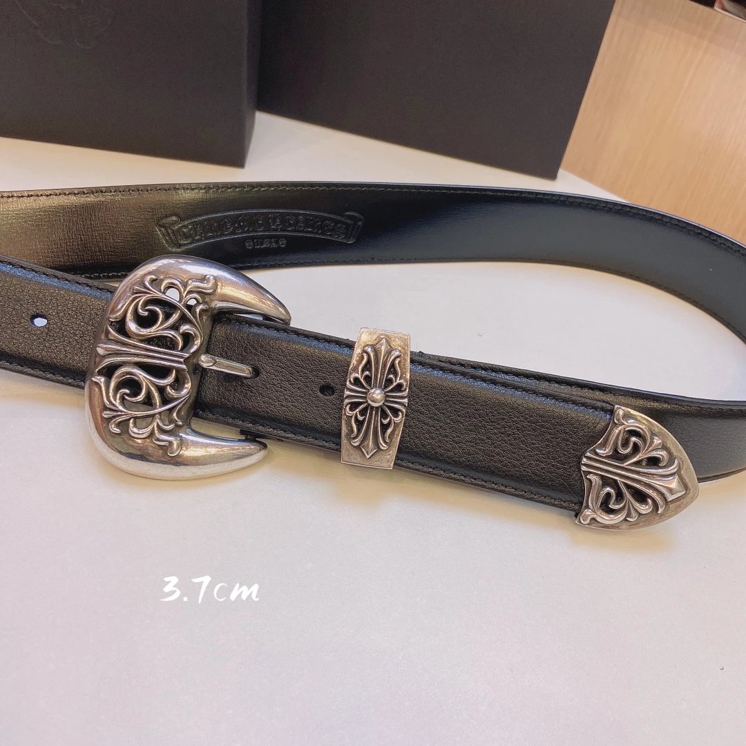 Chrome Hearts authentic-style belt with s925 cat claw buckle (sterling silver plated brass), genuine leather strap & 3.7cm width.