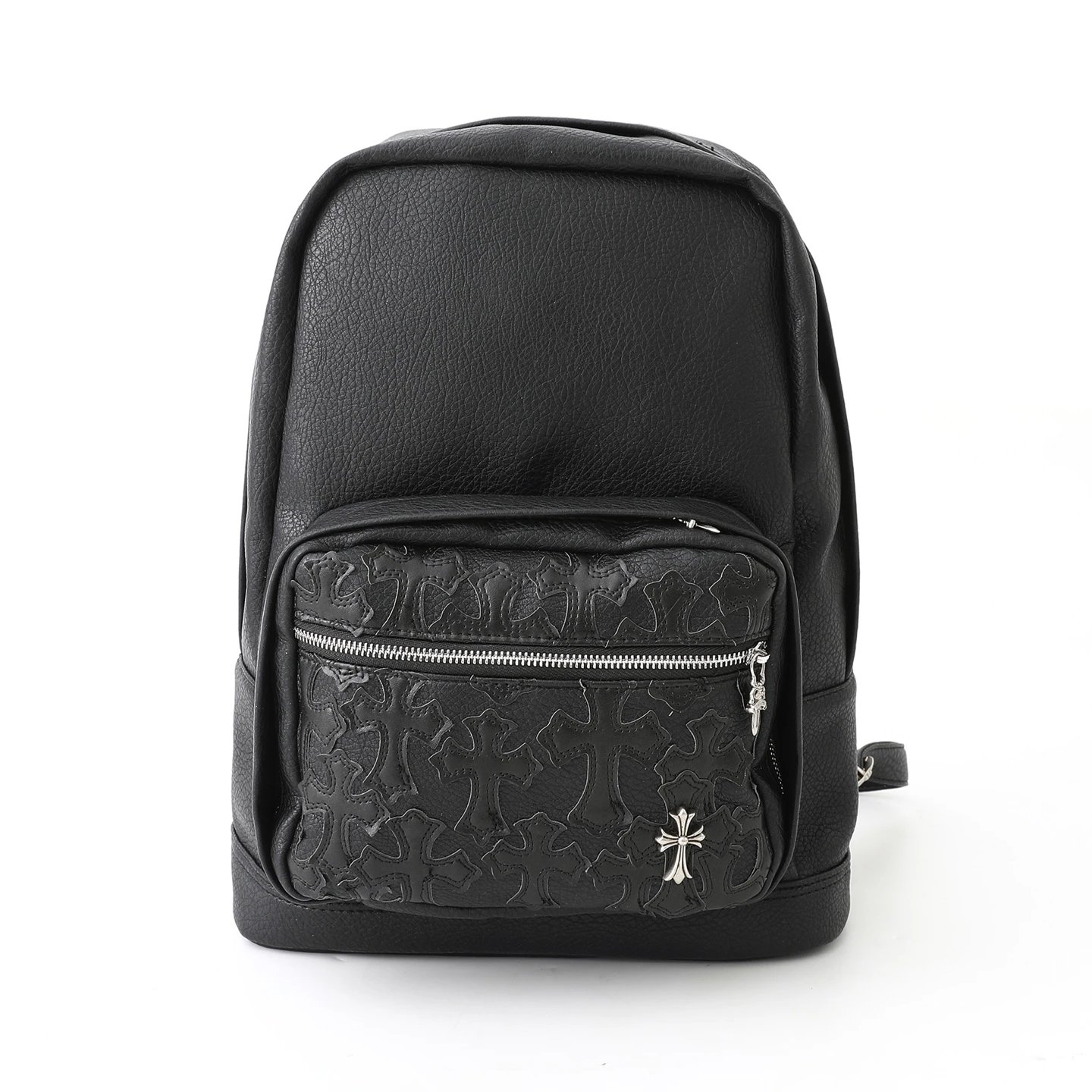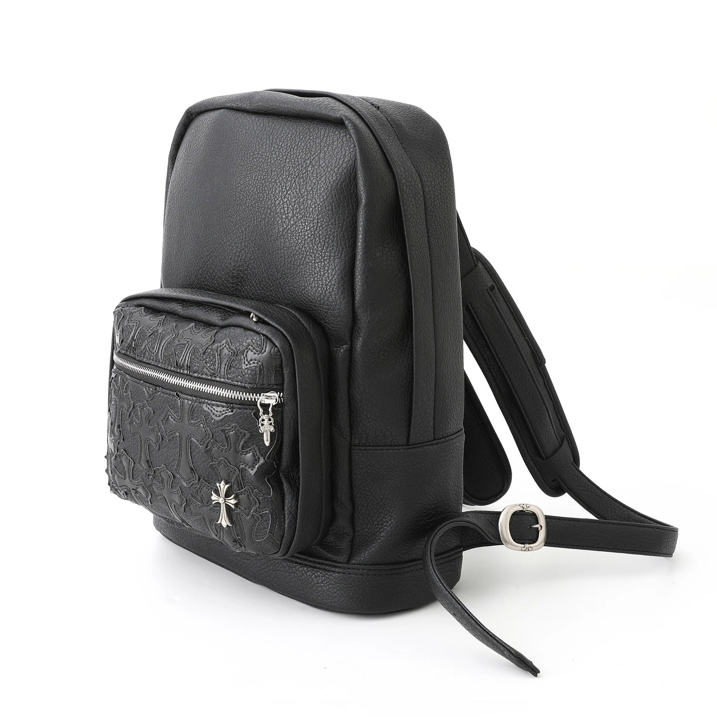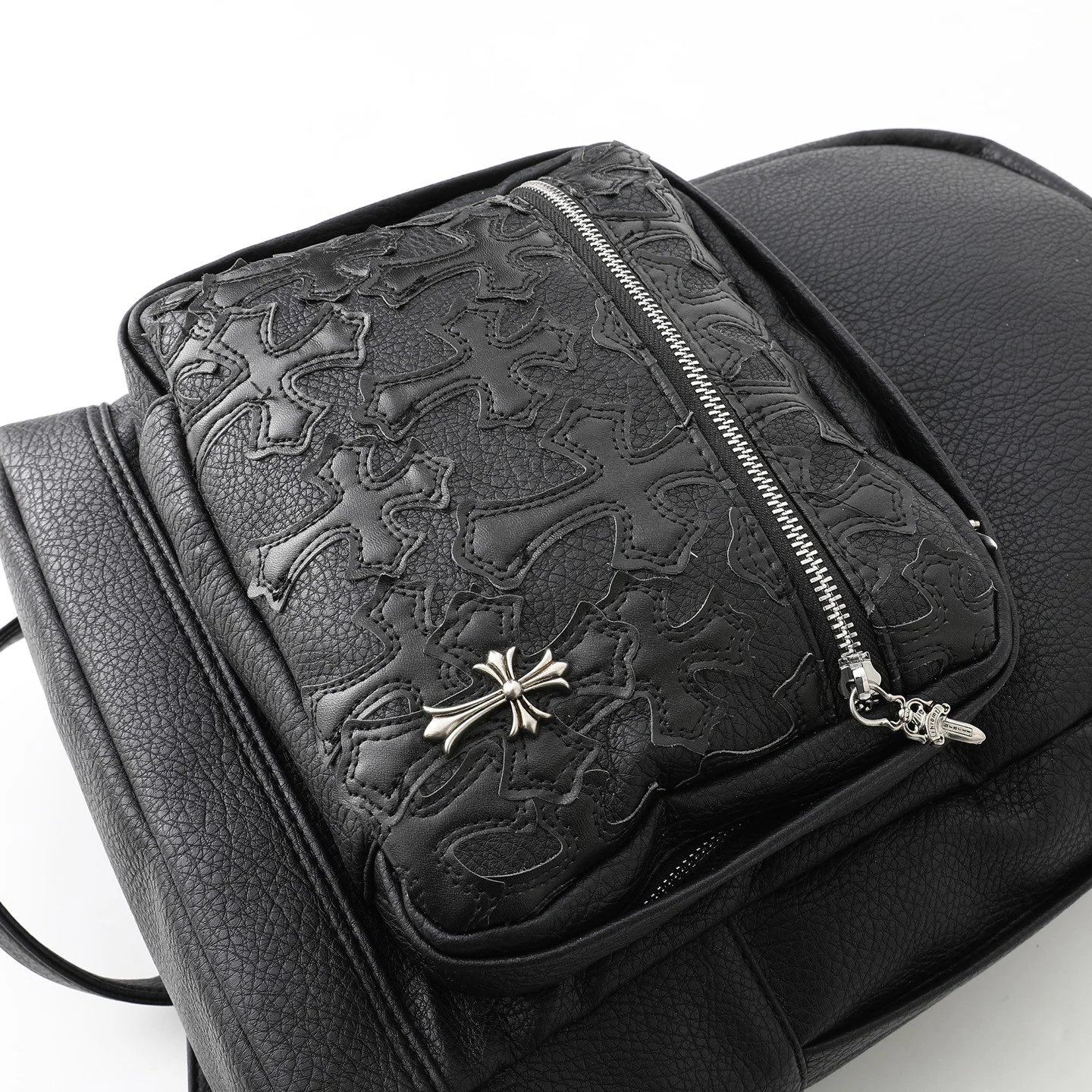 Chrome Hearts 300 Come Hearts Black Leather Backpack is unisex with zipper closure.