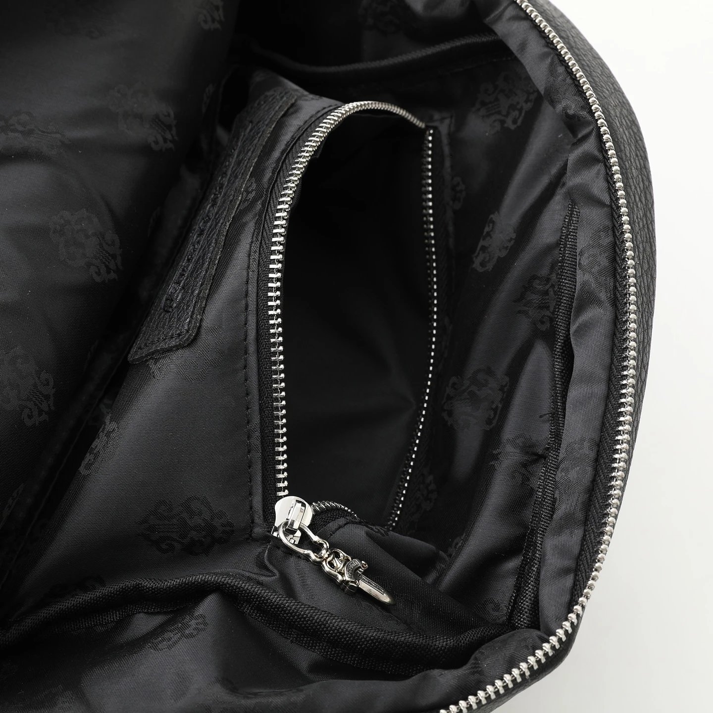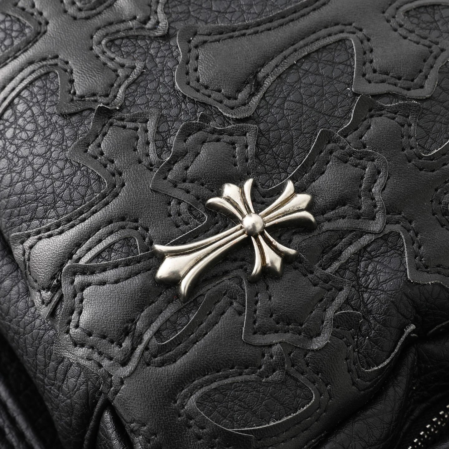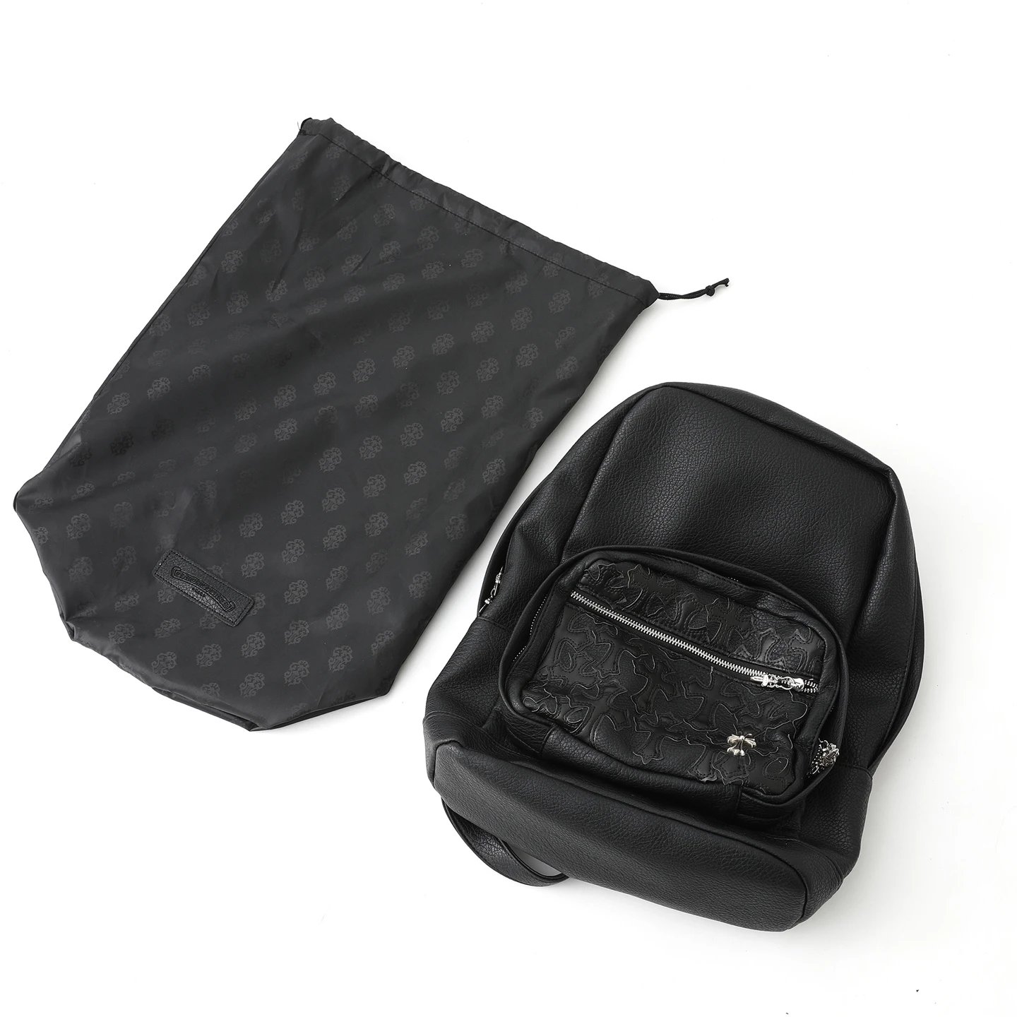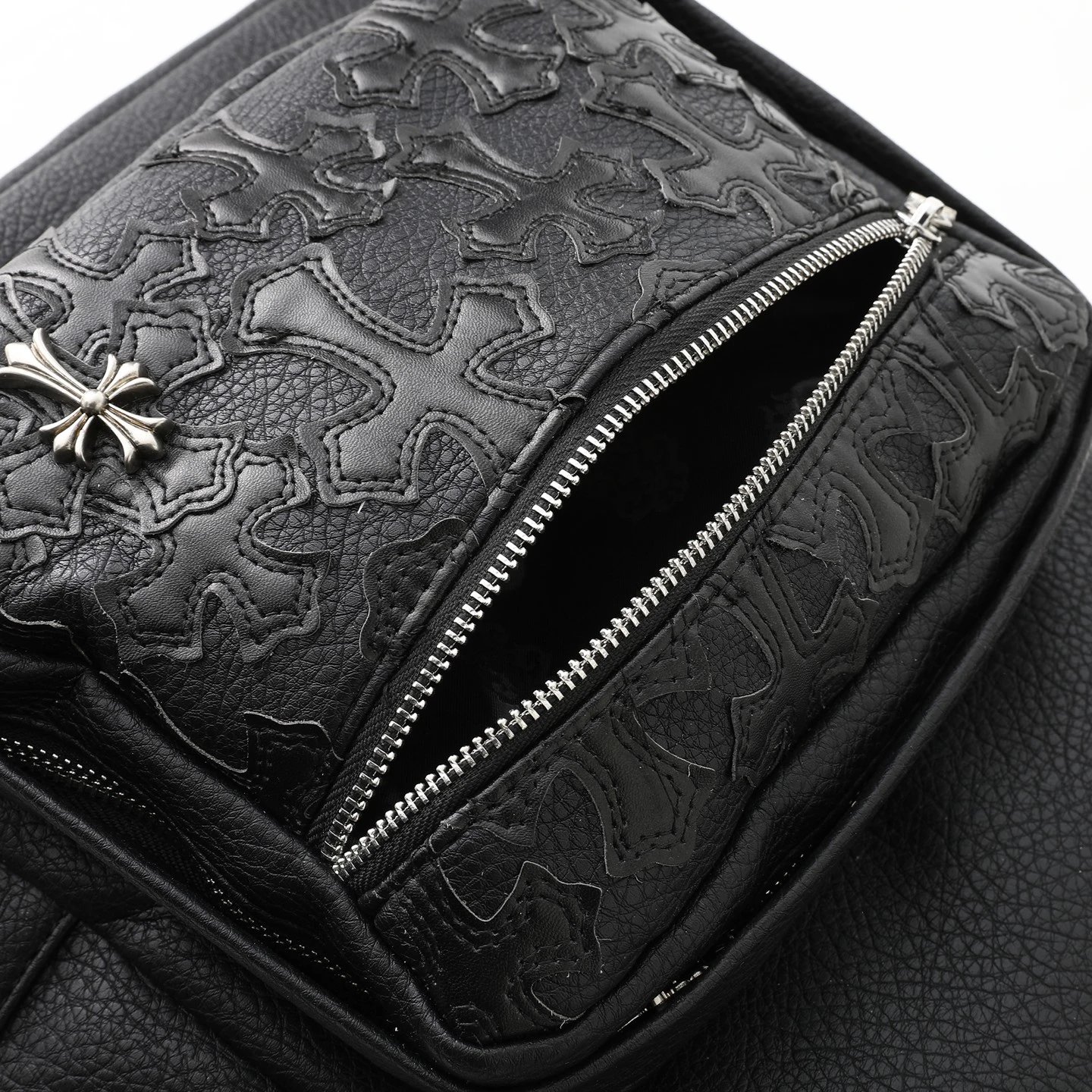 Chrome Hearts 300 Come Hearts Black Leather Backpack is unisex with zipper closure.
