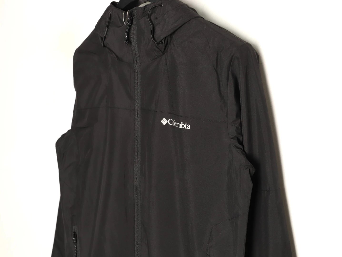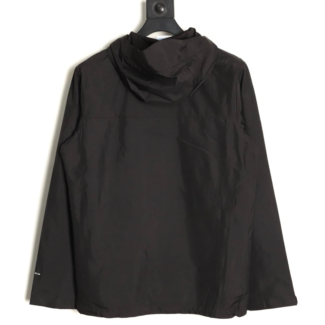Adjustable hood, Velcro cuffs, ideal for outdoor activities. Slim fit, stylish black & khaki color block.