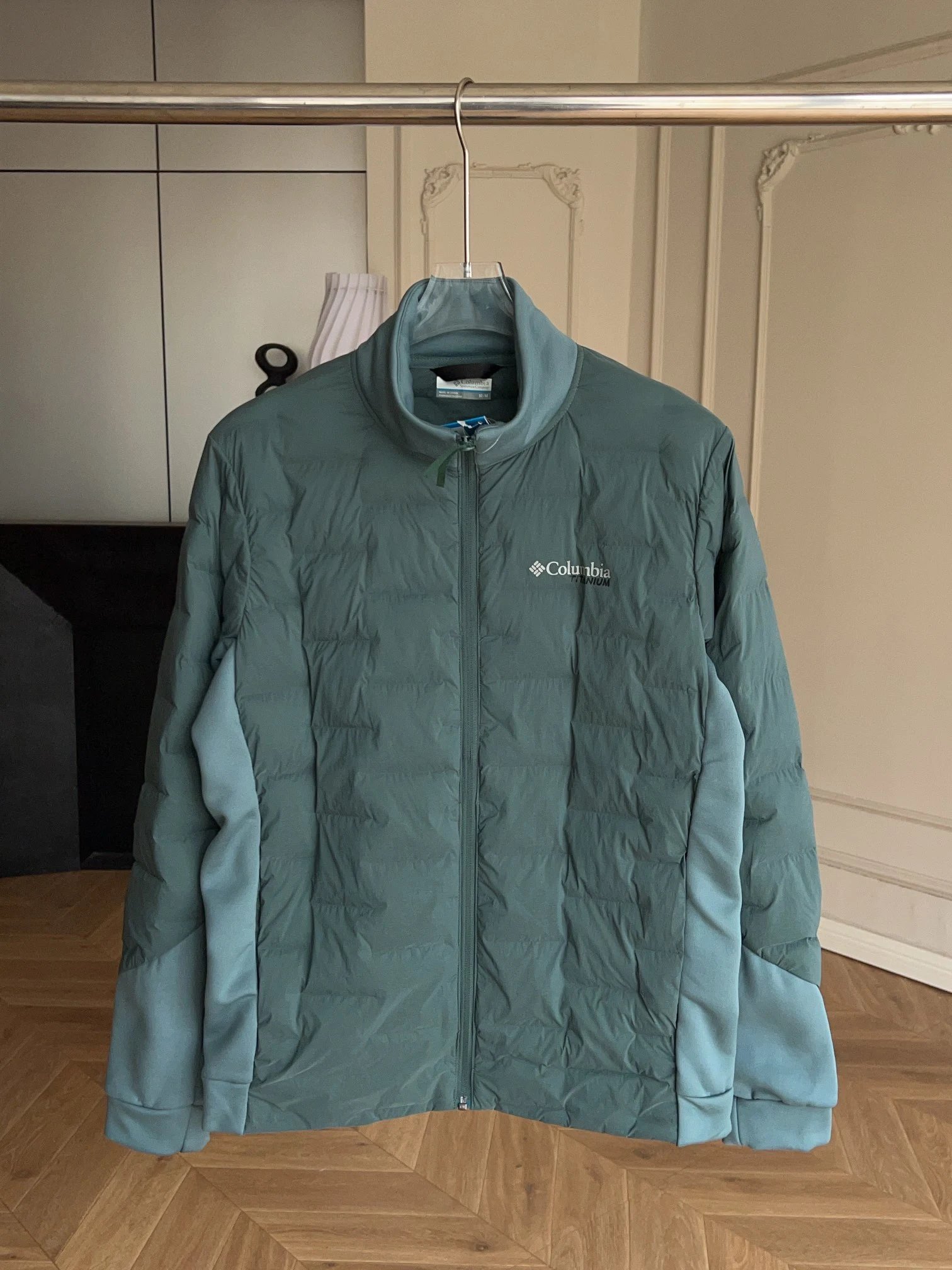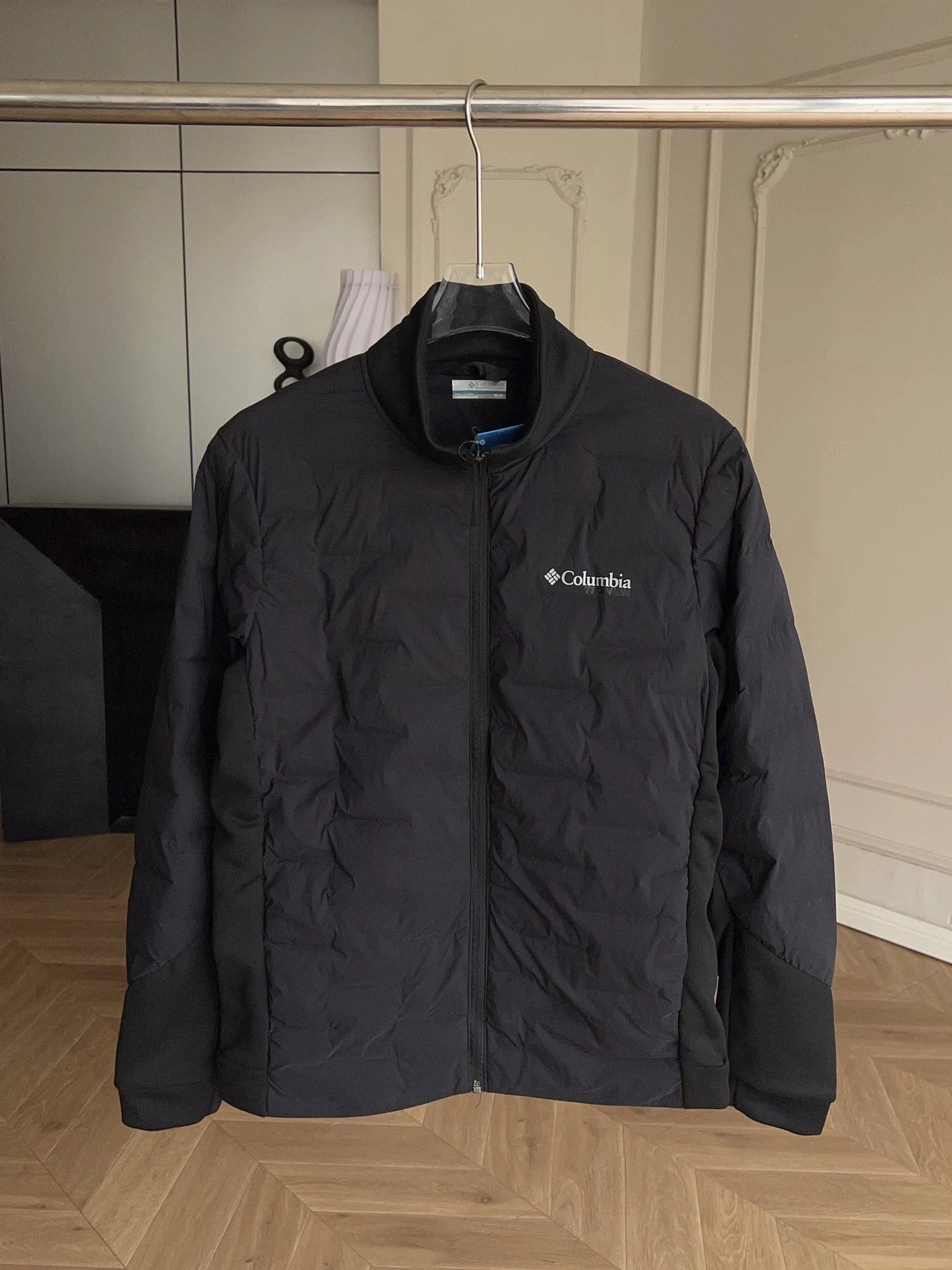 Columbia Men's Patchwork Stand Collar Down Jacket uses seamless glue to prevent down leakage.