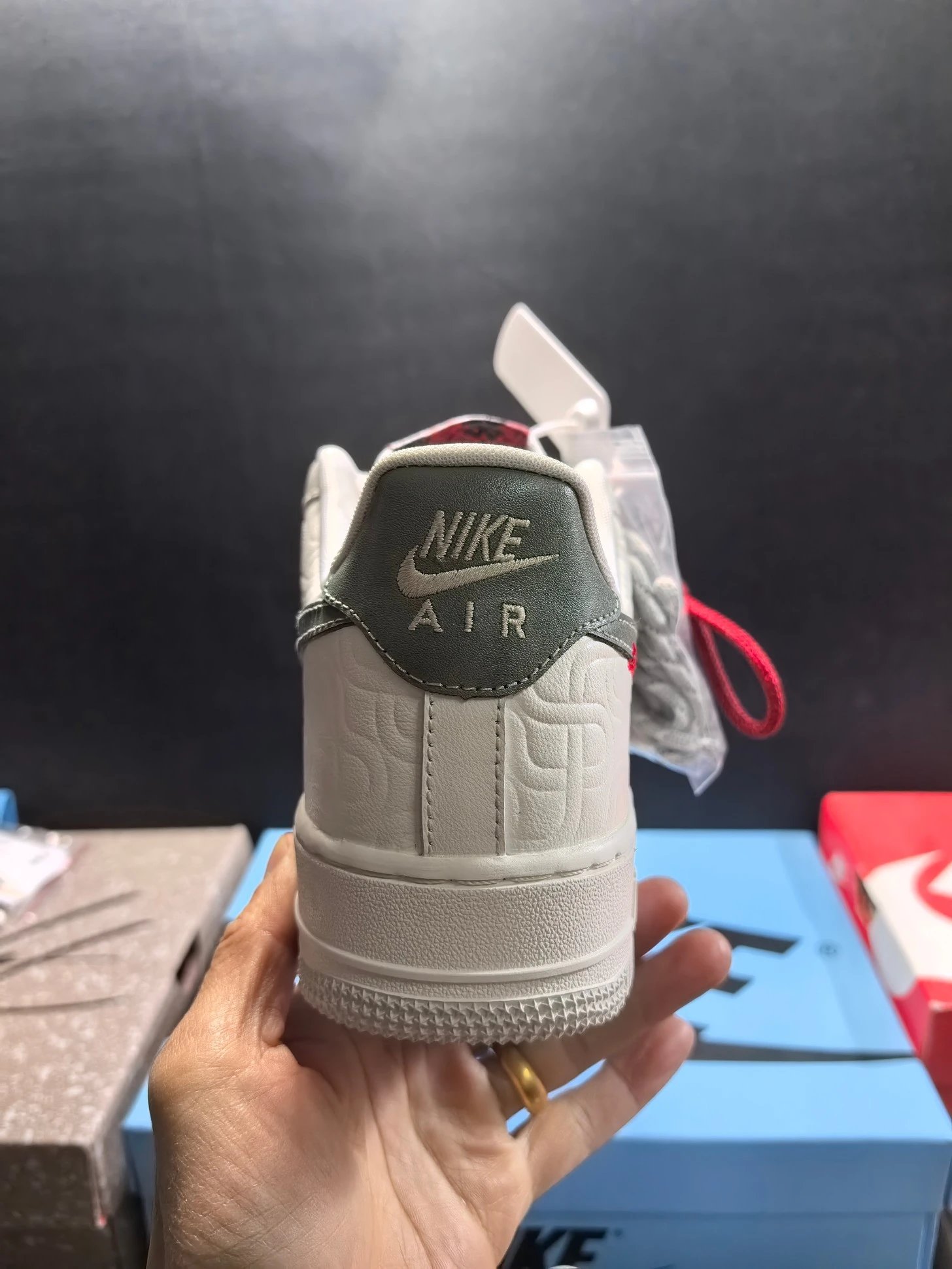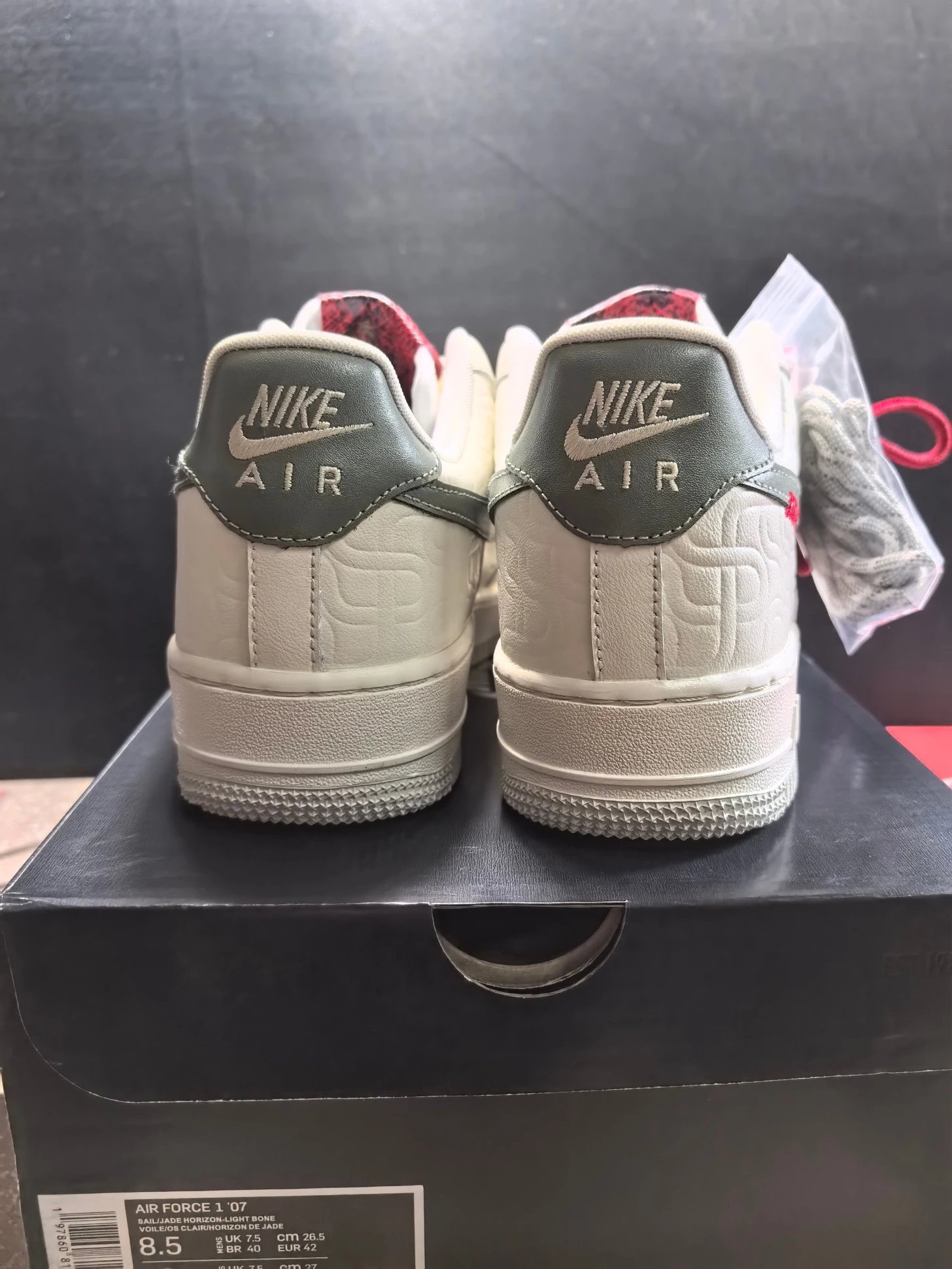 NIKE Air Force 1 Premium shoes feature authentic details as shown in real shots.