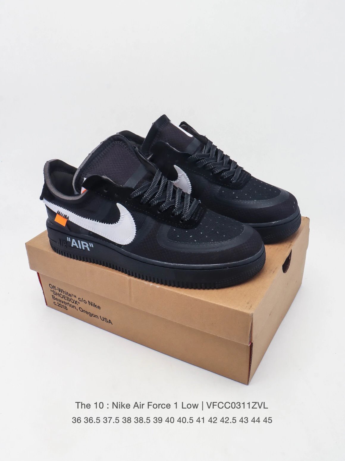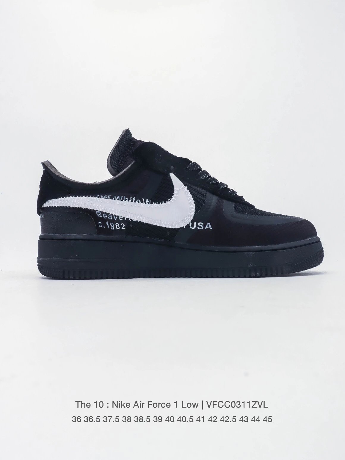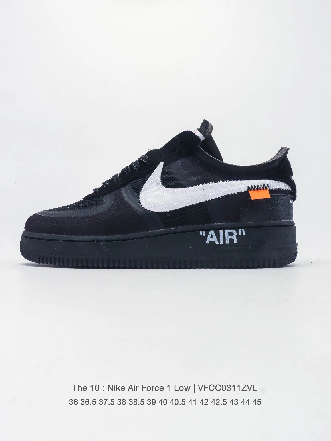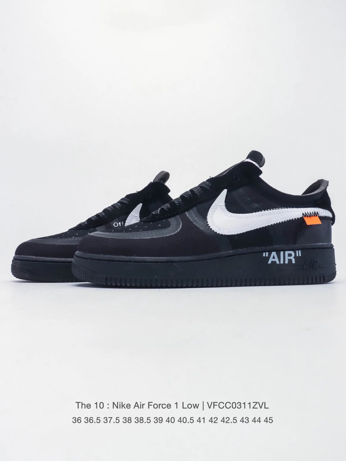 NIKE WHITE x Air Force 1 OW Co-branded Thick Sole Elevated Sneakers feature co-branded design, large inner slogans & crystal midsole 'AIR' for high recognition.