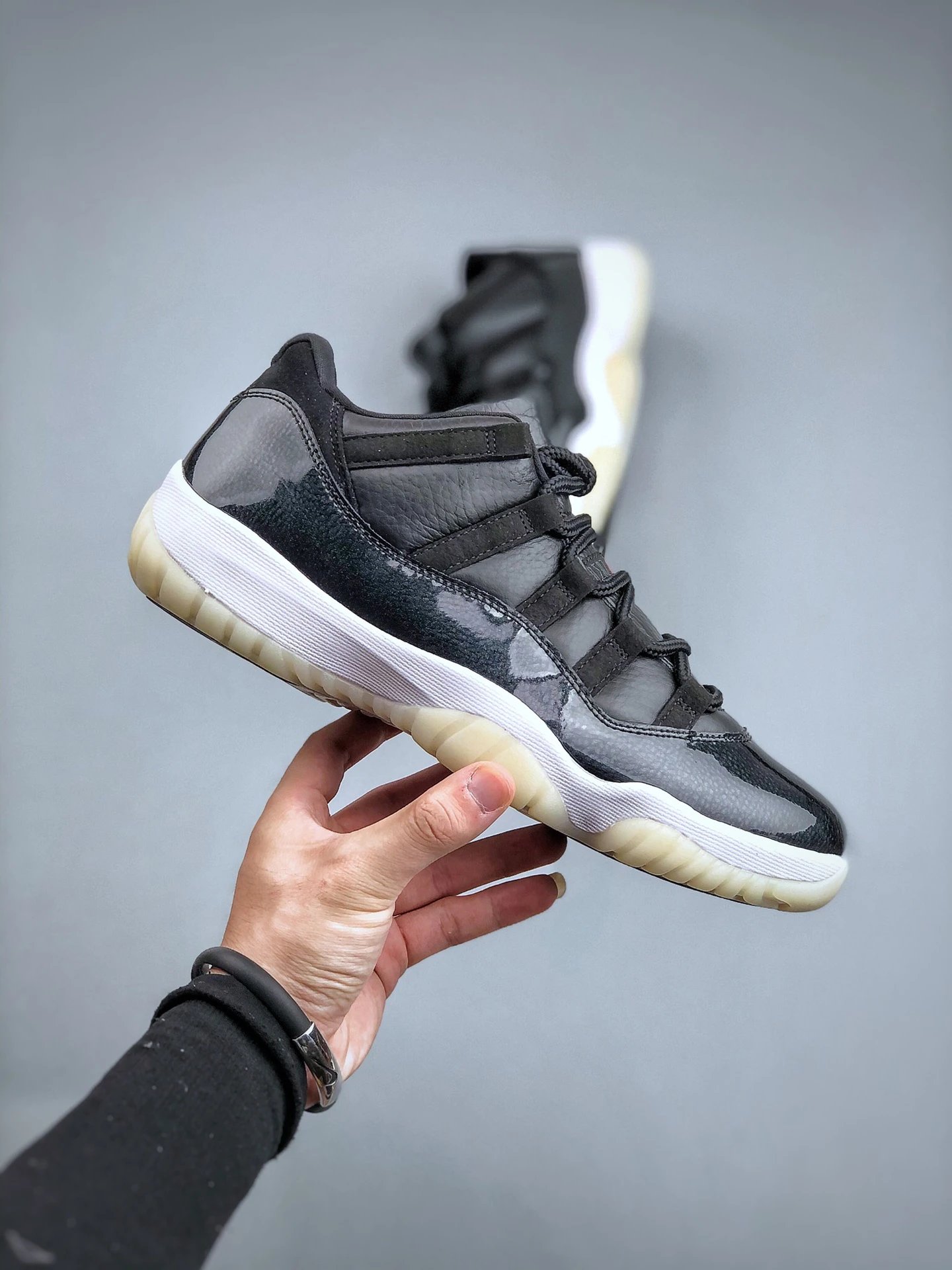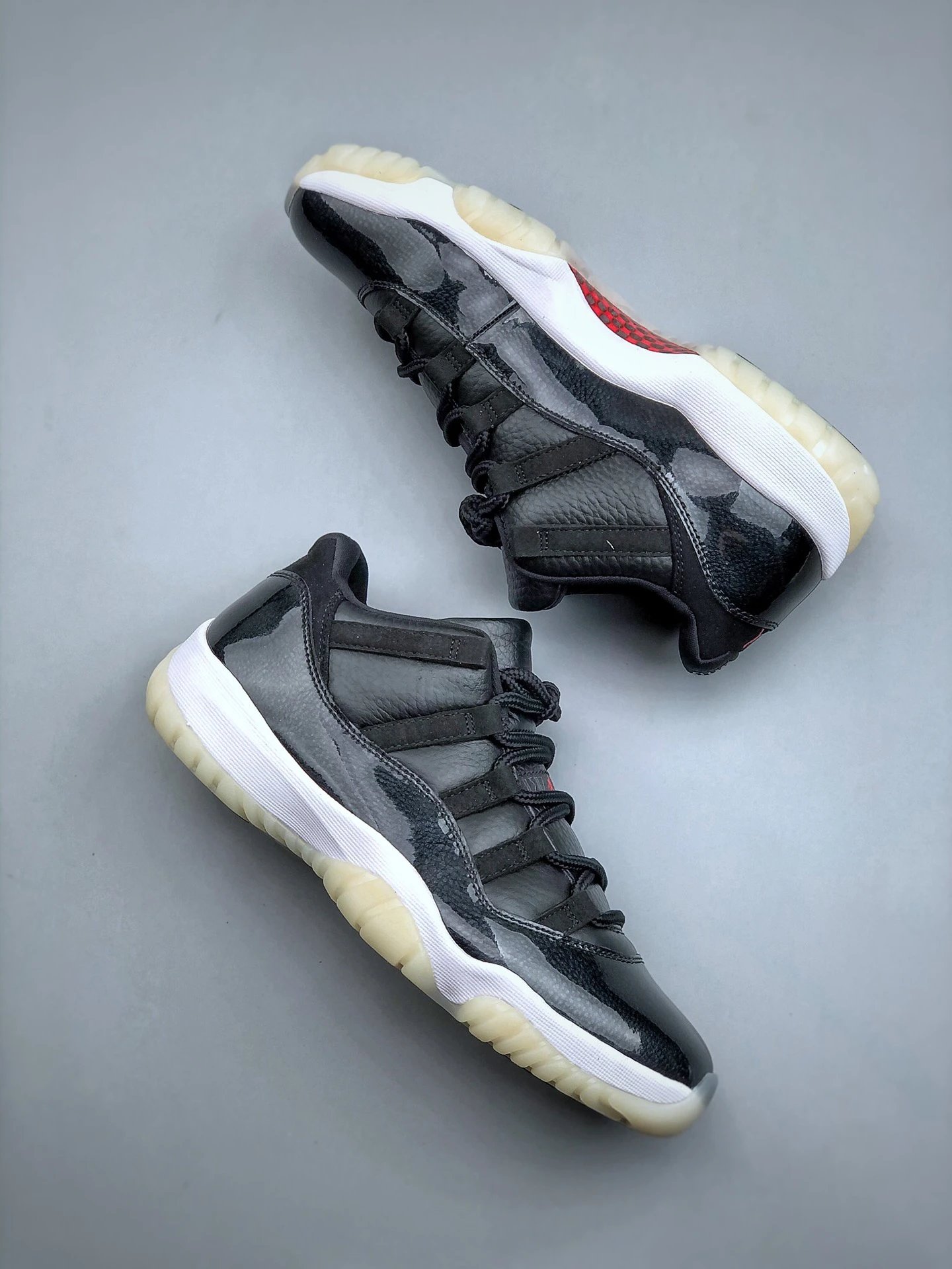 Columbia Air 11 Retro Low Basketball Shoes use premium suede & patent leather upper, original carbon fiber cushioning midsole.