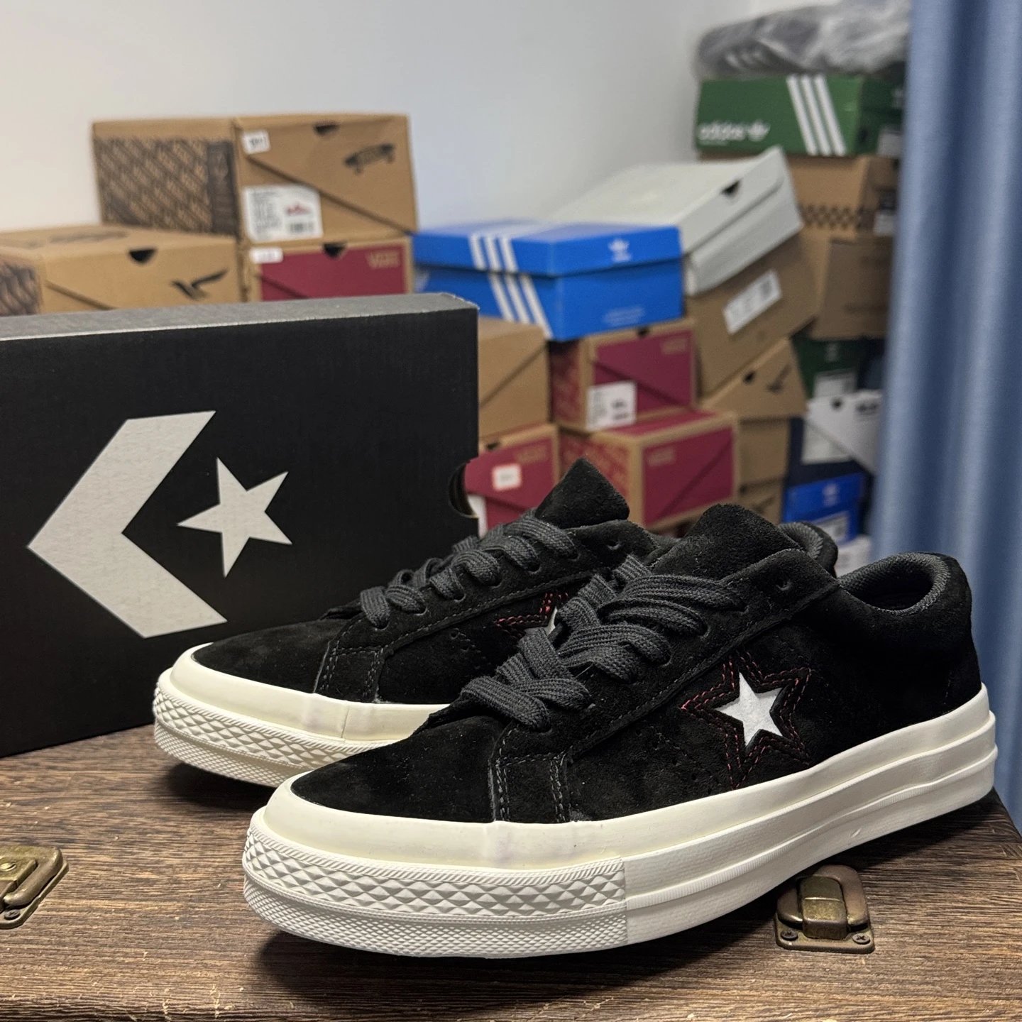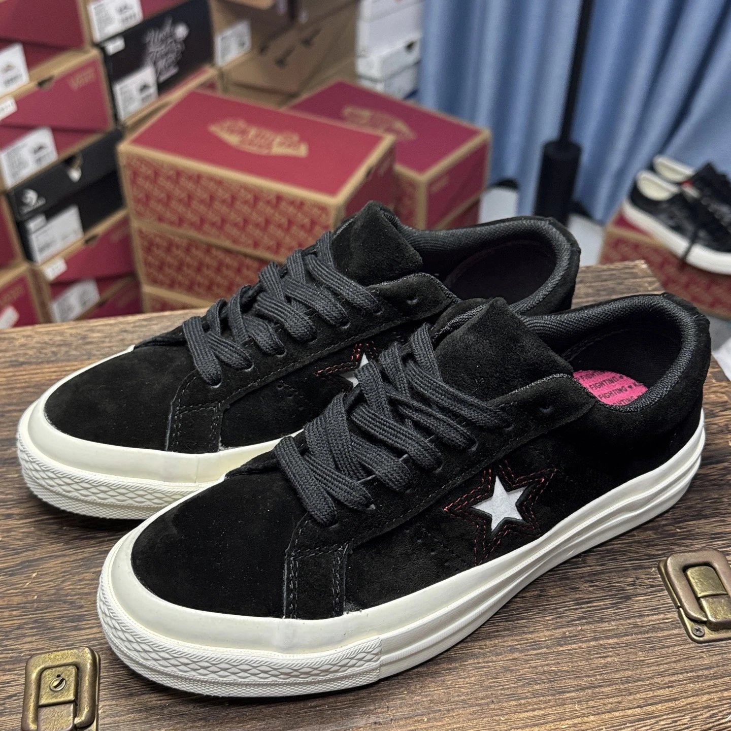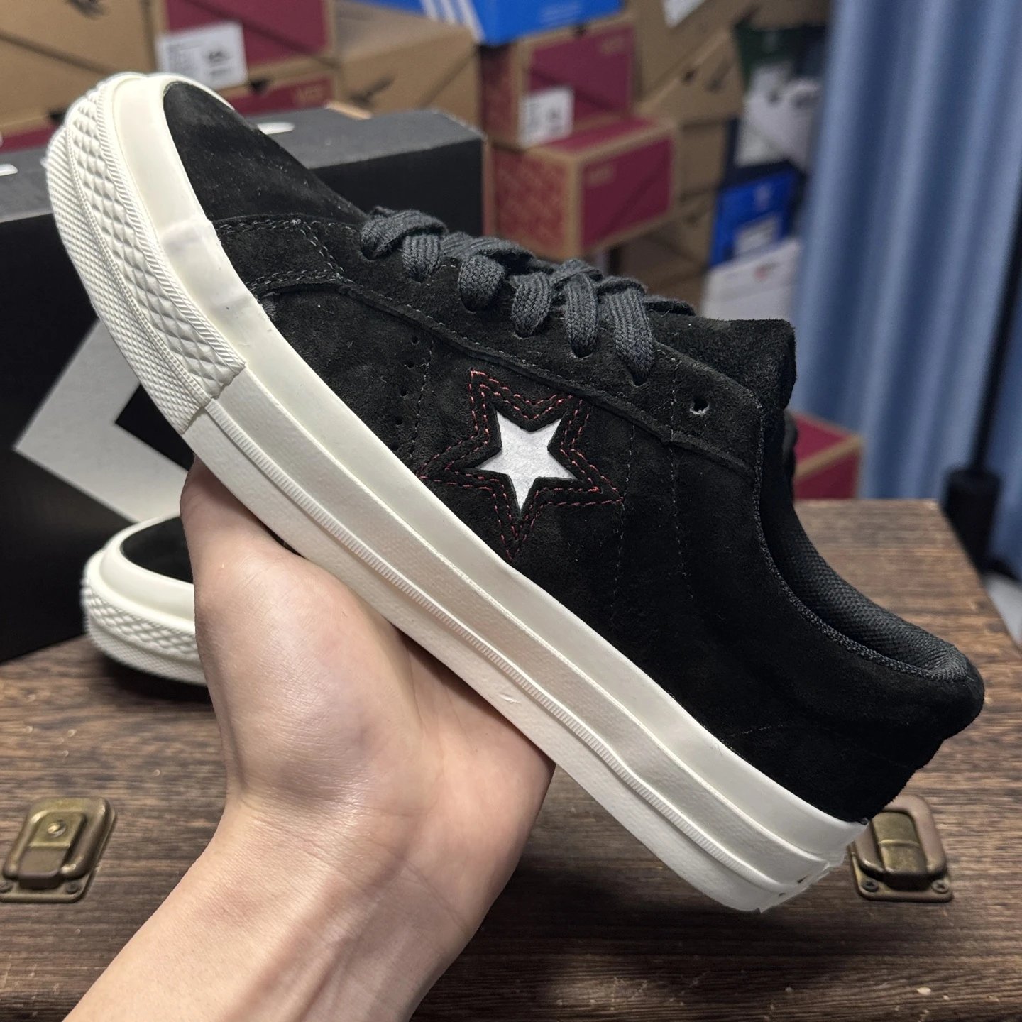 Converse ONE STAR sneakers use top vulcanization process, made of suede in black, low-top style, Valentine's Day limited edition.