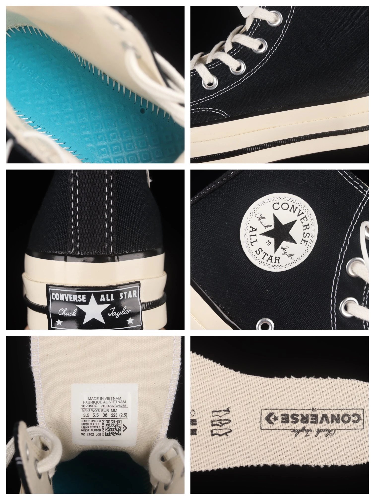 Converse 1970s classic high-top vulcanized casual shoes feature original last, factory fabric, double foxing, and official-matching outsole.