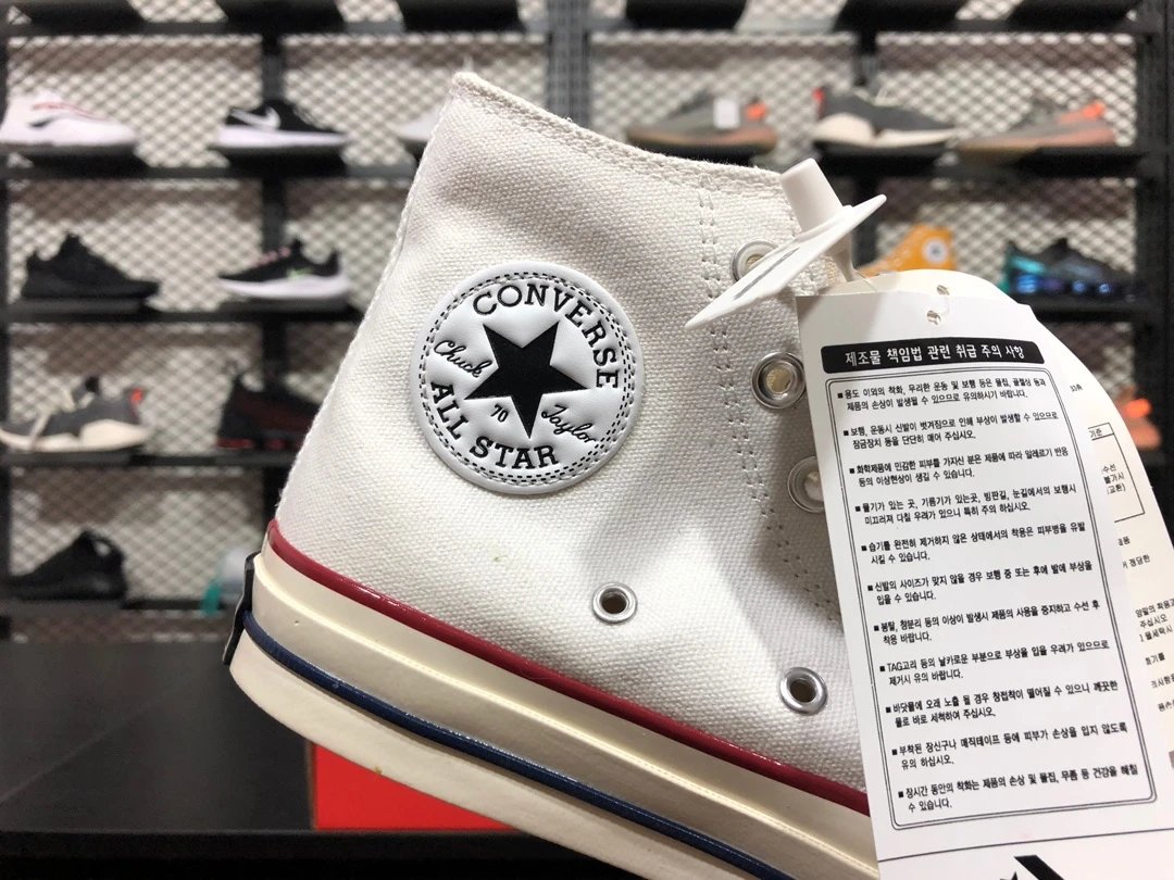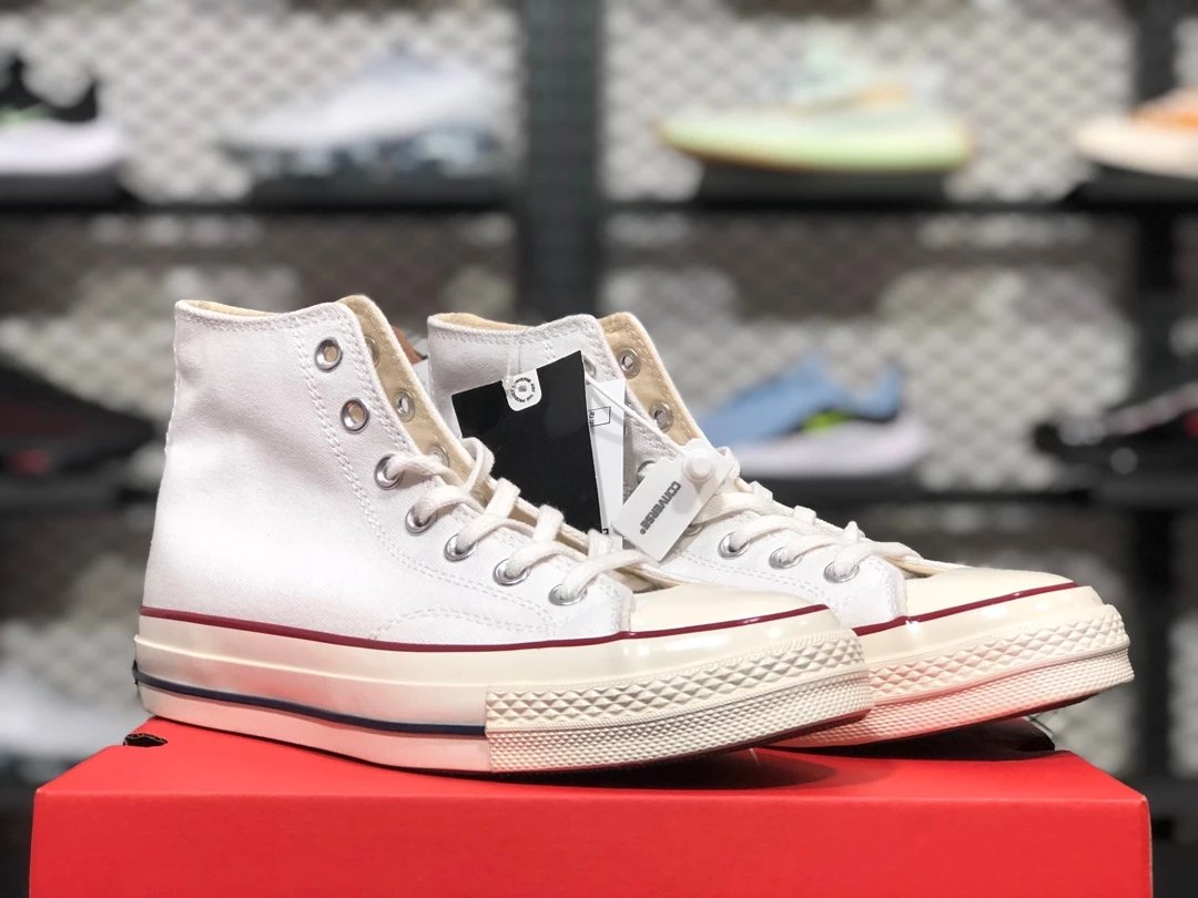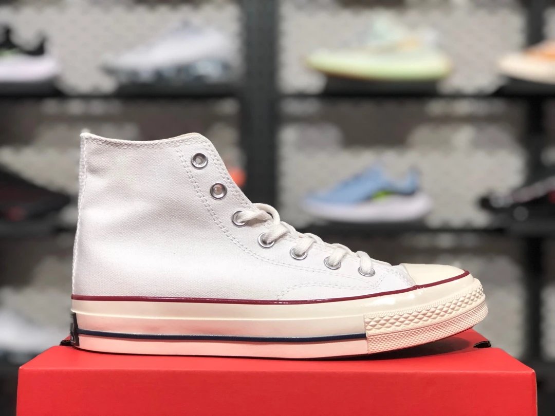 Converse All Star 1970s White High-Top Canvas Shoes feature authentic design with correct silicon blue midsole.