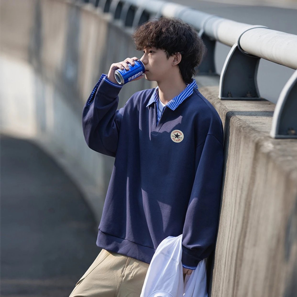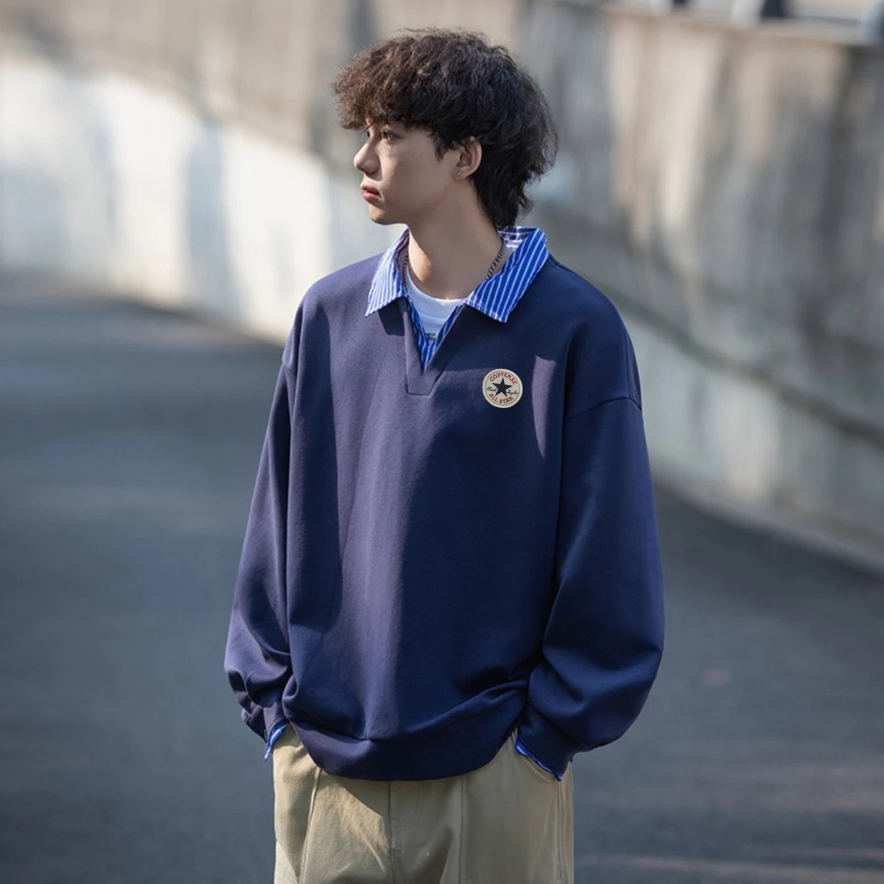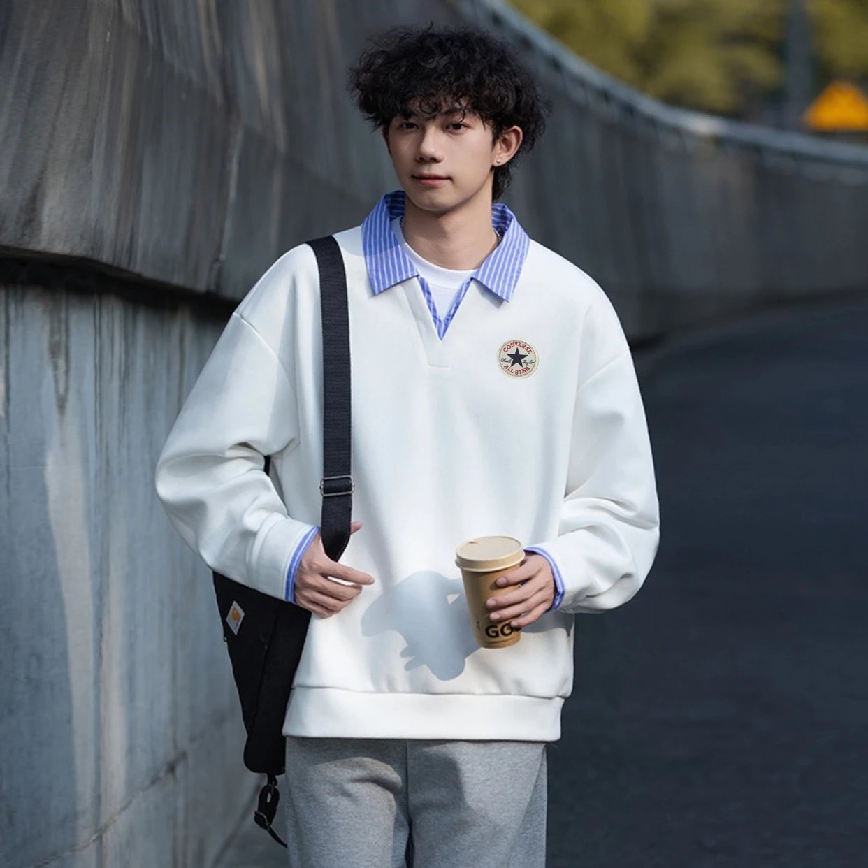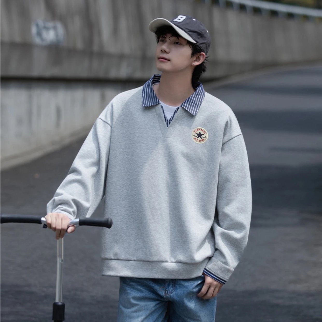 Youthful campus style, unisex, great for couples. Colors: white, gray, navy blue.