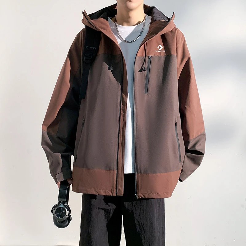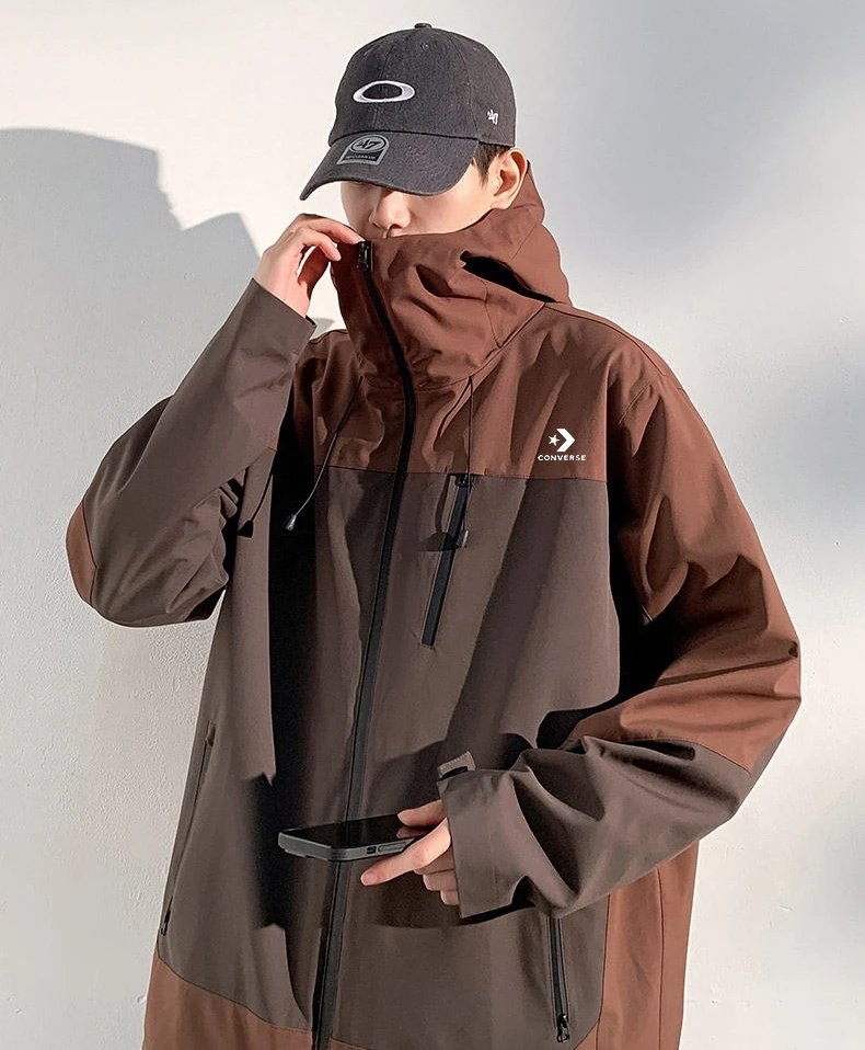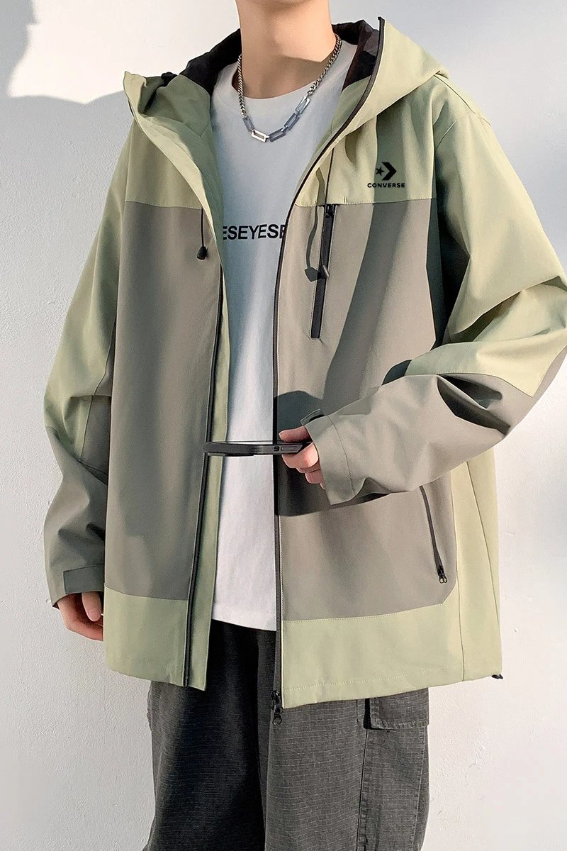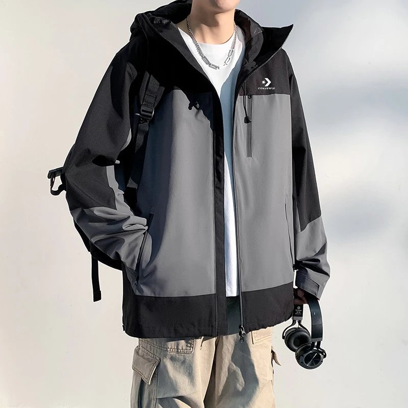 Converse Spring New Arrival: Waterproof Hooded Spliced Unisex T-Shirt with strong windproof, classic logo, breathable & anti-static, ideal for outdoor adventures.