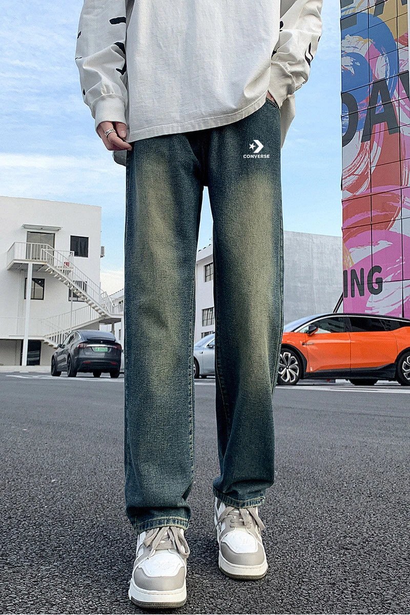 Converse Mid-Gray Jeans have a complex sand-washed finish with low saturation, making each unique.