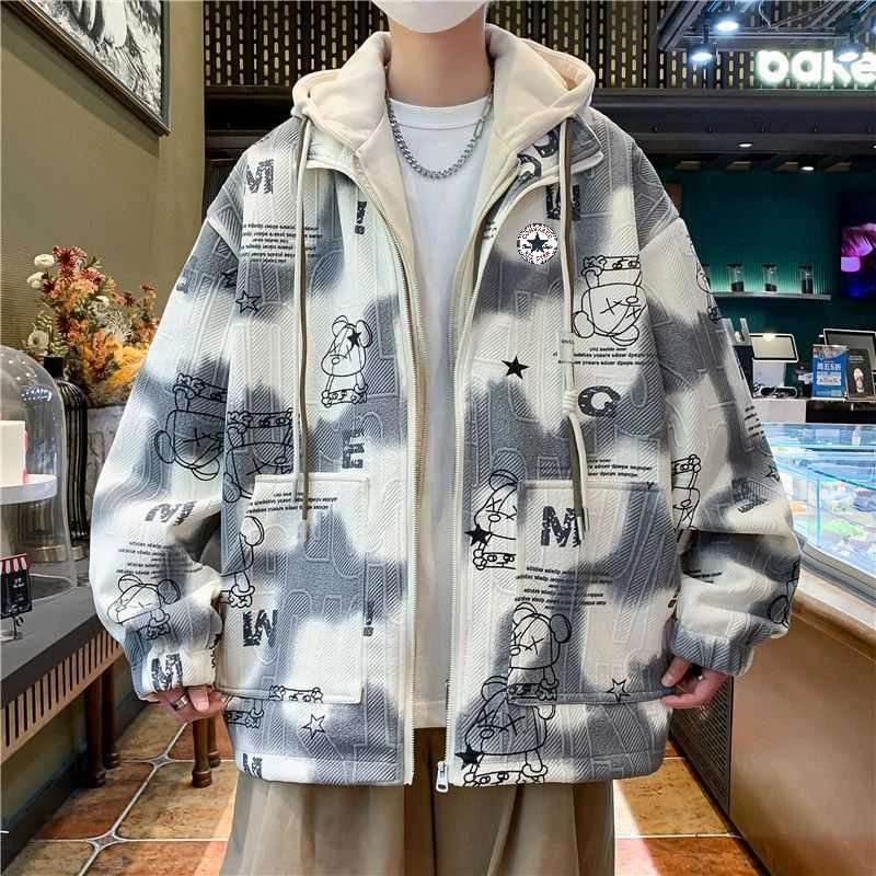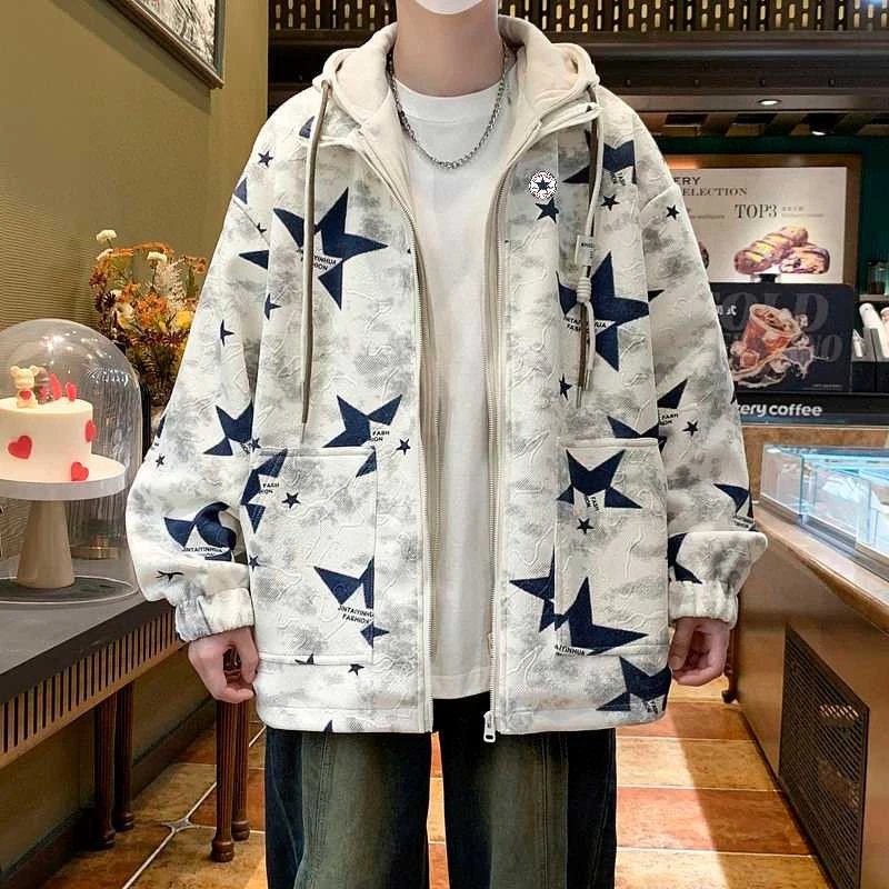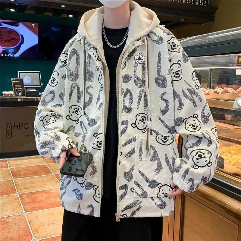 Converse Unisex Faux Two-Piece Hooded Jacket: spring/autumn new, thickened, star ink patterns, classic logo, windproof & warm.