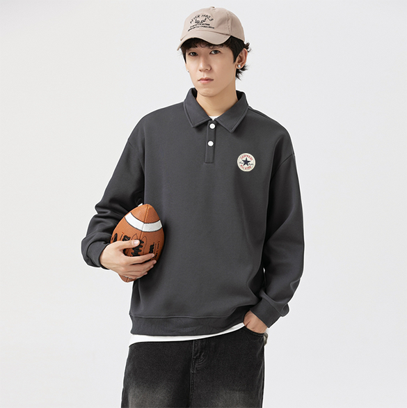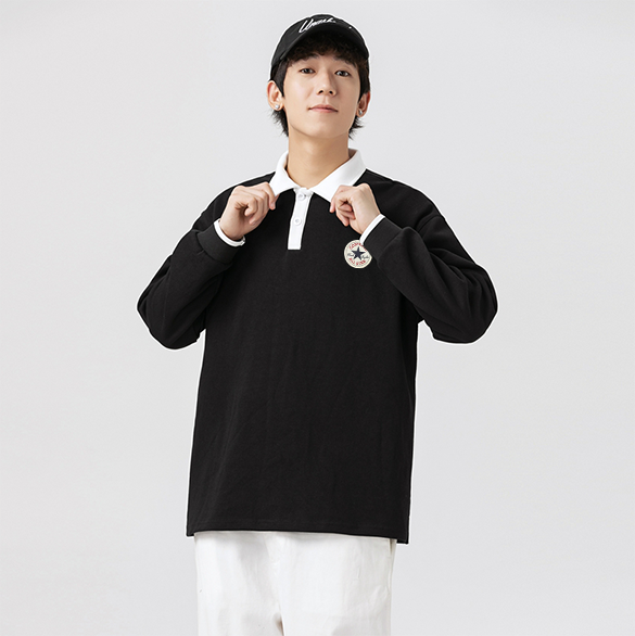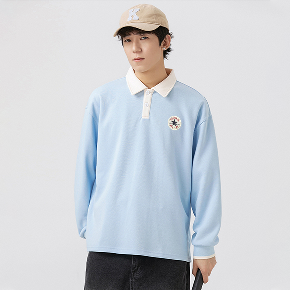 Colorblock design + chest patch, unisex fit perfect for couples.