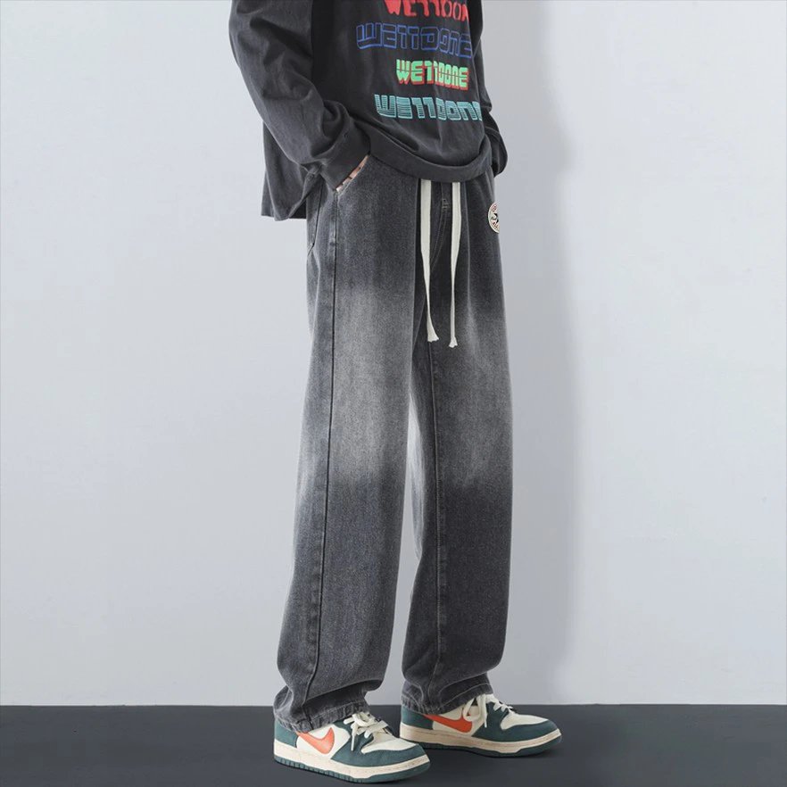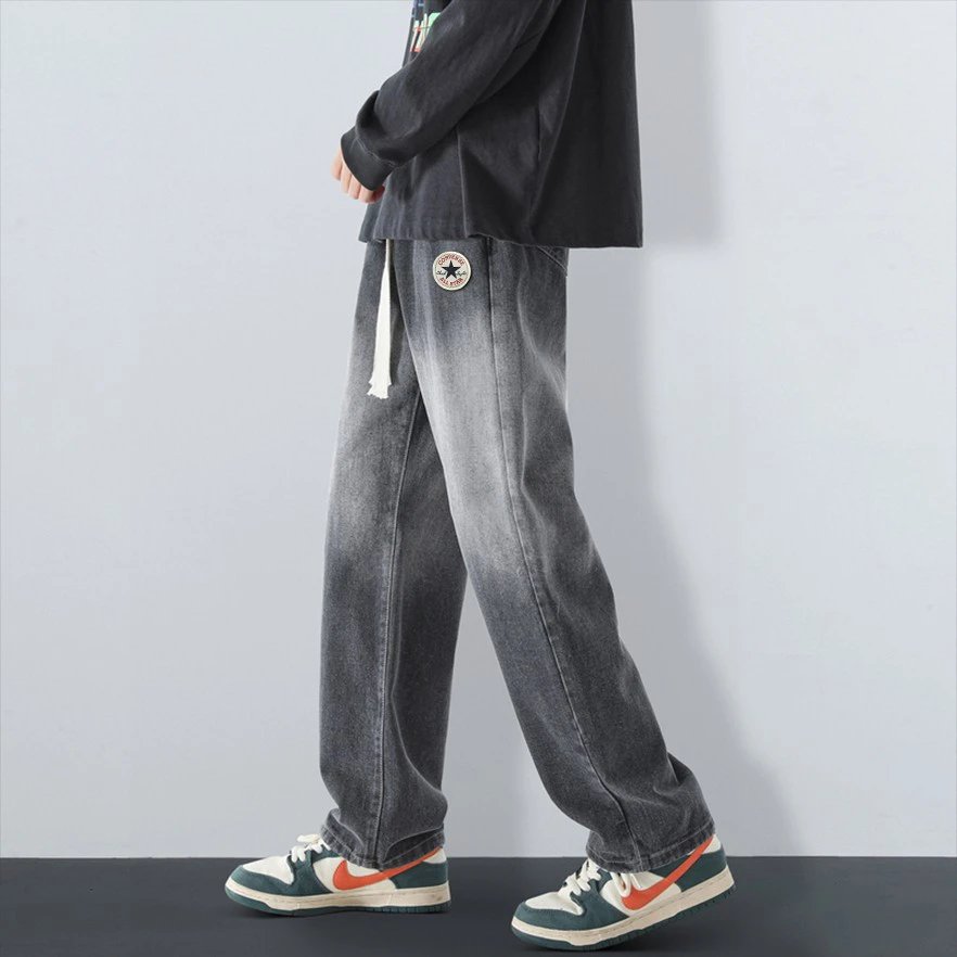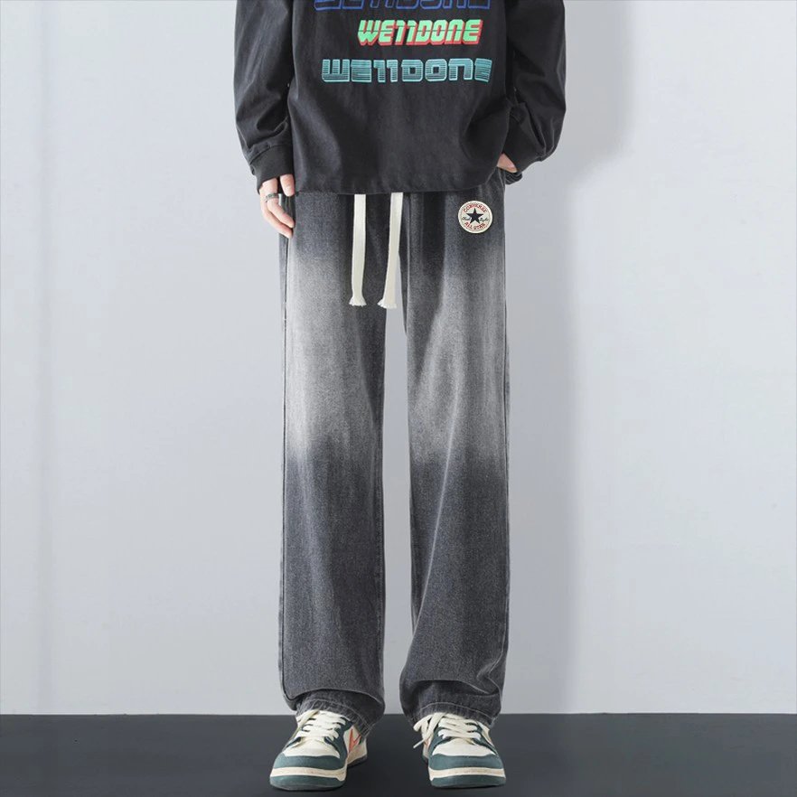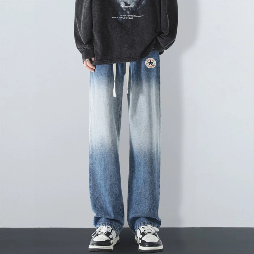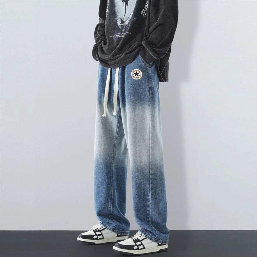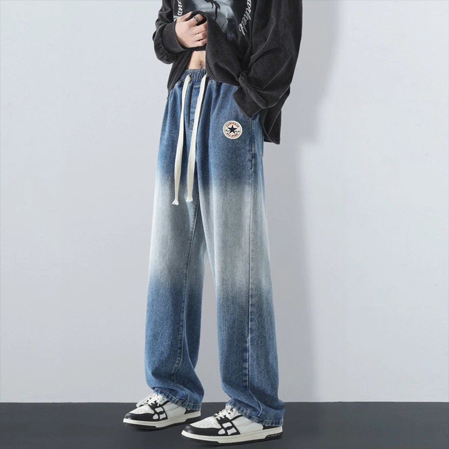 Converse American Street Gradient Straight Pants: gradient wash, logo patch, elastic waist, loose versatile style for men & women.
