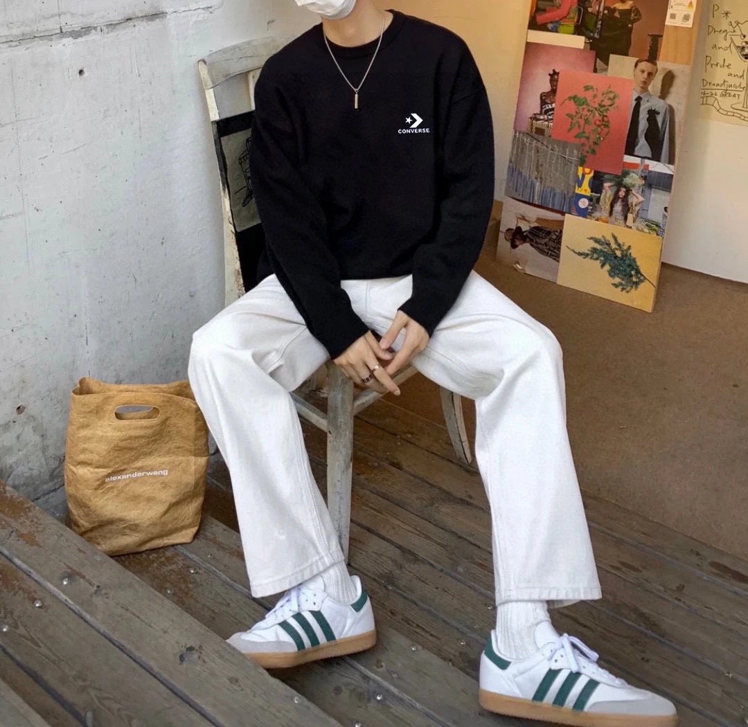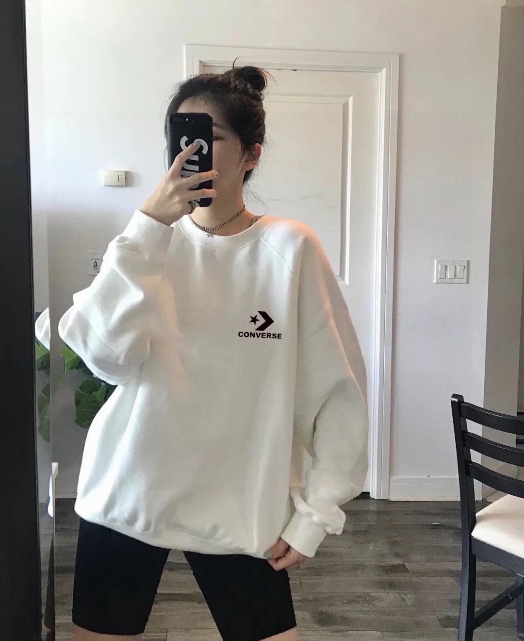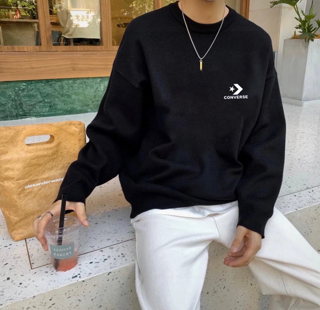 Converse Unisex Basic Crew Neck Sweatshirts feature the brand's logo, ideal for couples.