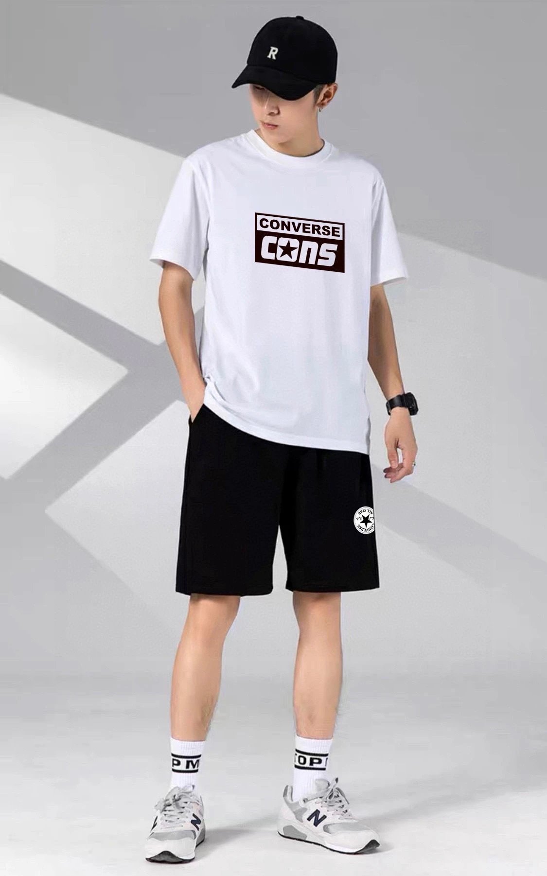 T-shirt: 100% cotton, breathable, soft (Black/White).