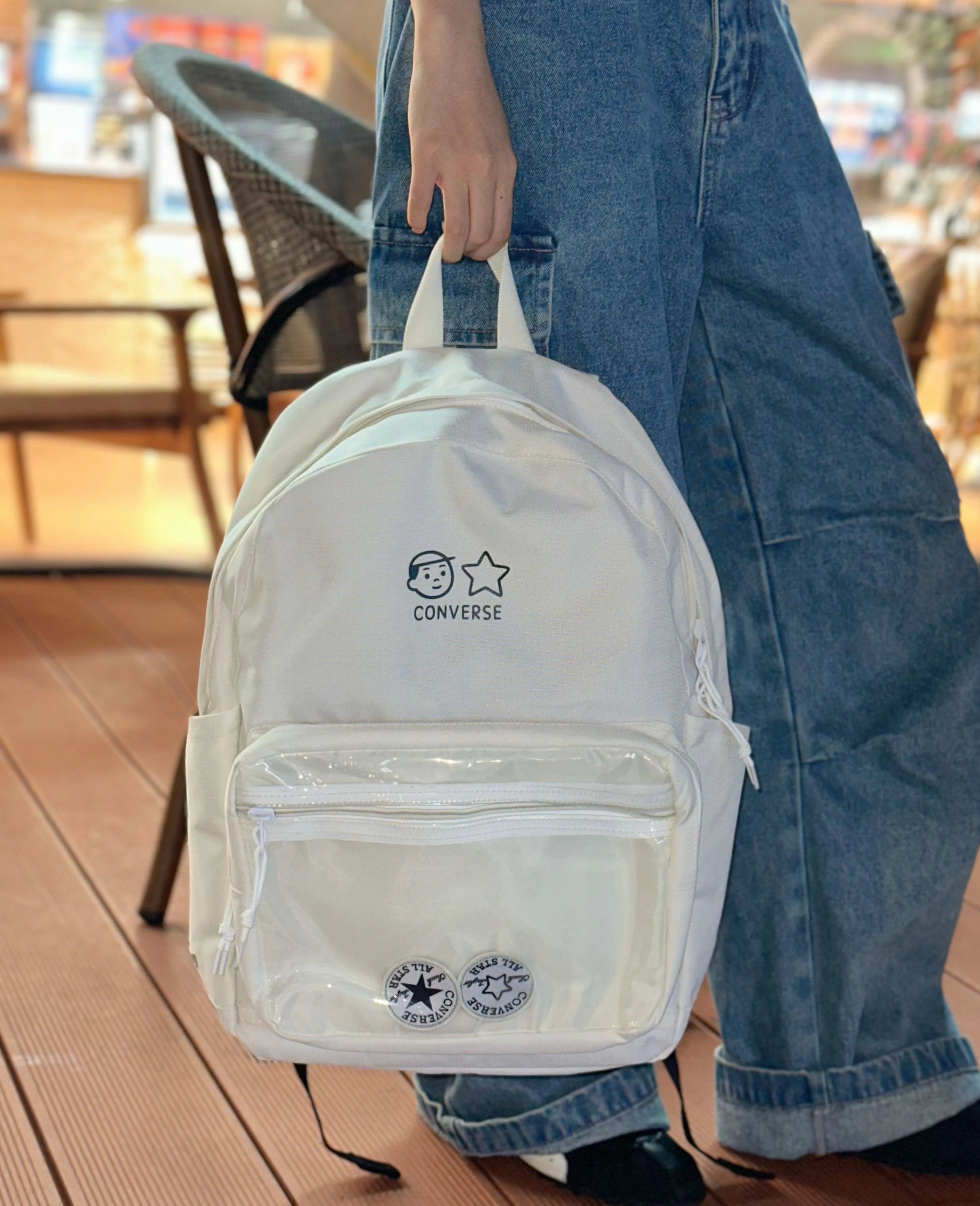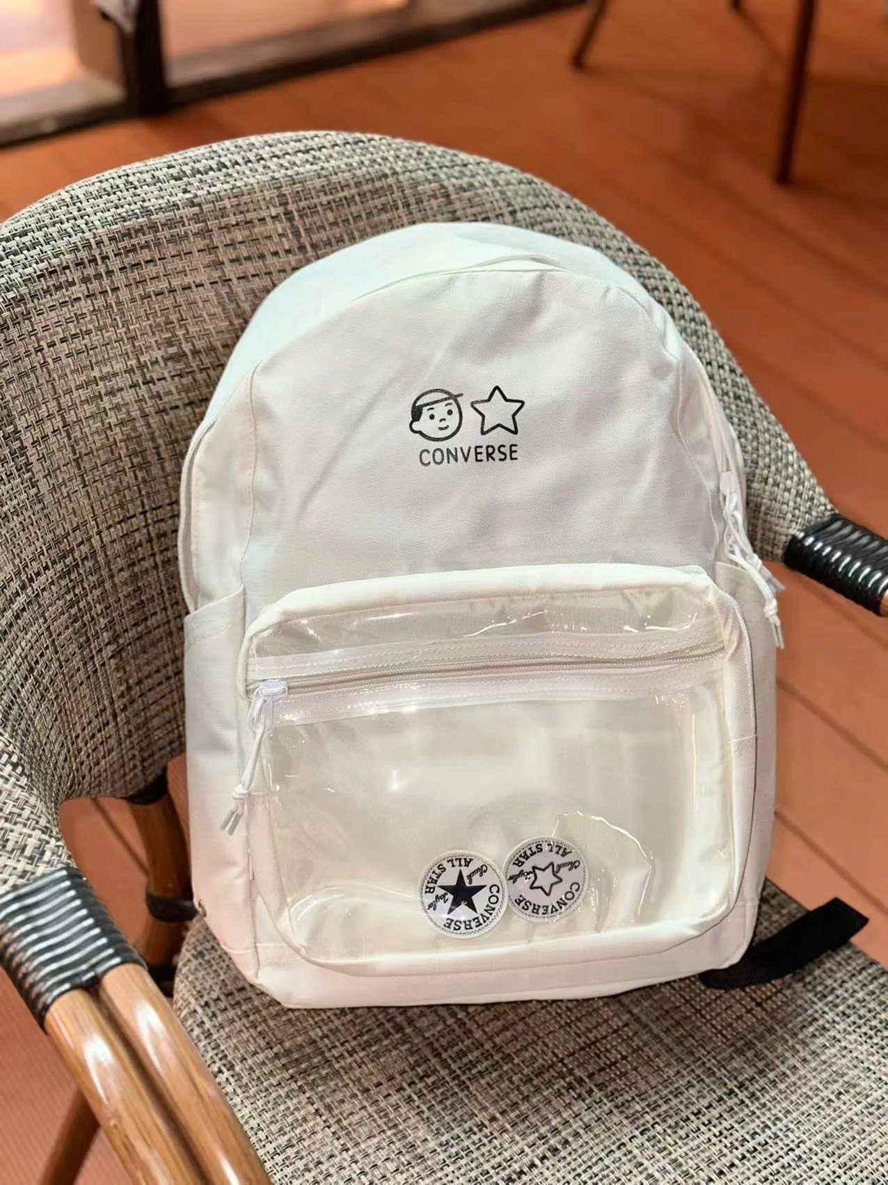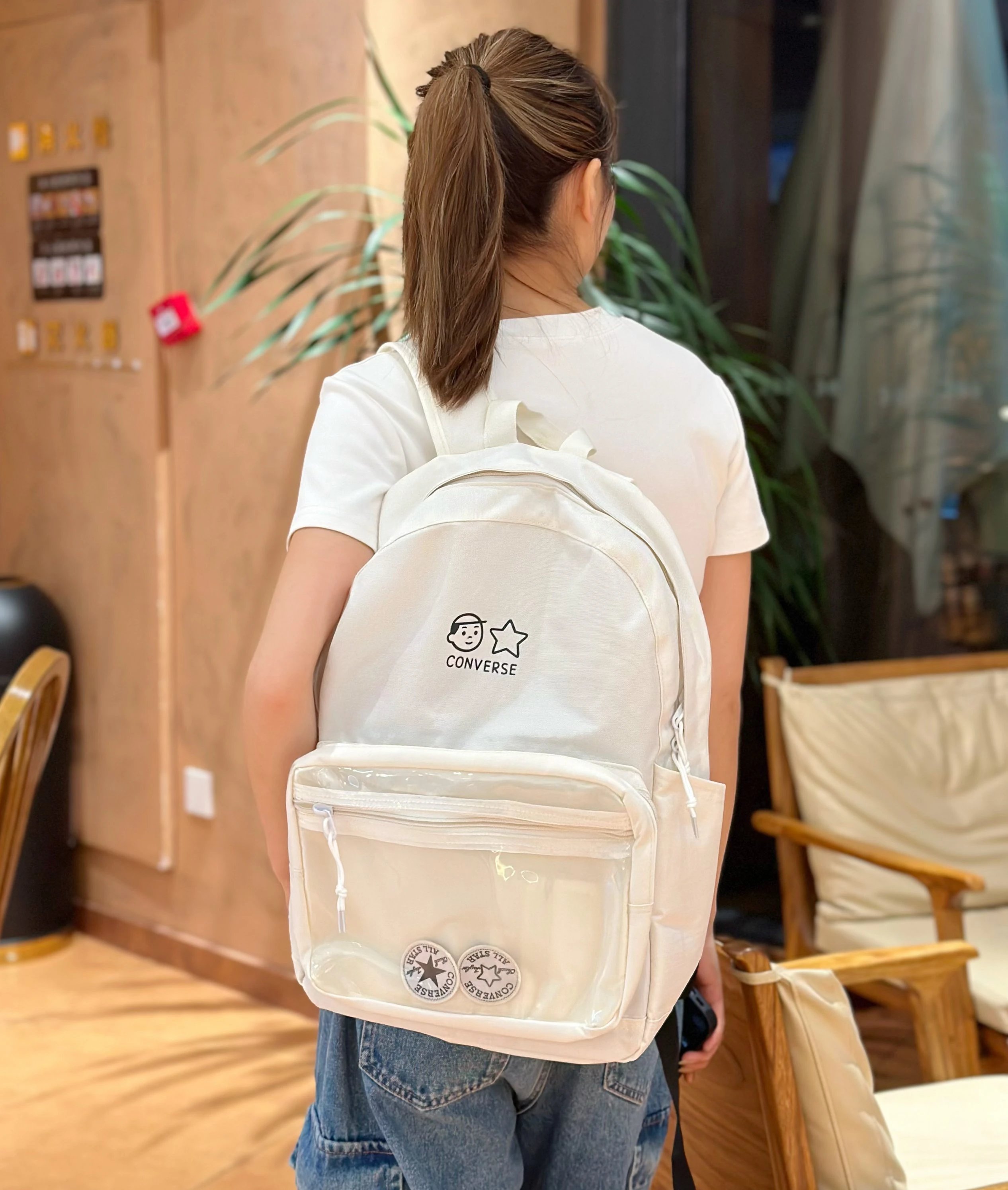 Converse Cartoon Hand-drawn Transparent Tote Backpack is a perfect student bag.
