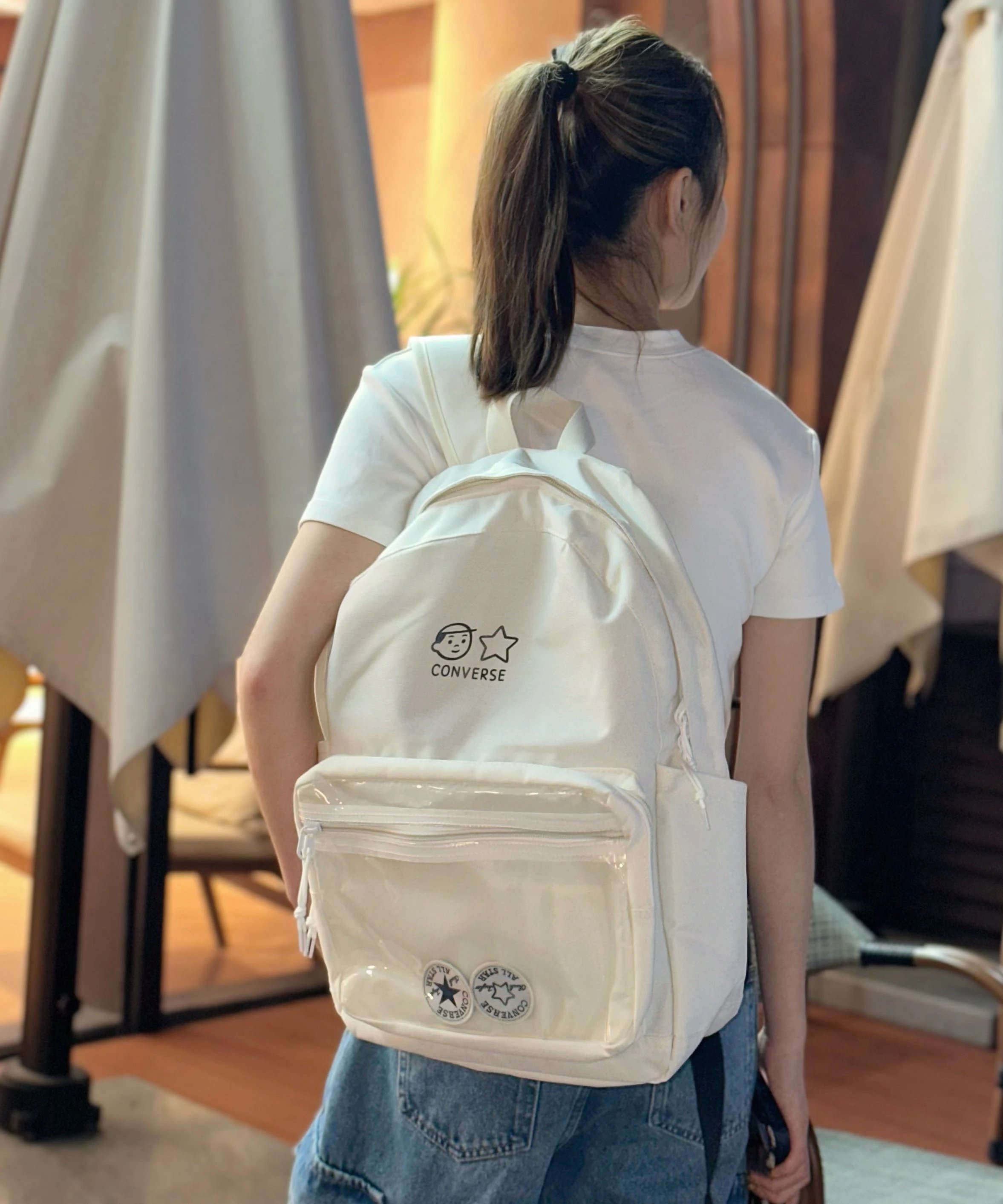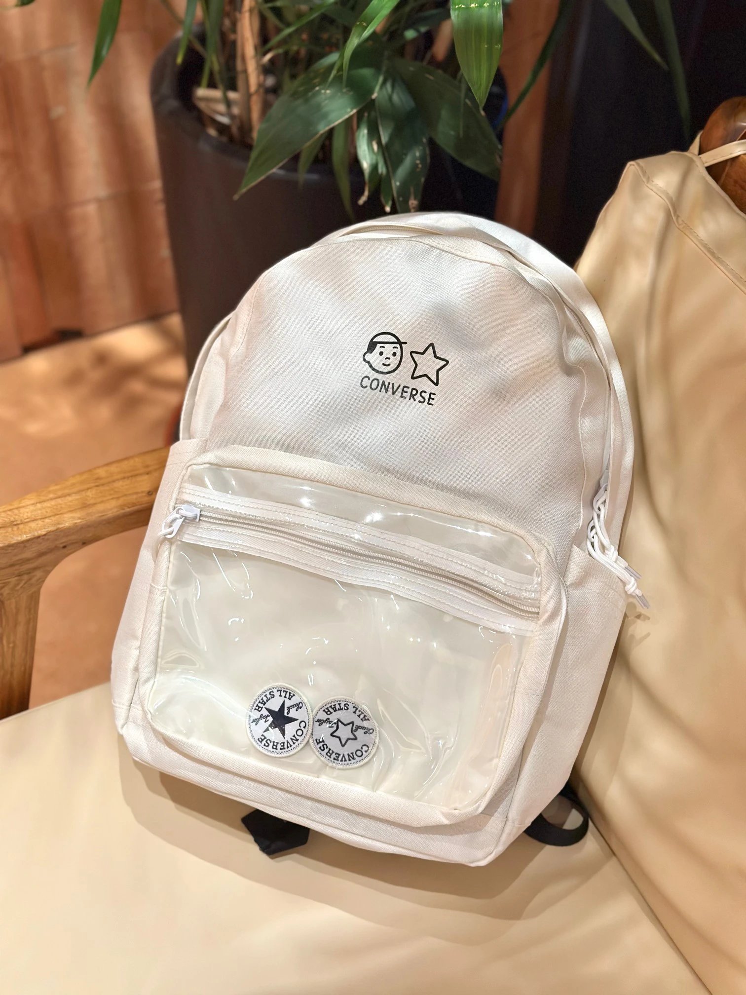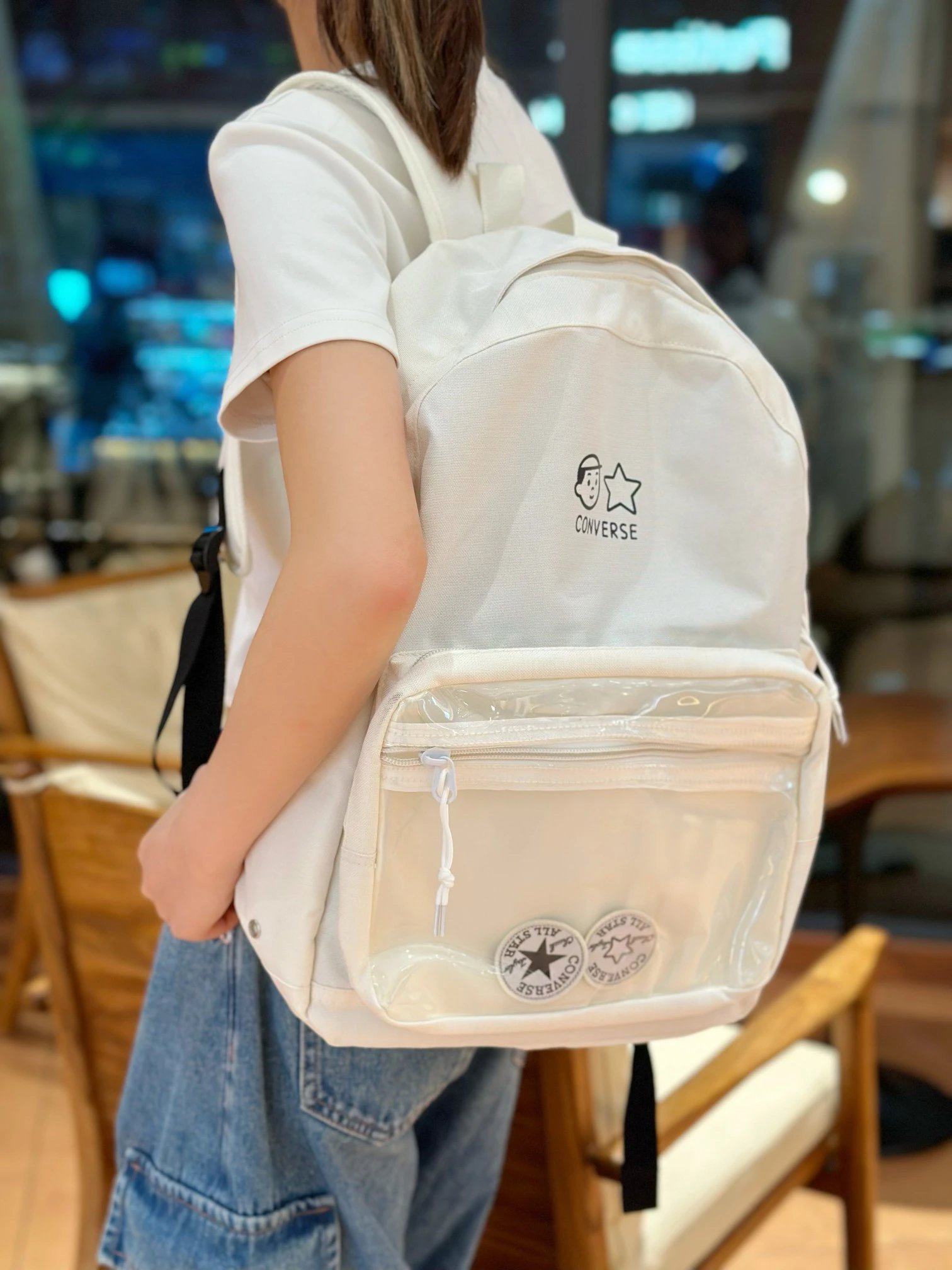 Converse Cartoon Hand-drawn Transparent Tote Backpack is a perfect student bag.