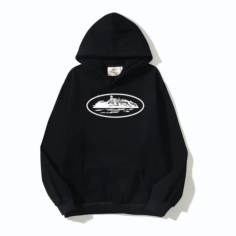 Corteiz Devil's Island fleece-lined hoodie for men, with American street hip-hop print. Loose fit, ideal for autumn & winter. Note size/color when ordering. More styles via WeChat ID oamc88 (style 284).