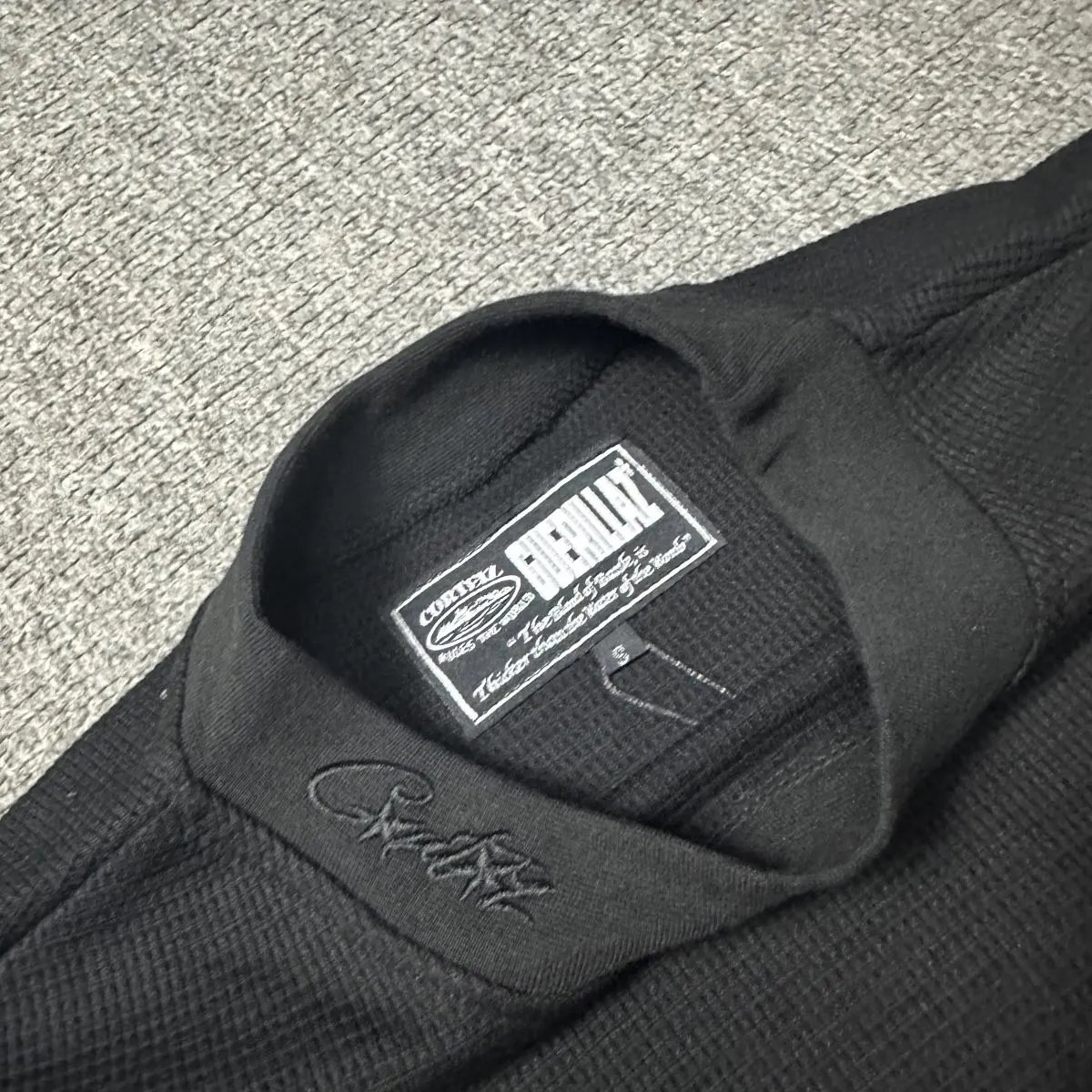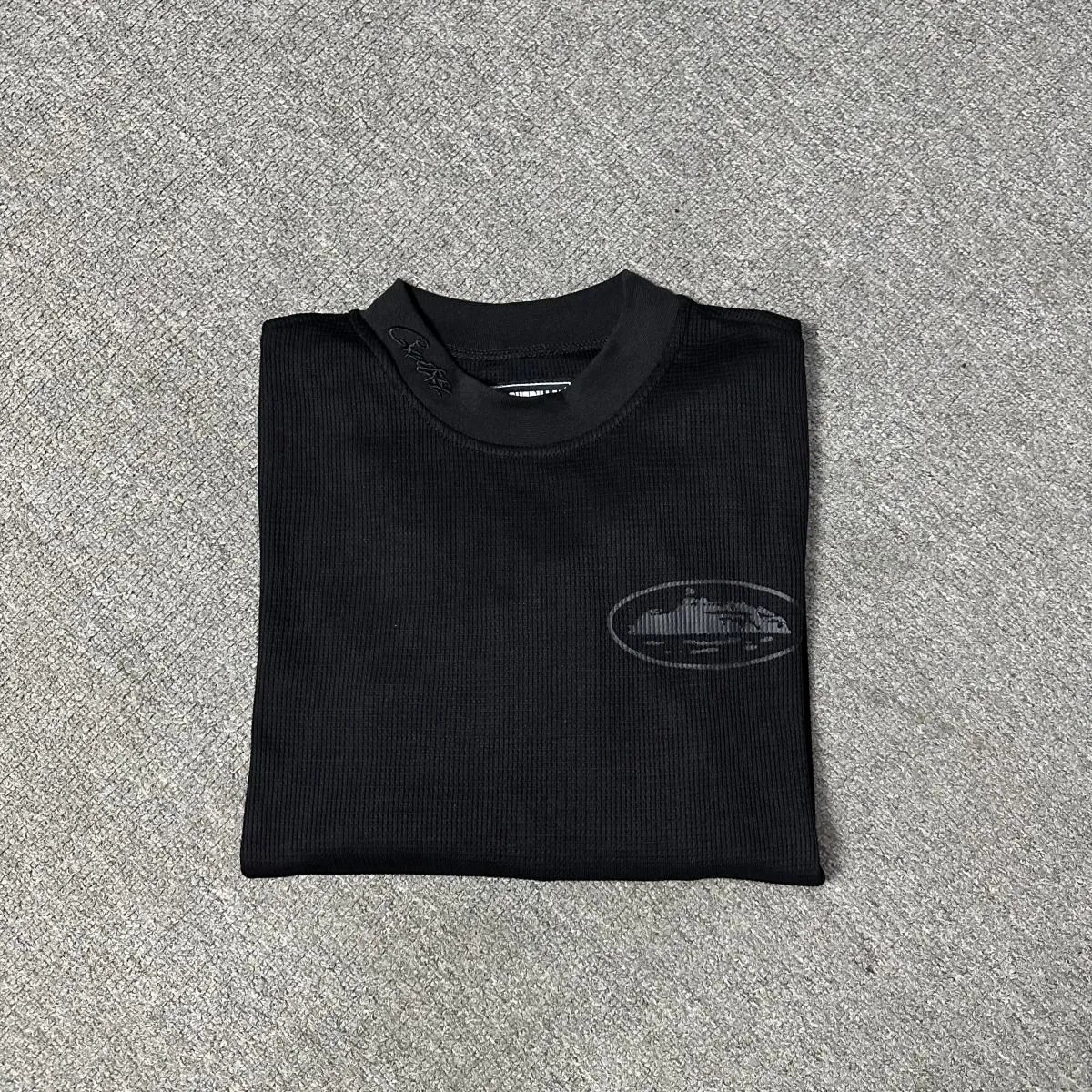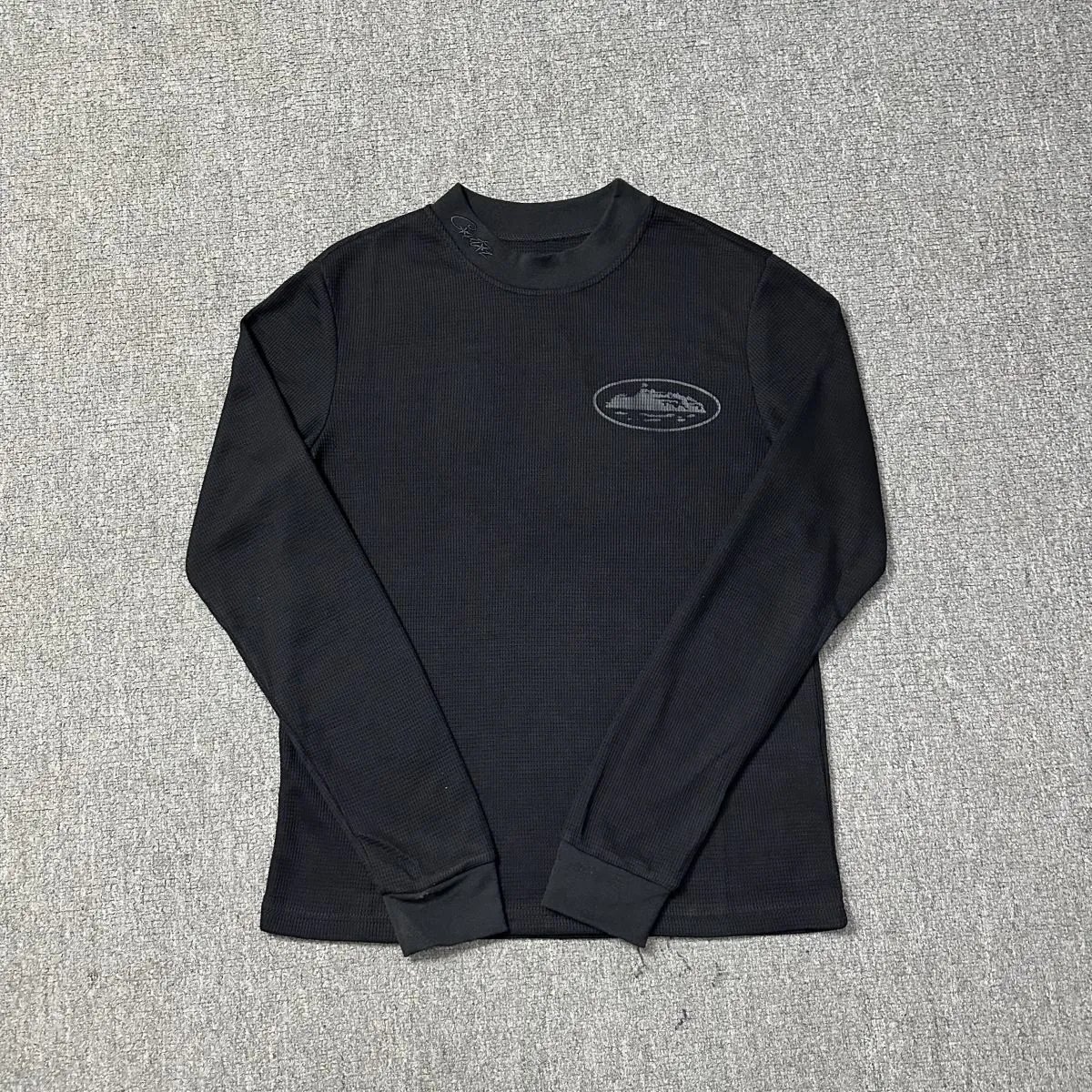 Corteiz Allblack Waffle Long Sleeves T-Shirt is available. For color/size notes or more styles, contact WeChat ID bestreps 733.
