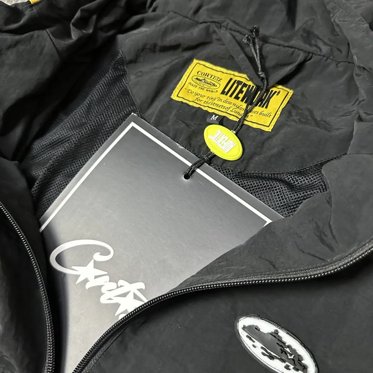 Corteiz Black & Gold Precision Windbreaker features meticulous details and full authentic accessories.