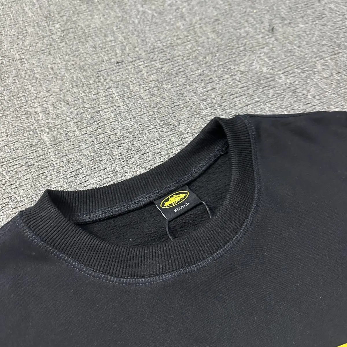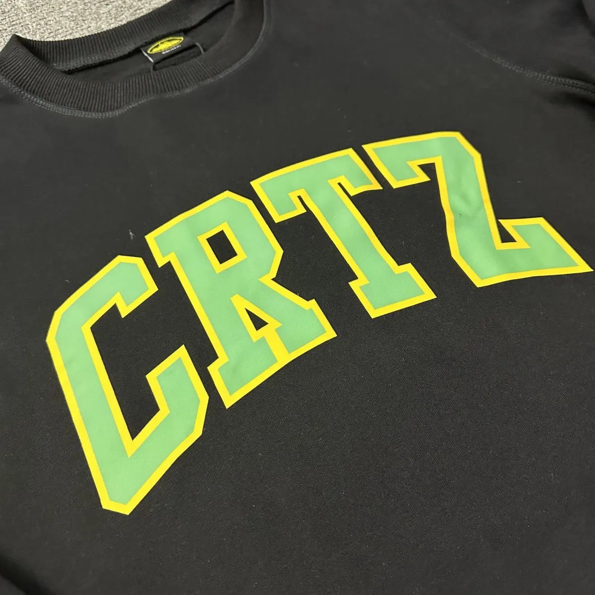 Corteiz Basic Crewneck Sweatshirt comes in Black Yellow, Black Purple, Black Green. Sizes: S, M, L, XL.