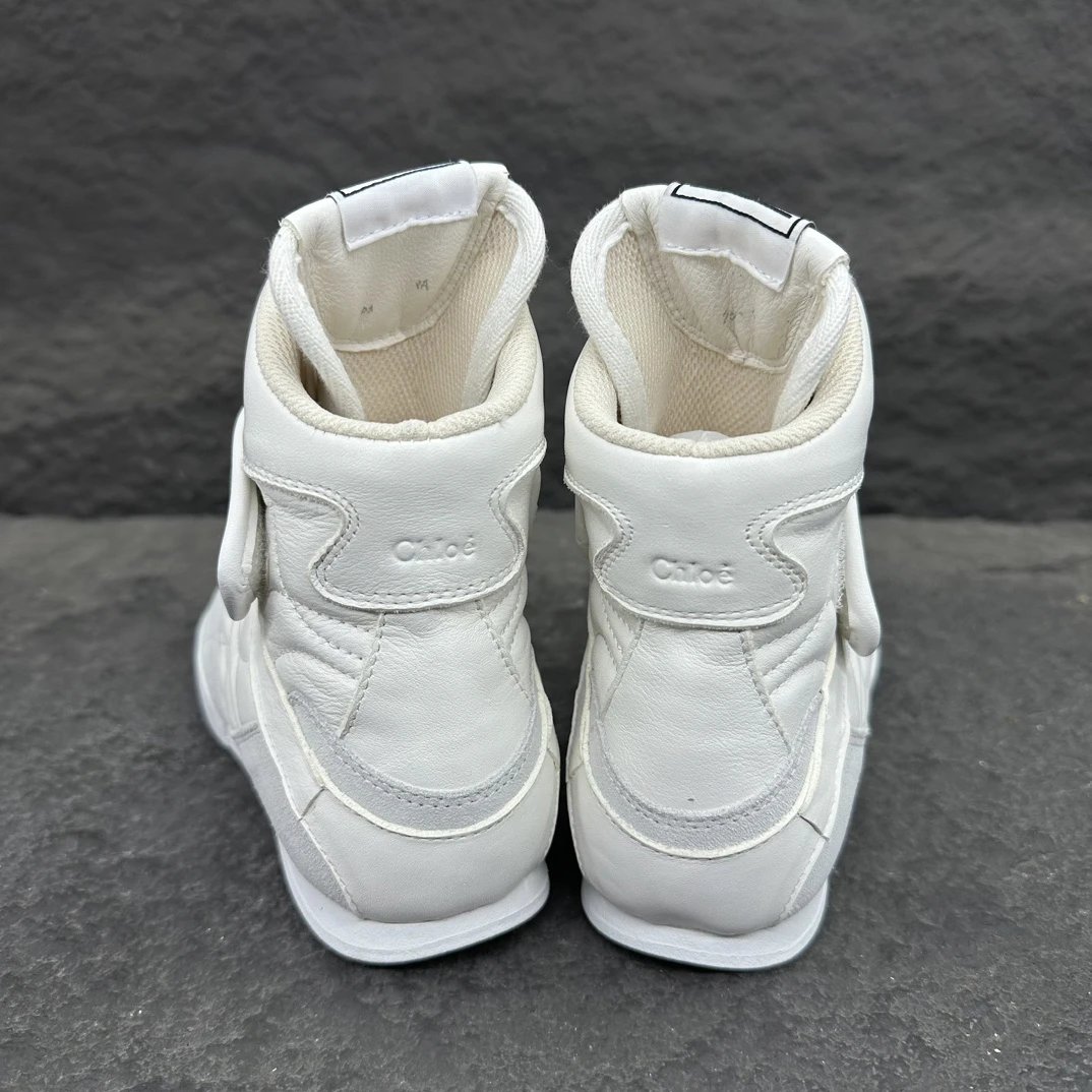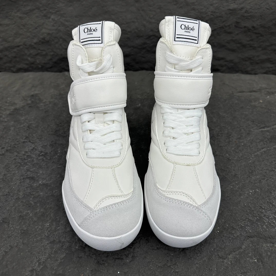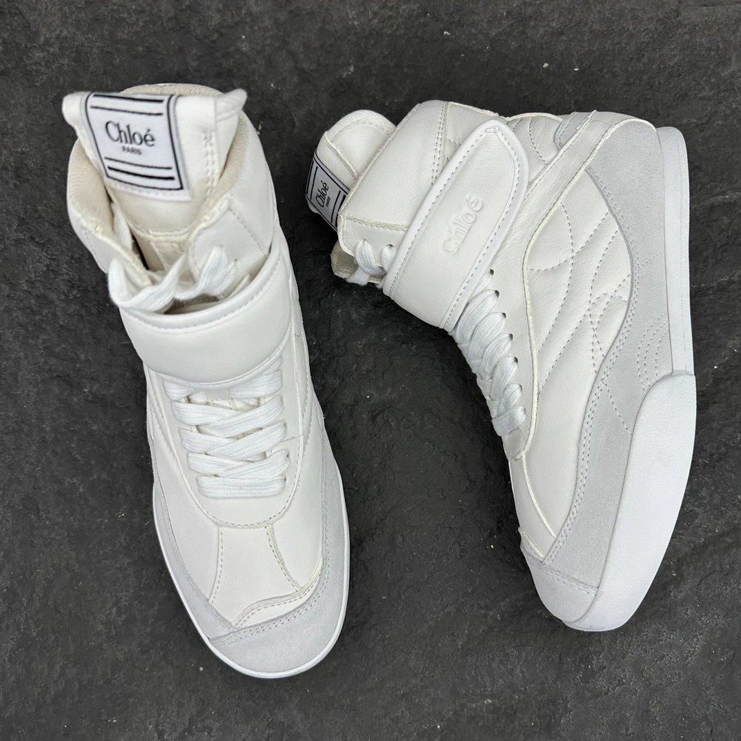 Chloé KI Women's High-Top Sneakers are crafted from mesh and smooth suede calfskin. Slim flat-toe design, wide leather laces with embossed Chloé logo.