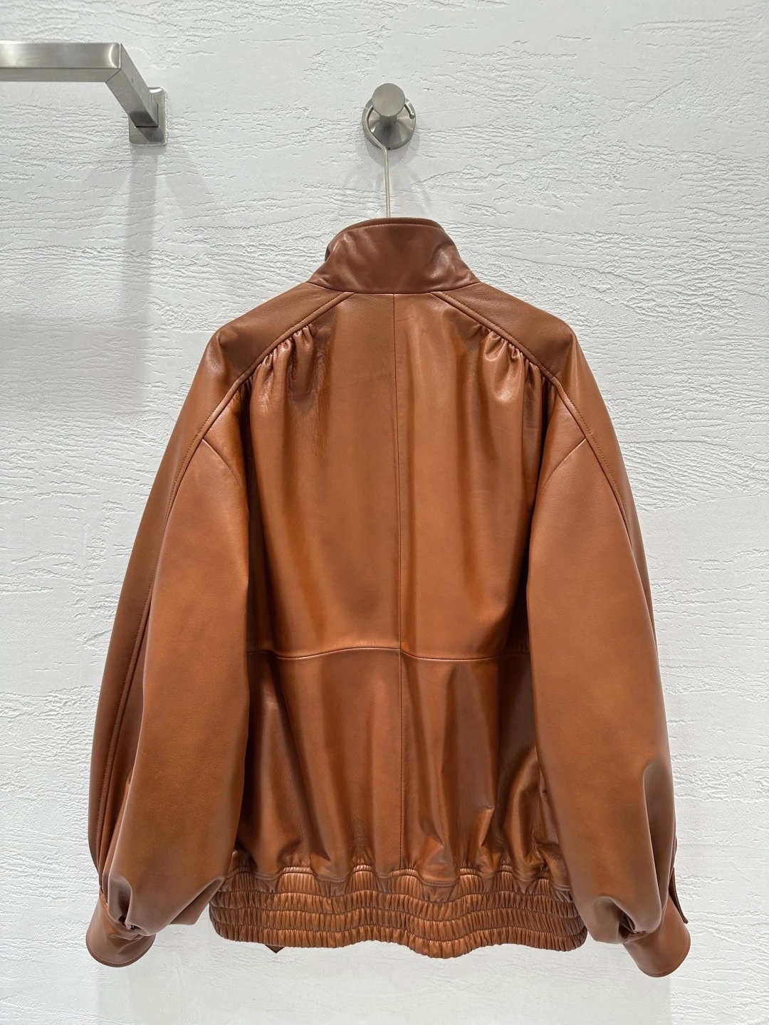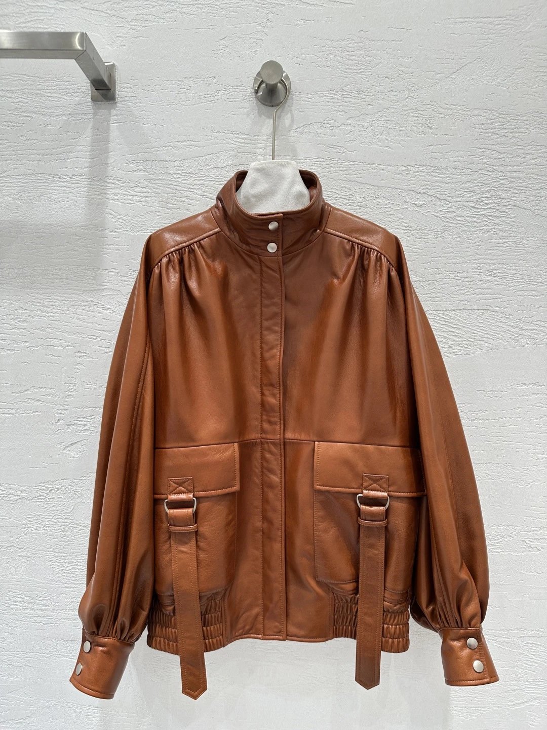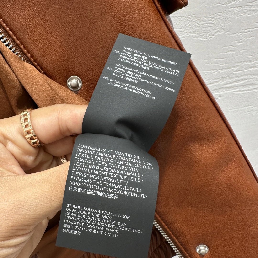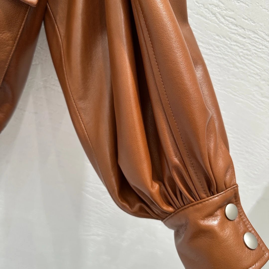 Chloe Exclusive High-End Original 25 Fall New Runway Jackets: Stand Collar & Pleated Design, 100% Sheepskin with Wax Finish, Sweet & Cool Style, Large Pockets, Flattering Fit, S/M/L Sizes, 2 Colors.