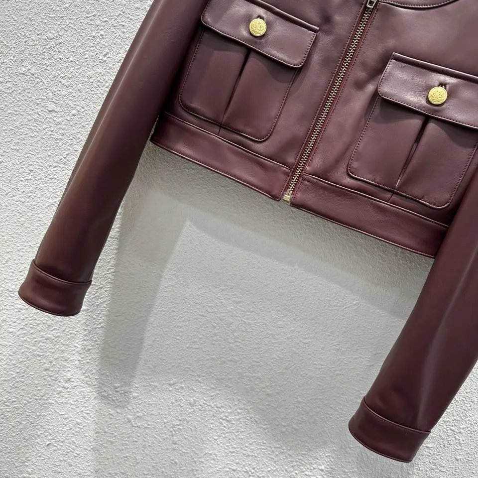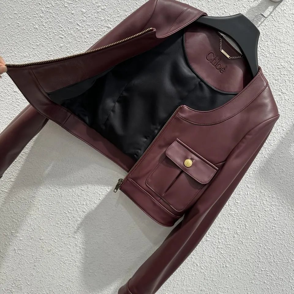Chloe Early Fall Retro Short Lambskin Jacket is an exclusive new arrival with high-end quality. Made of 100% imported lambskin, it features a stylish cropped silhouette, original hardware, and 3D logo embroidery.