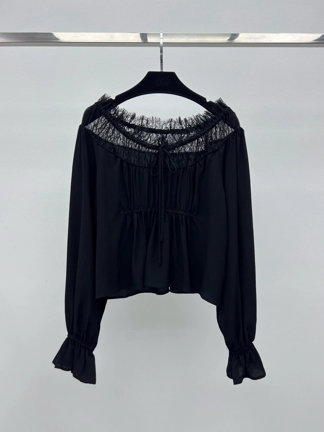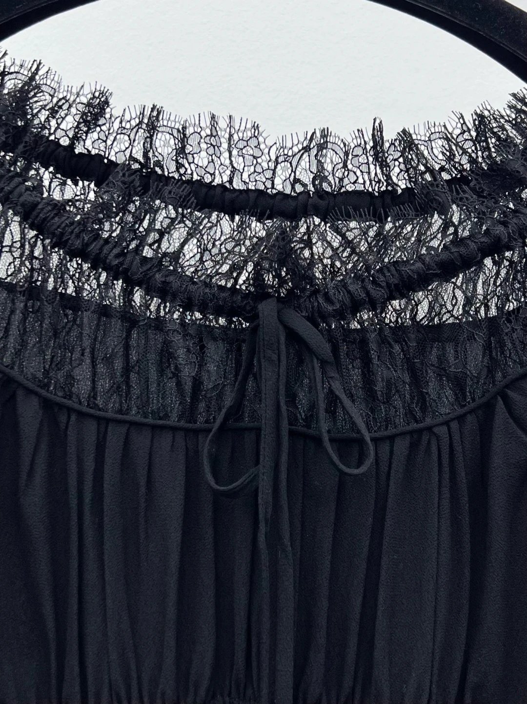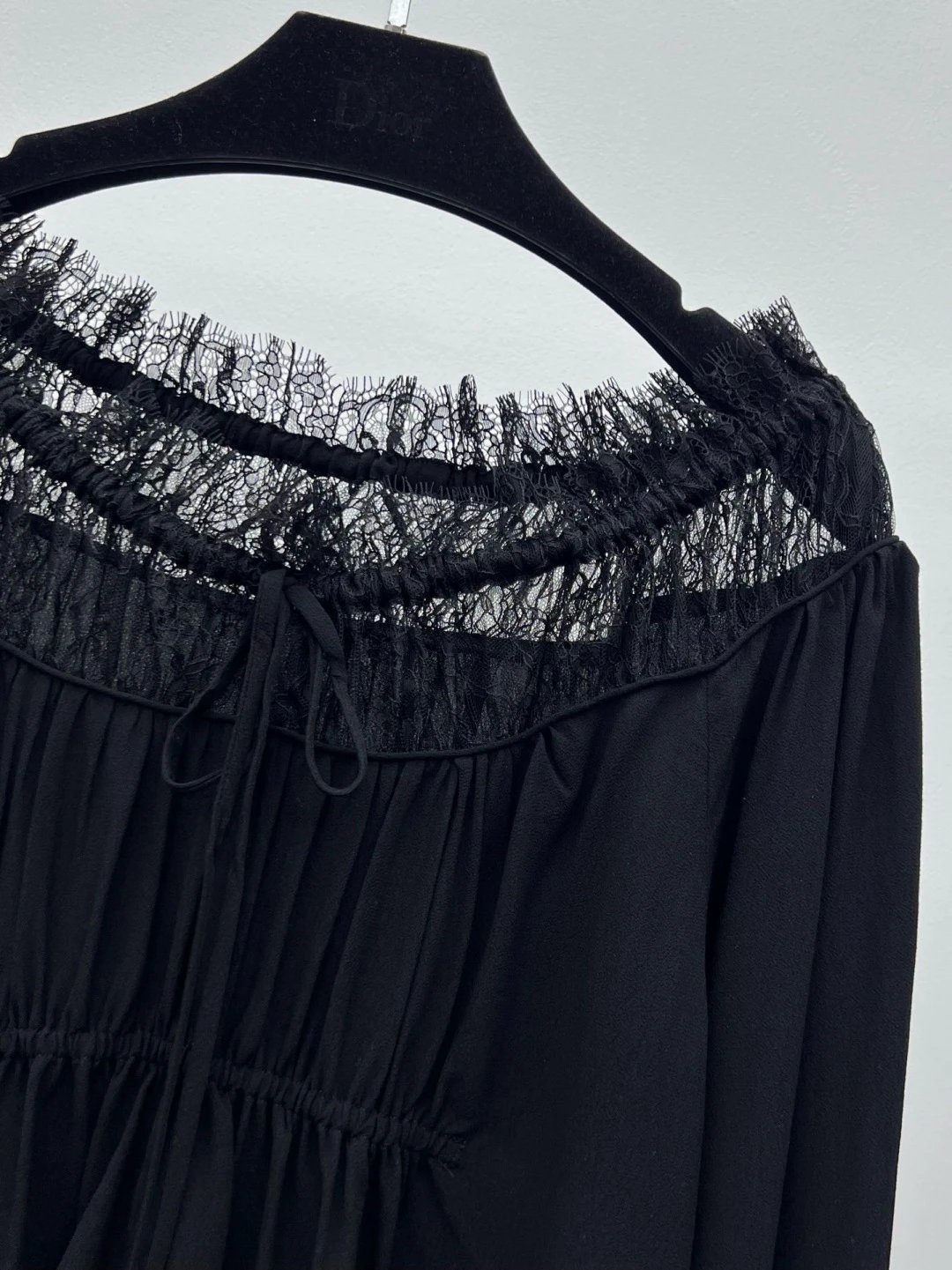 It features an adjustable drawstring lace neckline and pleats to flatter your figure.