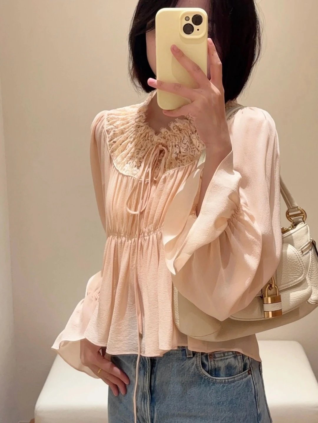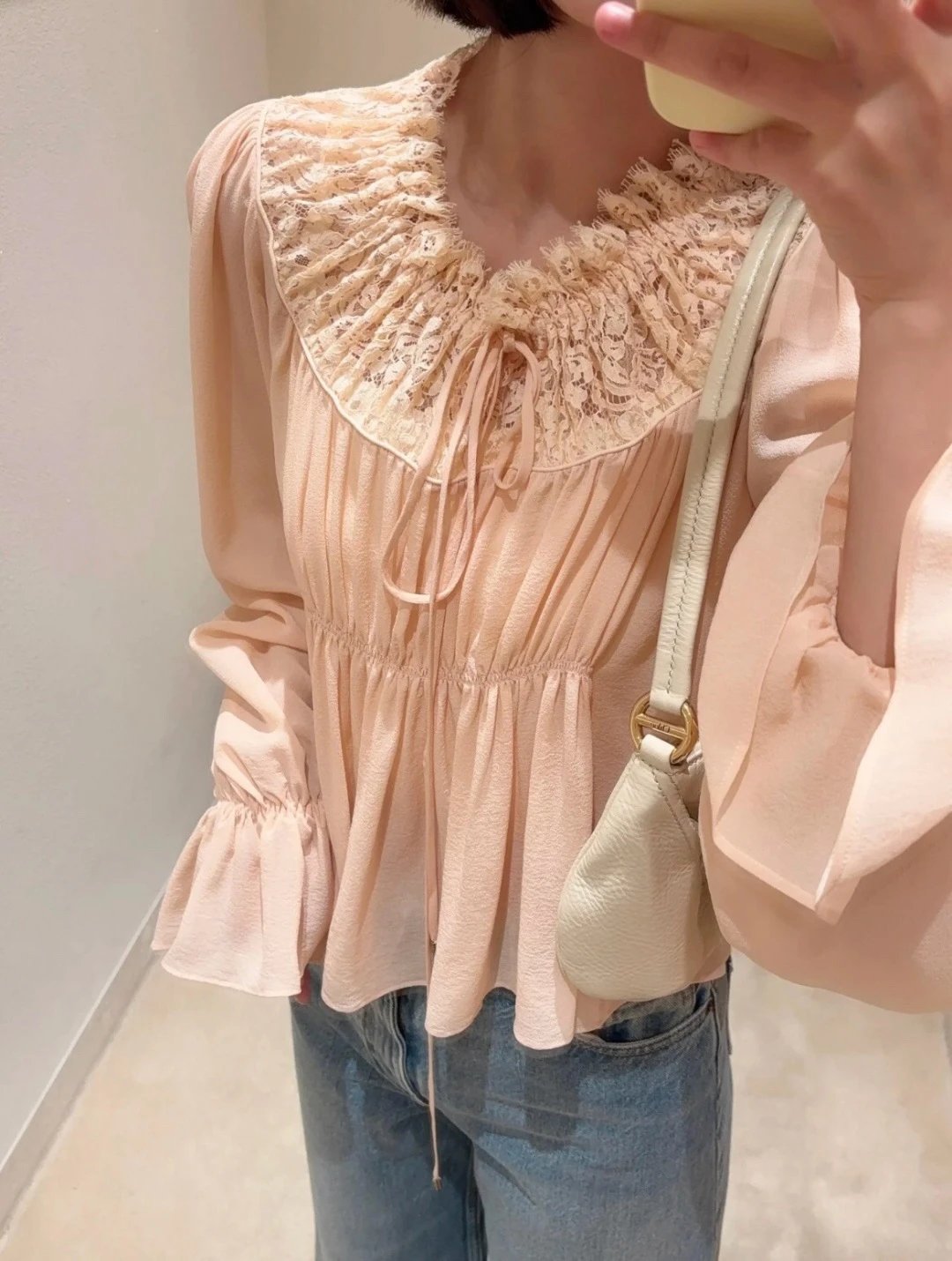 Chloe French Lace Panel Blouse is crafted from mixed crepe.