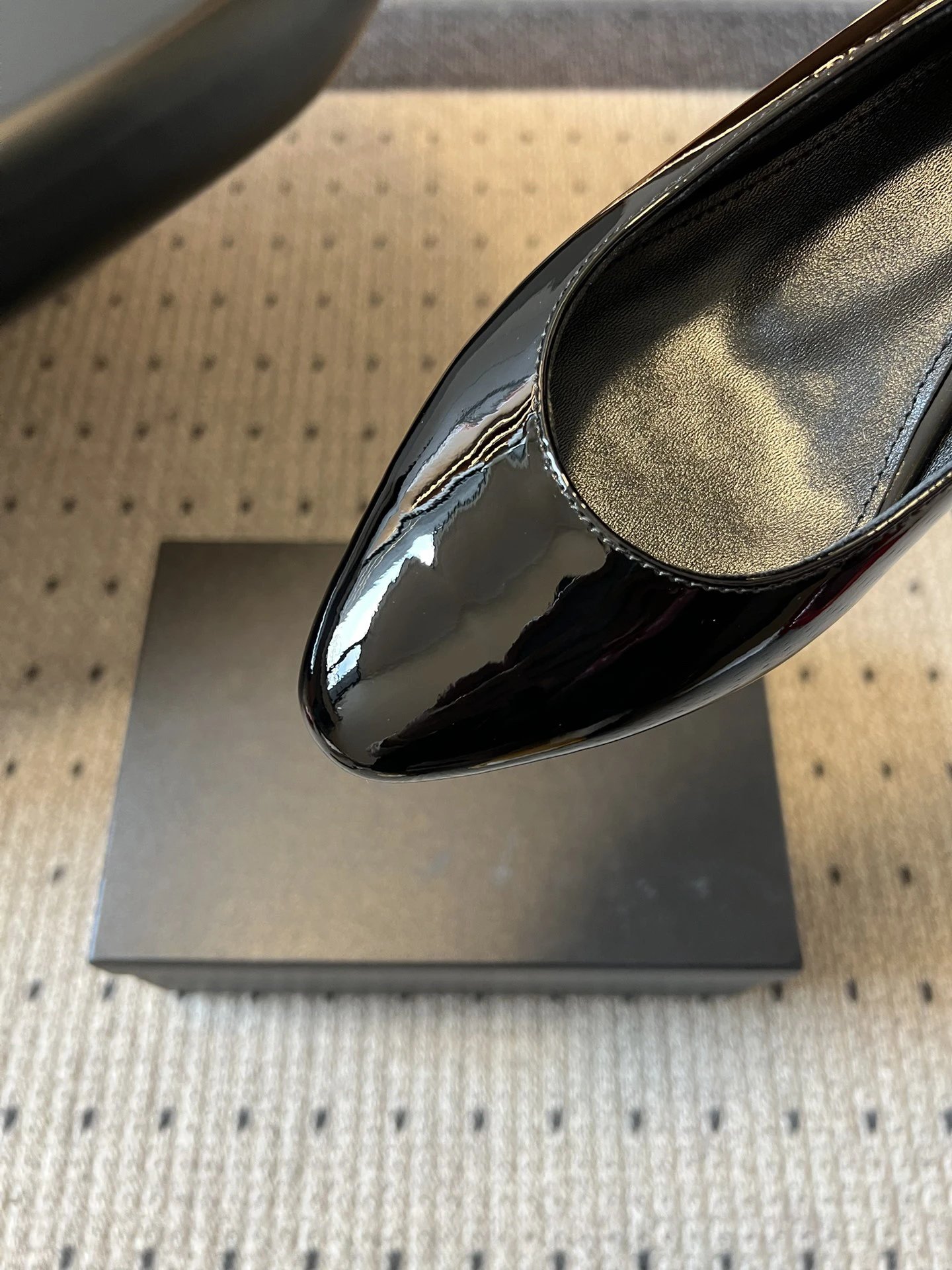 Upper: Cow Patent Leather, Lining: Sheepskin, Outsole: Genuine Leather. Sizes 35-41 (40&41 custom non-returnable).