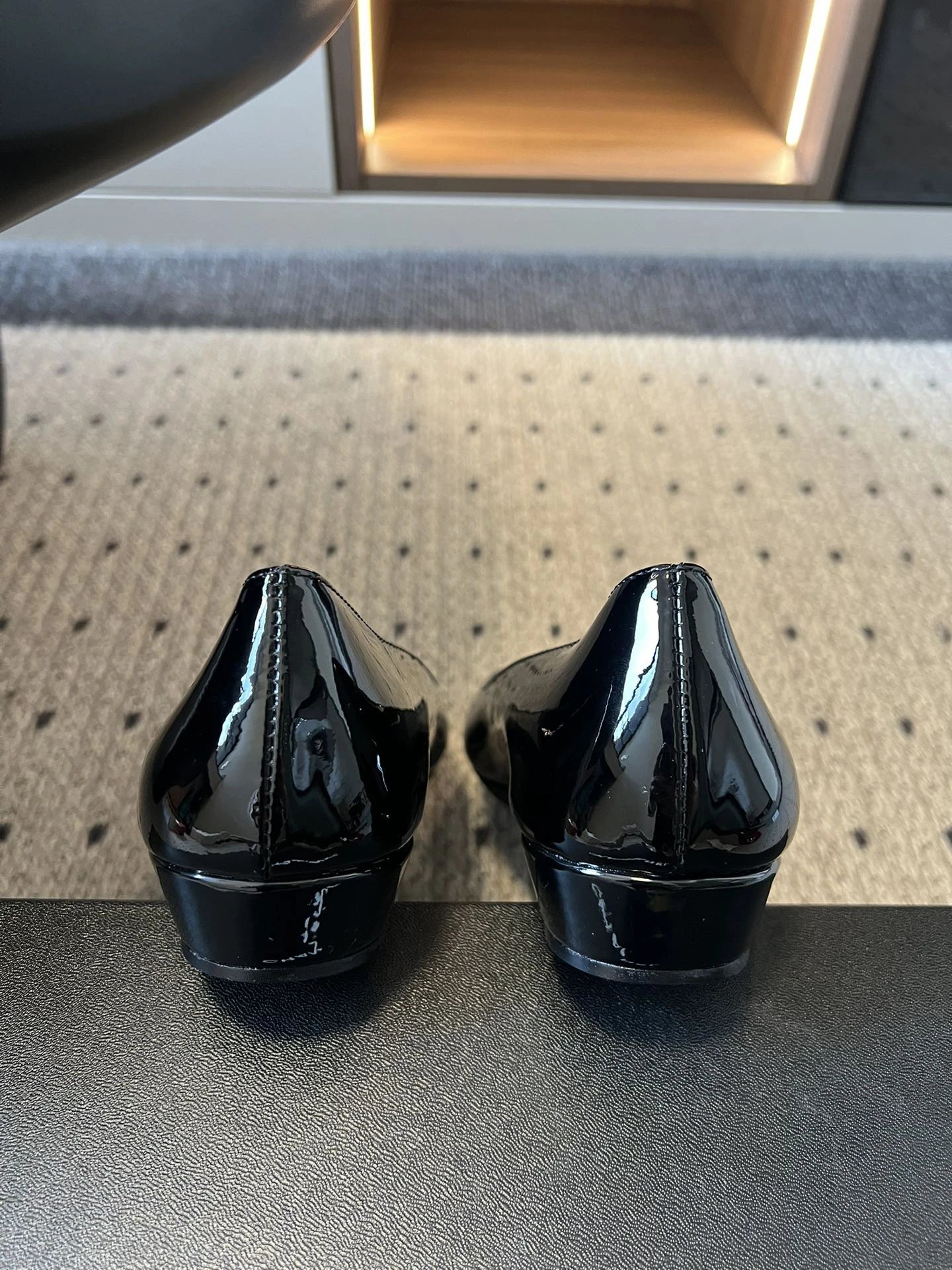 Shiny patent leather glows, soft pointed toe, 2cm low heel for light steps. Red (passionate) & black (calm) fit commute/date.