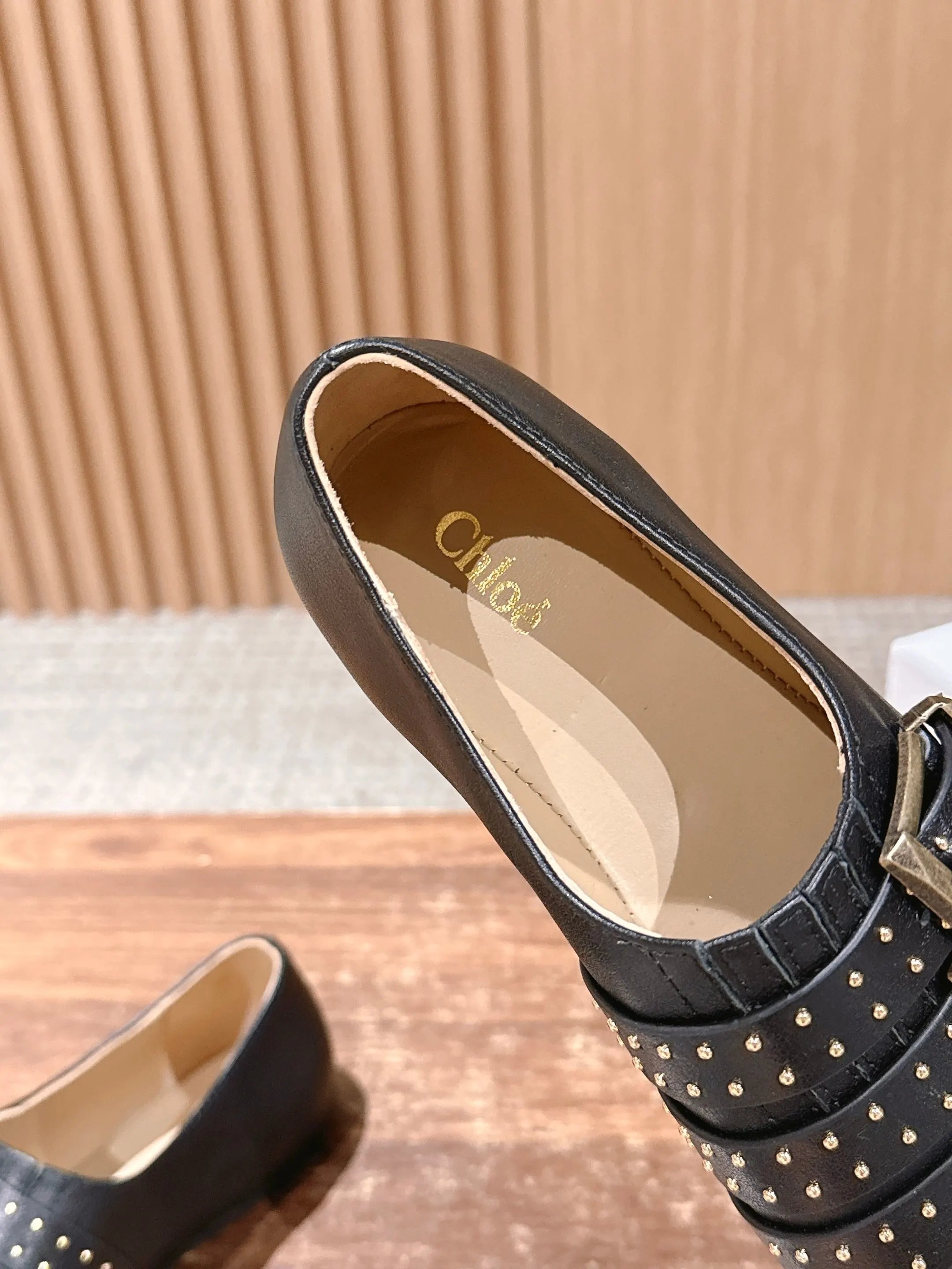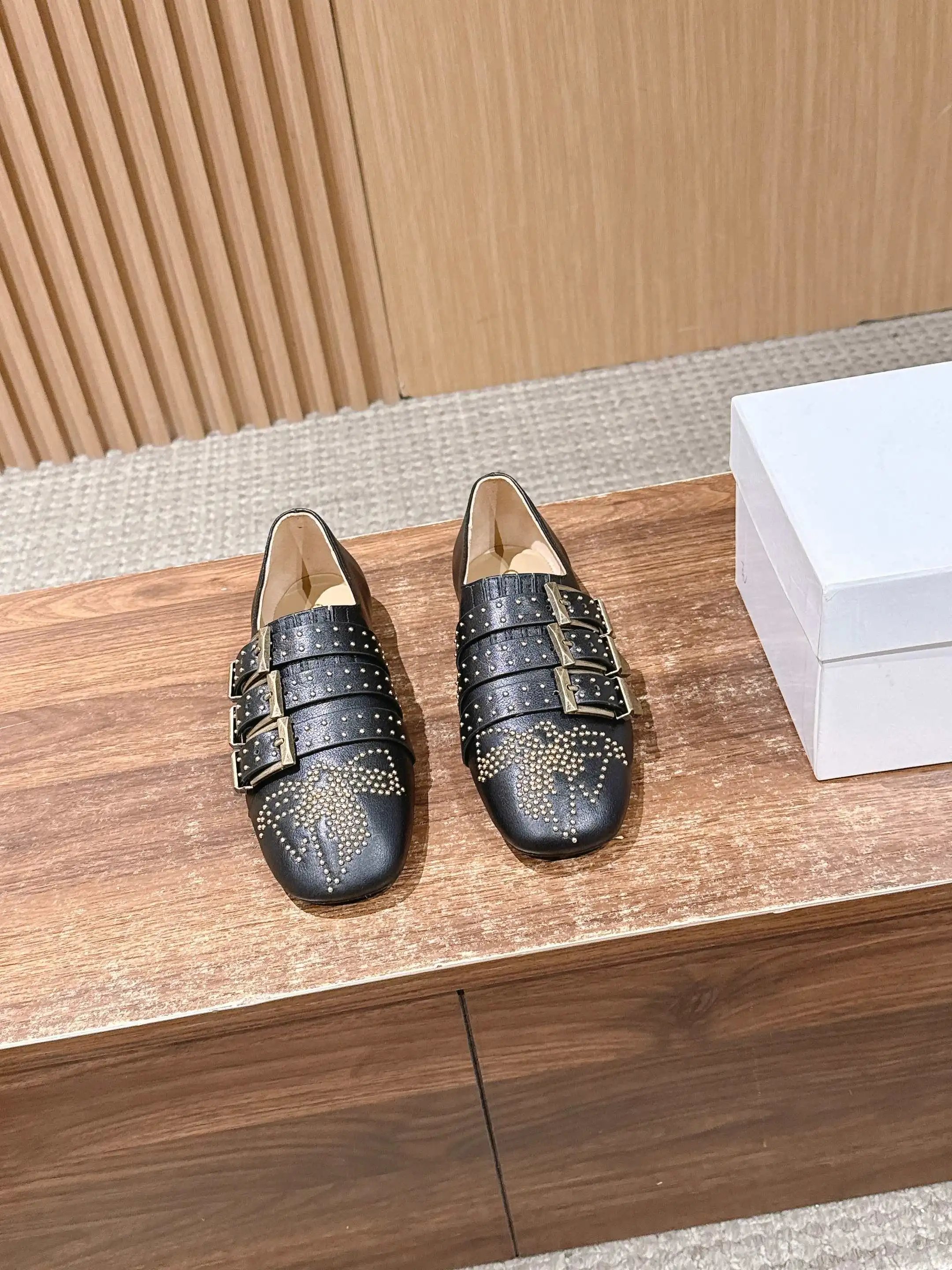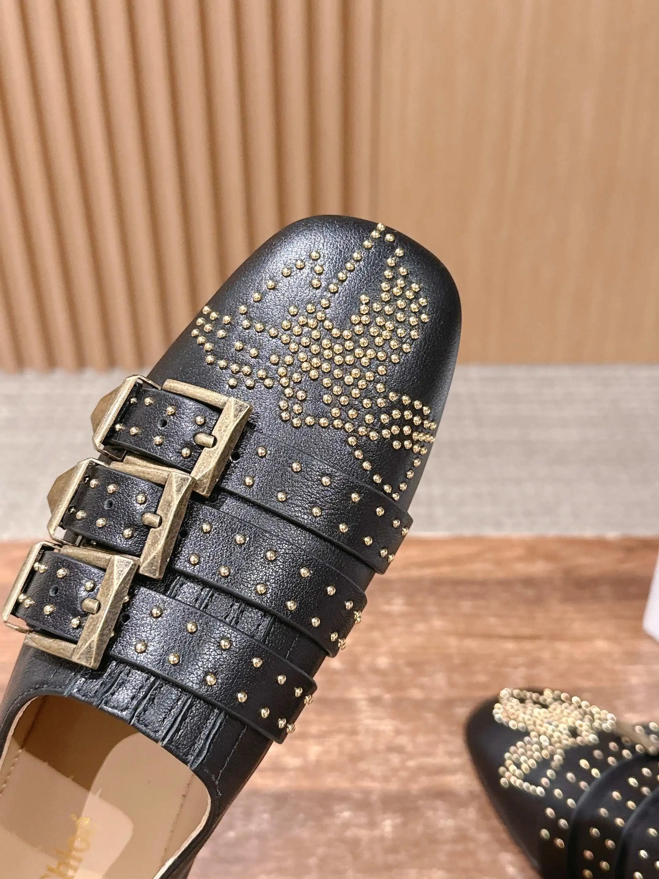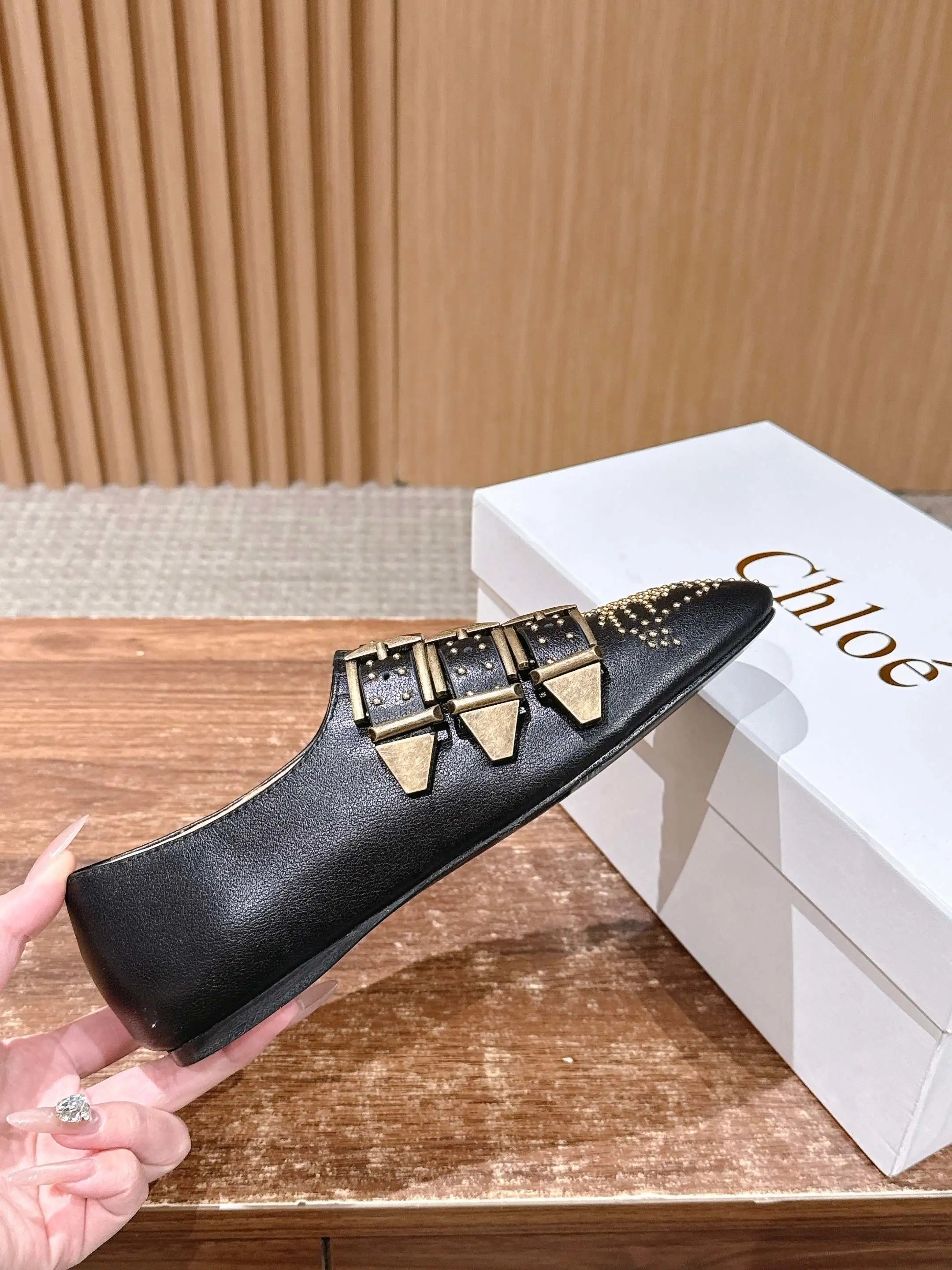 Chloe 2026 Studded Leather Flats feature unique studded design, durable leather upper, soft sheepskin lining, real leather sole. Stylish & versatile for daily wear.