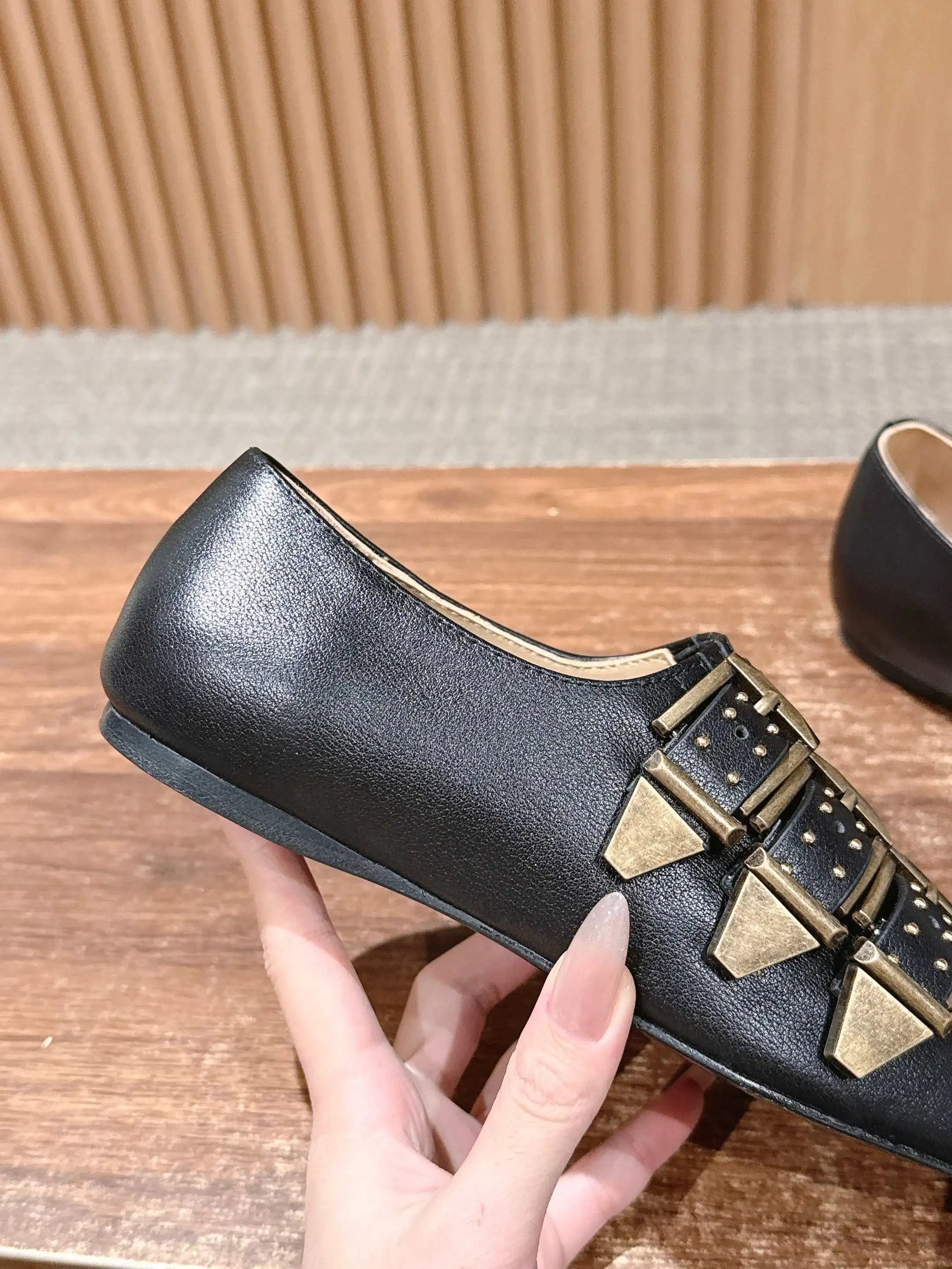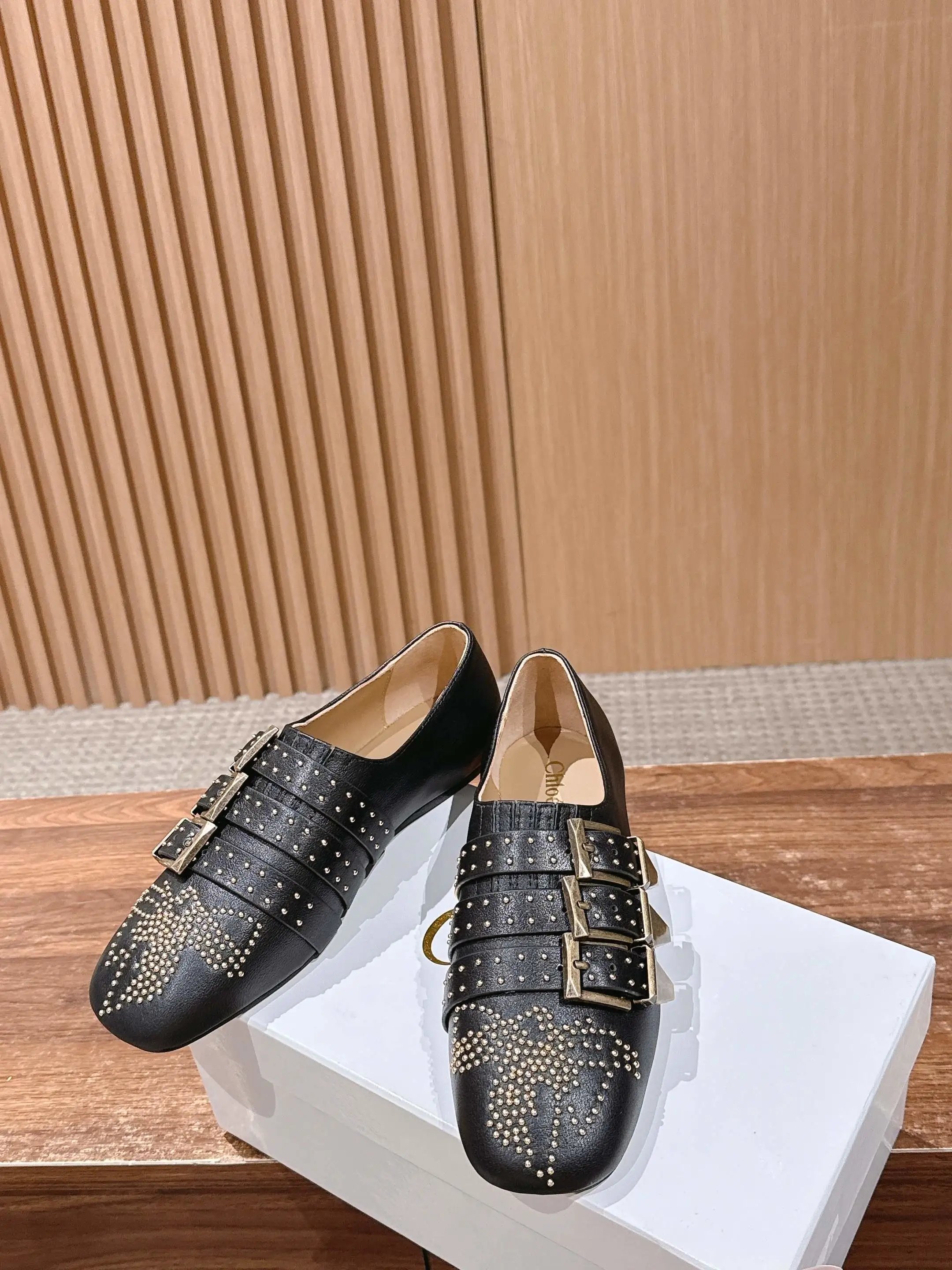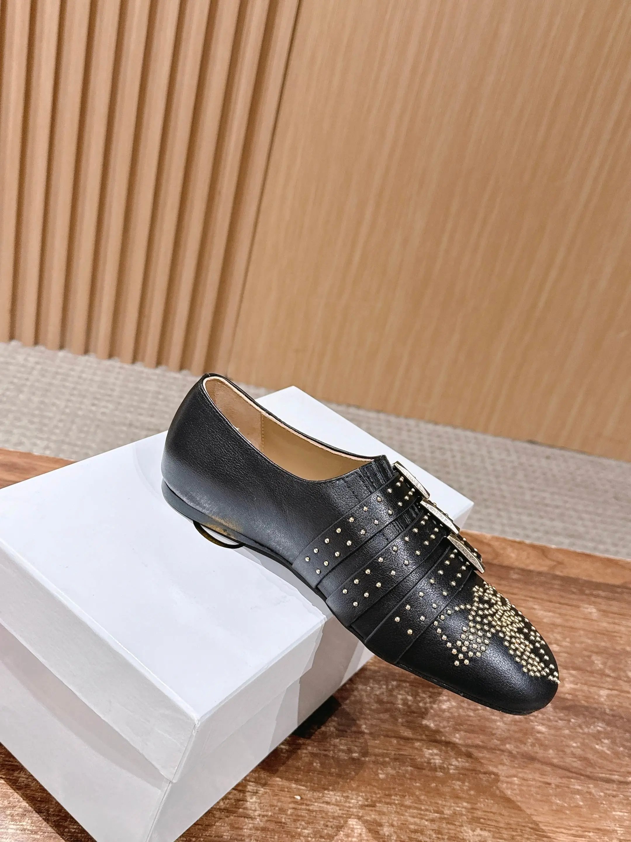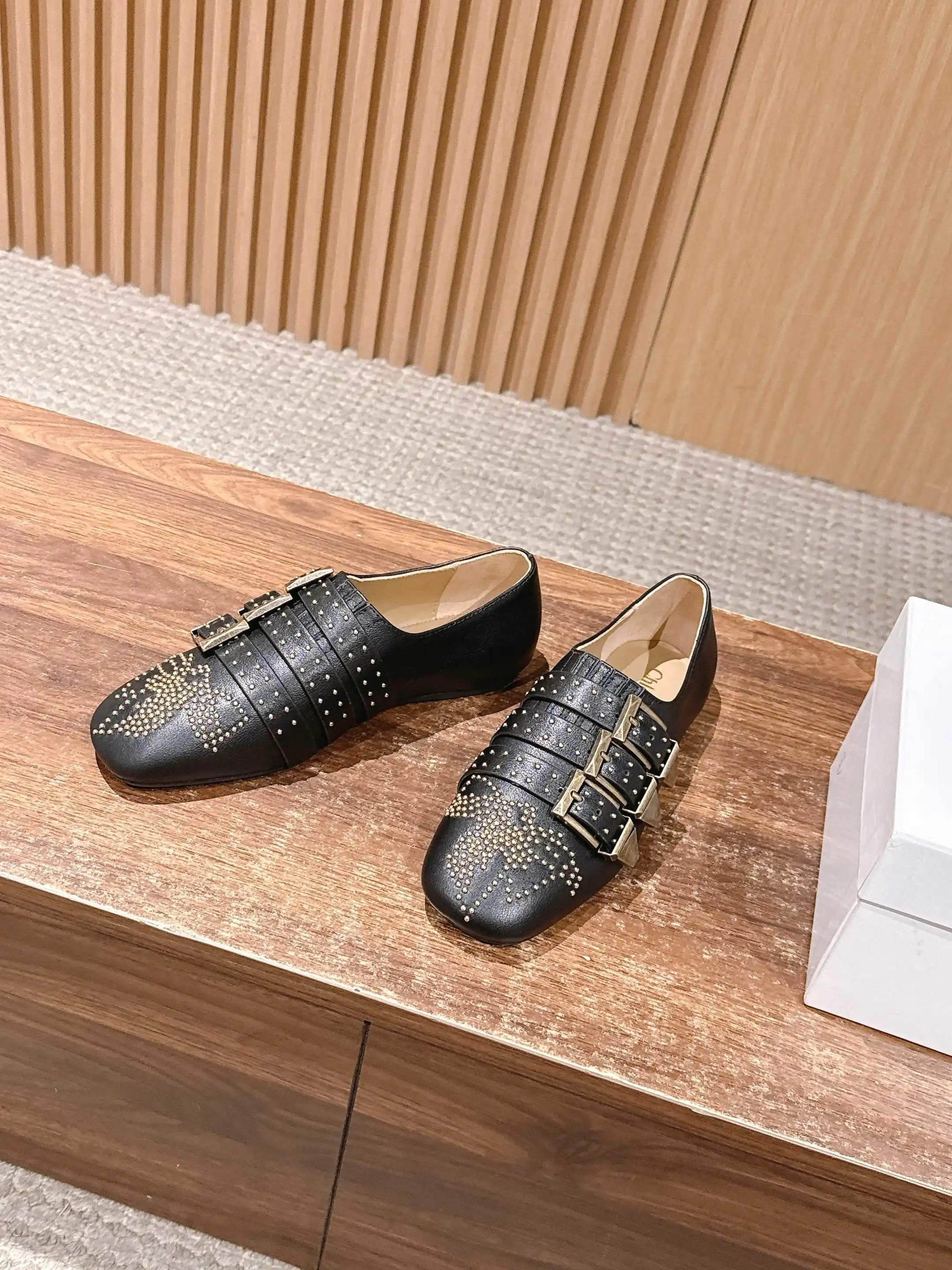 Chloe 2026 Studded Leather Flats feature unique studded design, durable leather upper, soft sheepskin lining, real leather sole. Stylish & versatile for daily wear.