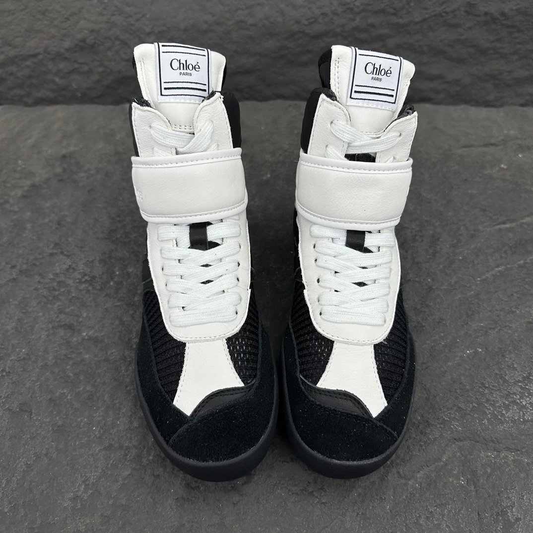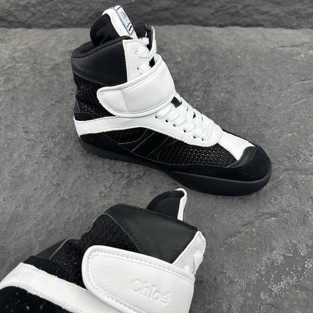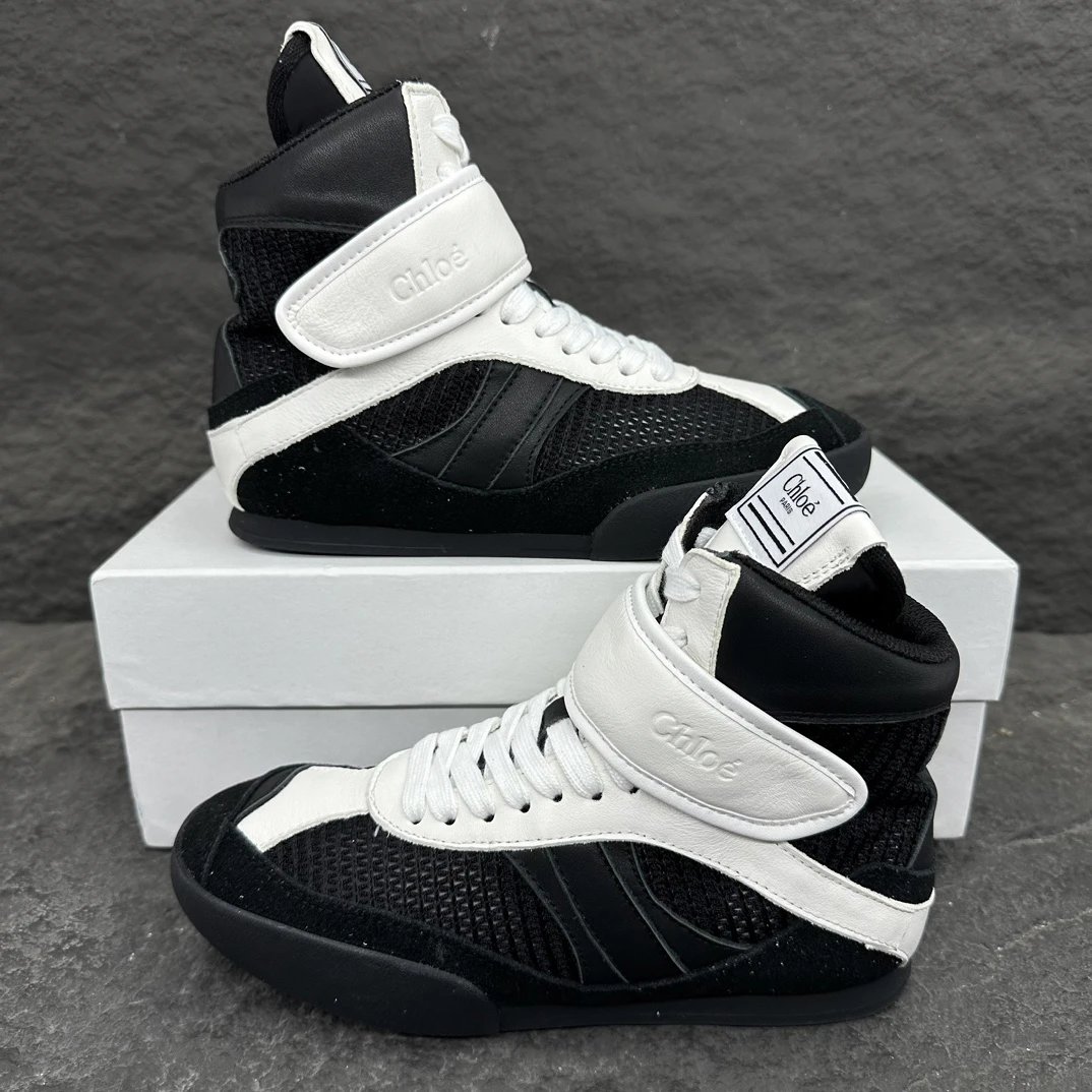 Chloé KI Women's High-Top Sneakers draw inspiration from ballet and boxing.
