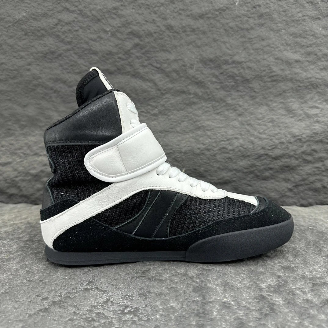 Made of mesh & smooth suede calfskin, they have wide logo laces, inner wedge for lift.