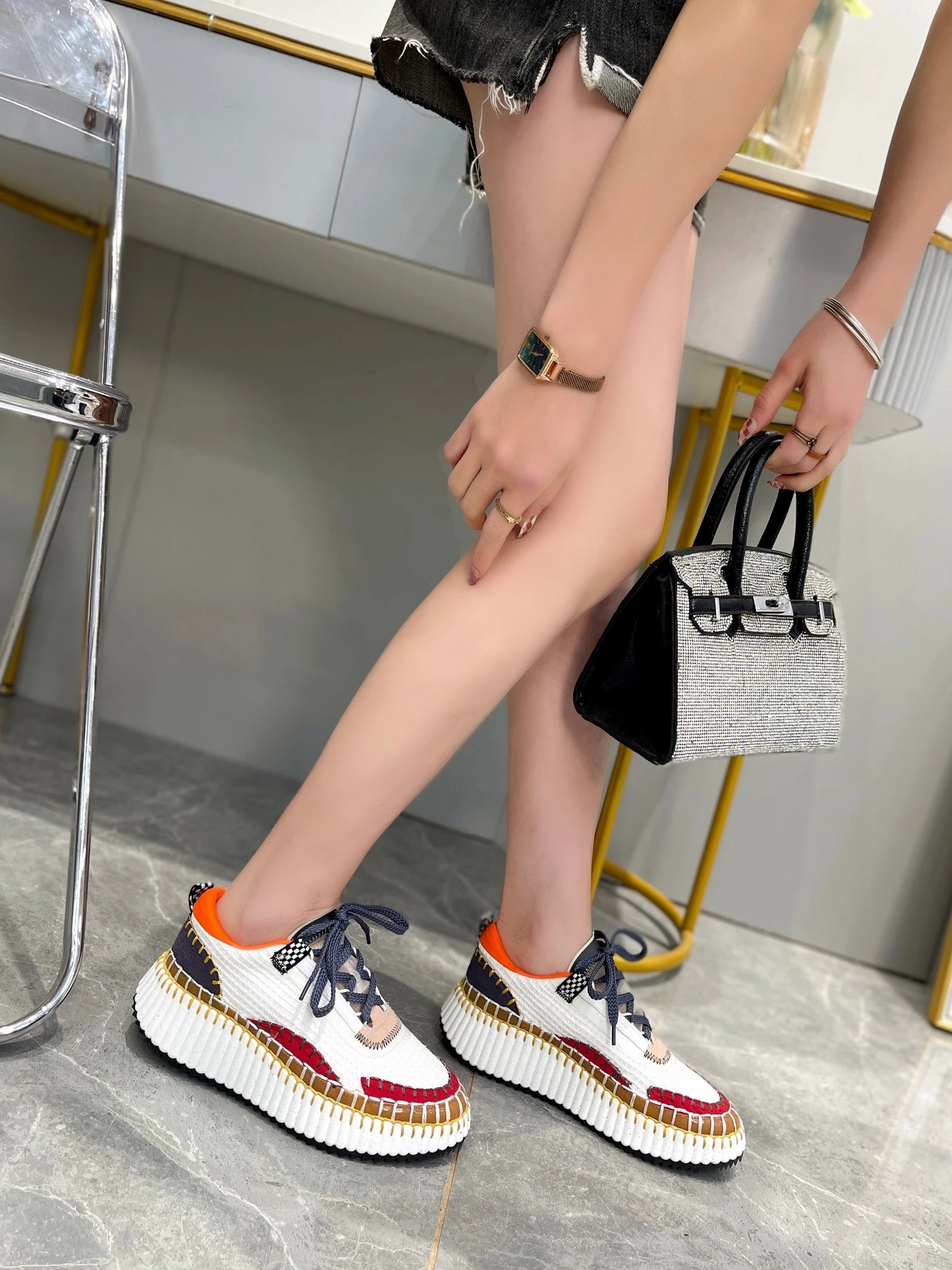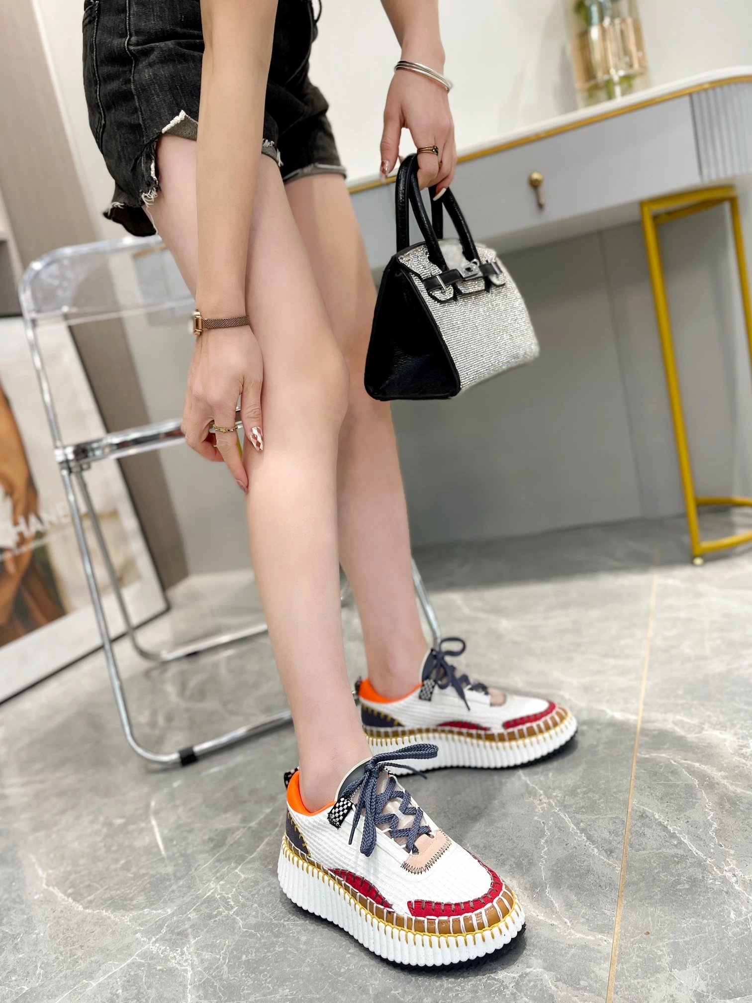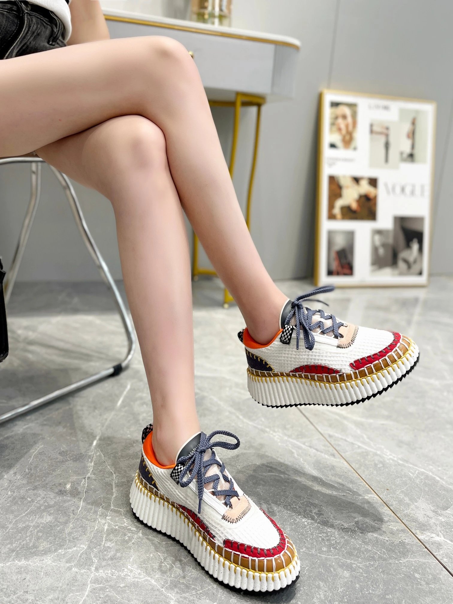 Chloe Nama Rainbow Sneakers are celebrity-favorite eco-friendly shoes made from recycled materials.