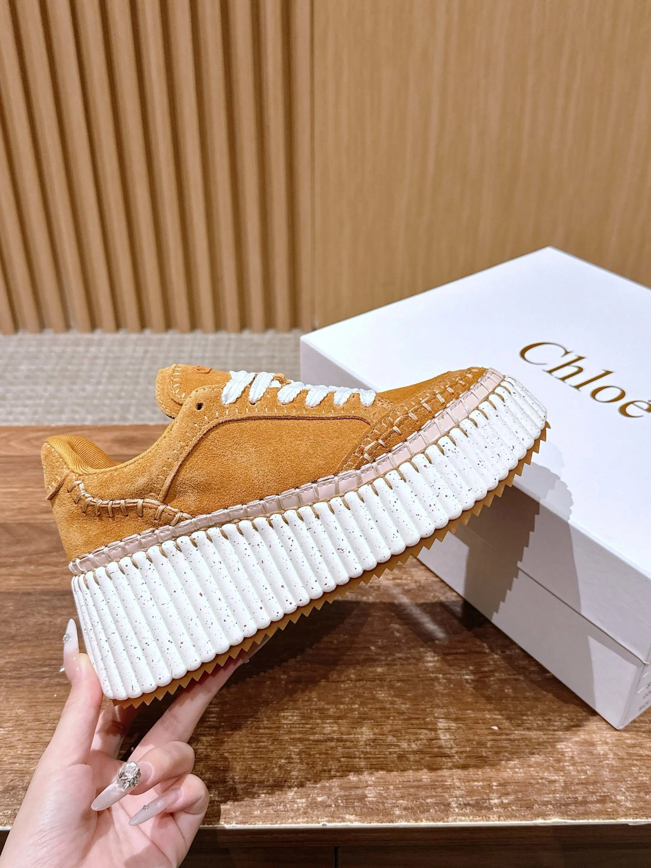 Chloe new white sneakers are worn by Joey Yung, Sun Yi & Song Qian. Made from recyclable materials, hand-stitched, eco-friendly & stylish.