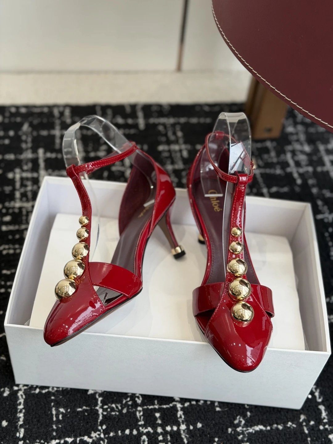 Chloe 26SS Spring Summer new Mary Jane pumps with calf patent leather, almond toe & Parisian style.