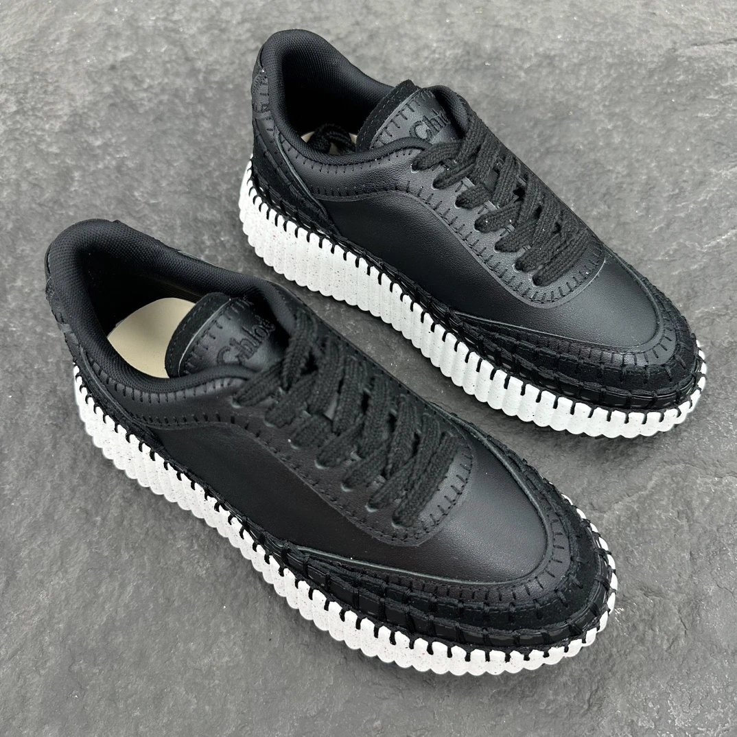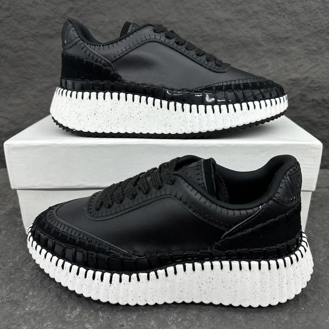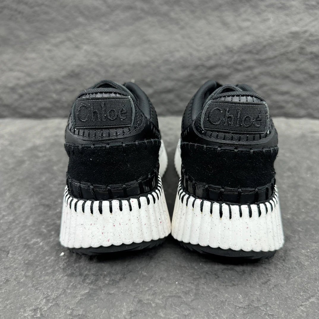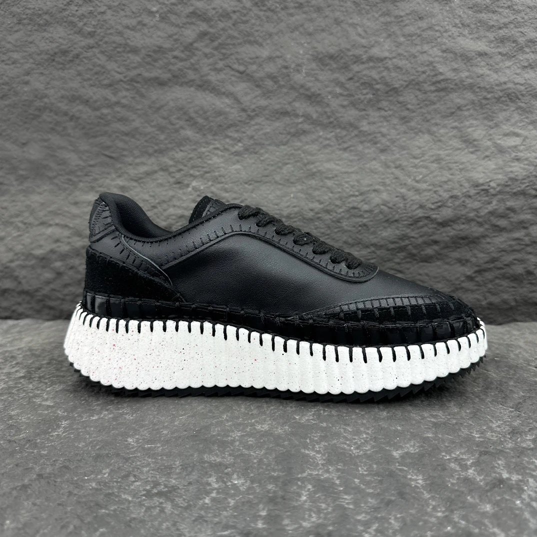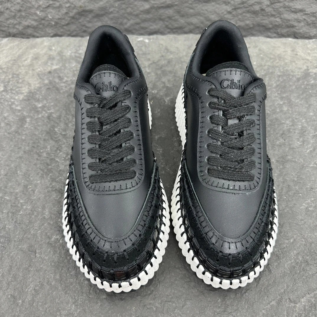 Chloe NAMA Women's Sneakers feature sustainable design with 40% recycled materials.Hand-stitched mesh upper, contrast hard sole for comfort & style, Chloe logo on heel.Flat height, mixed materials: nylon, polyester, leather, suede, rubber, EVA.