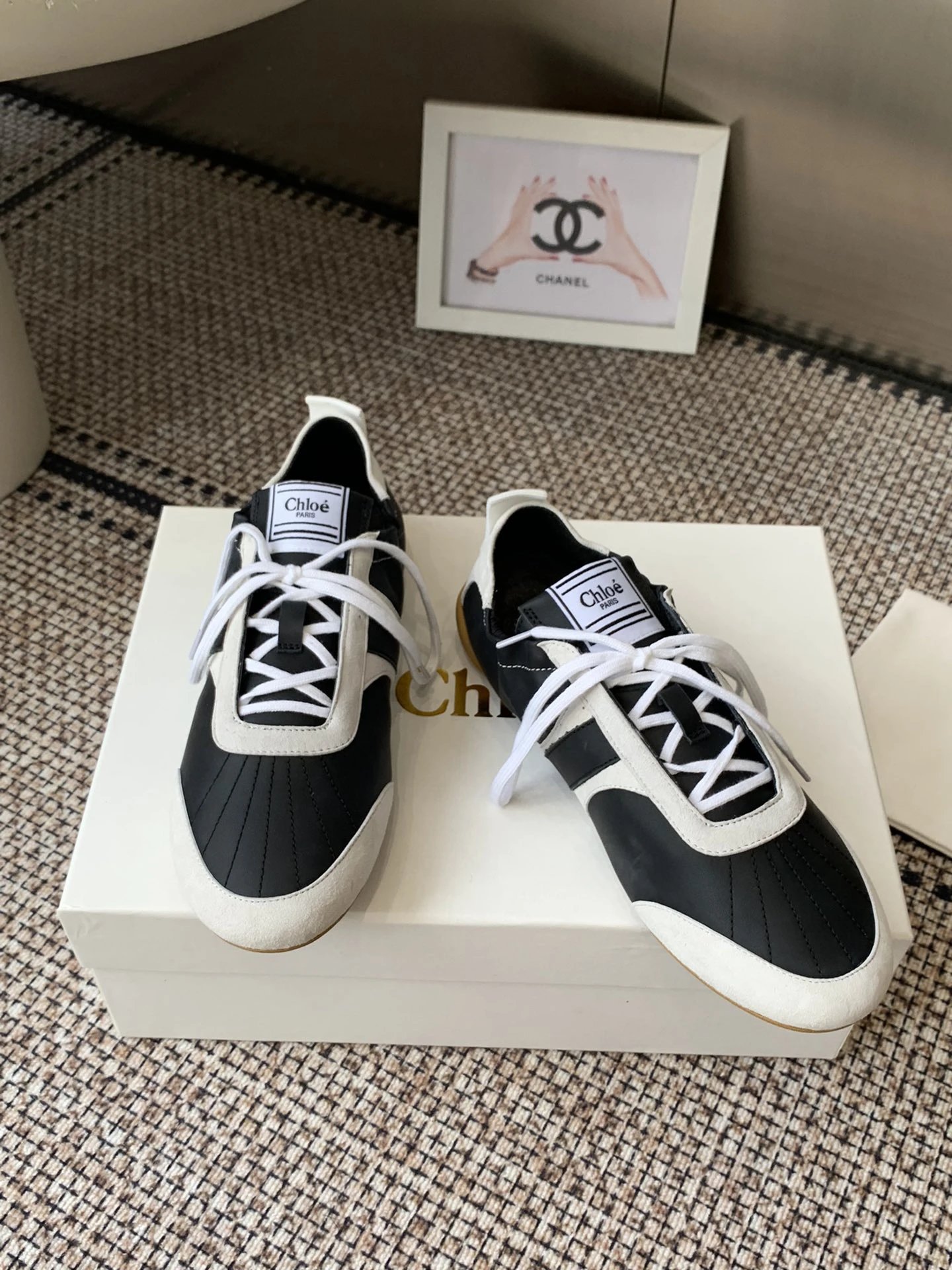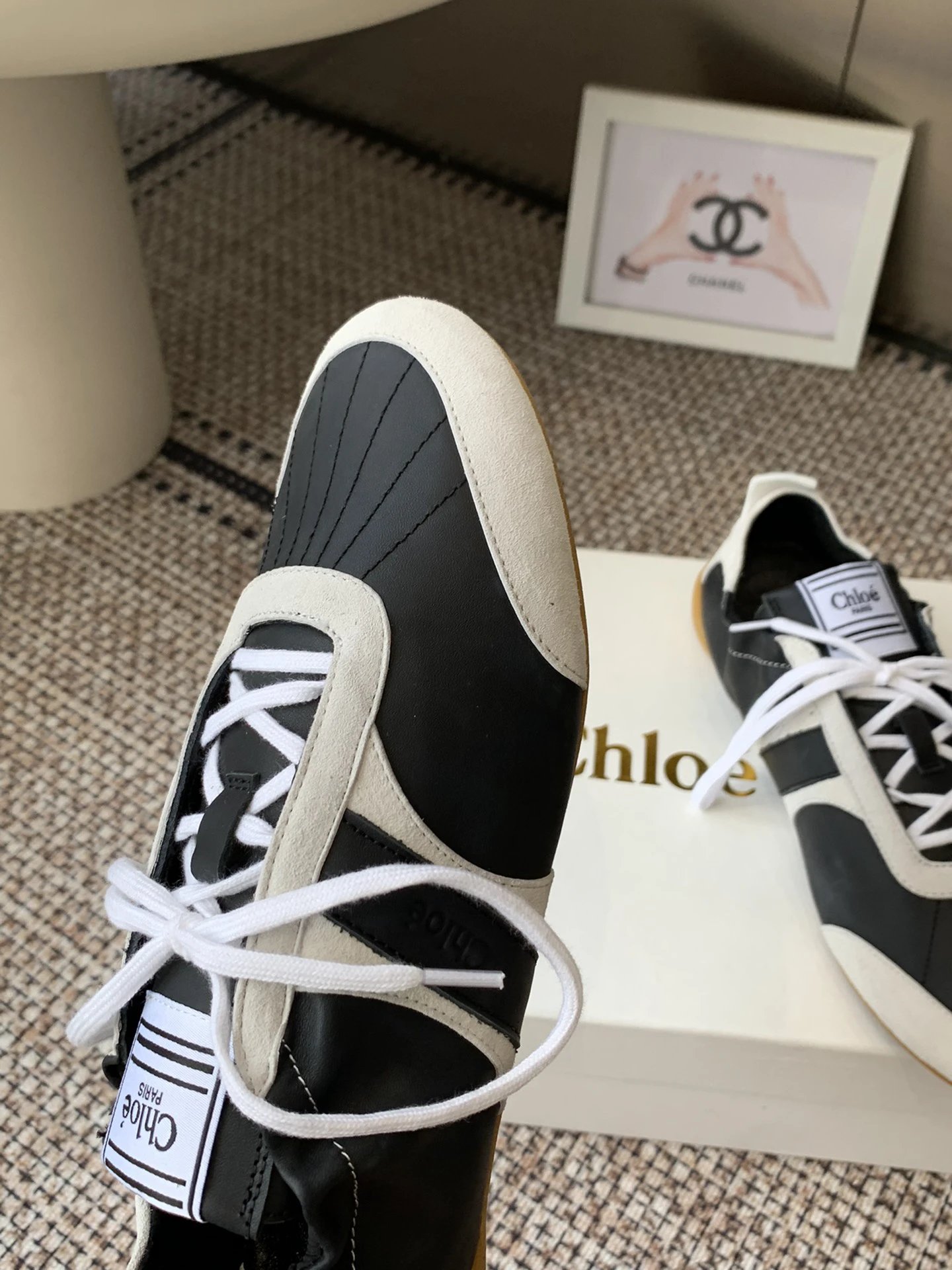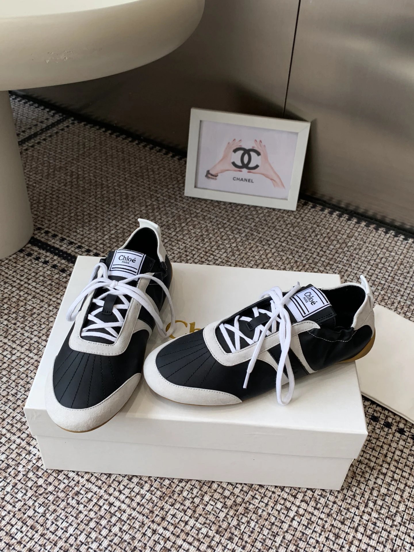 Cowhide splicing, retro design with stitching, classic logo on tongue, comfortable on feet.